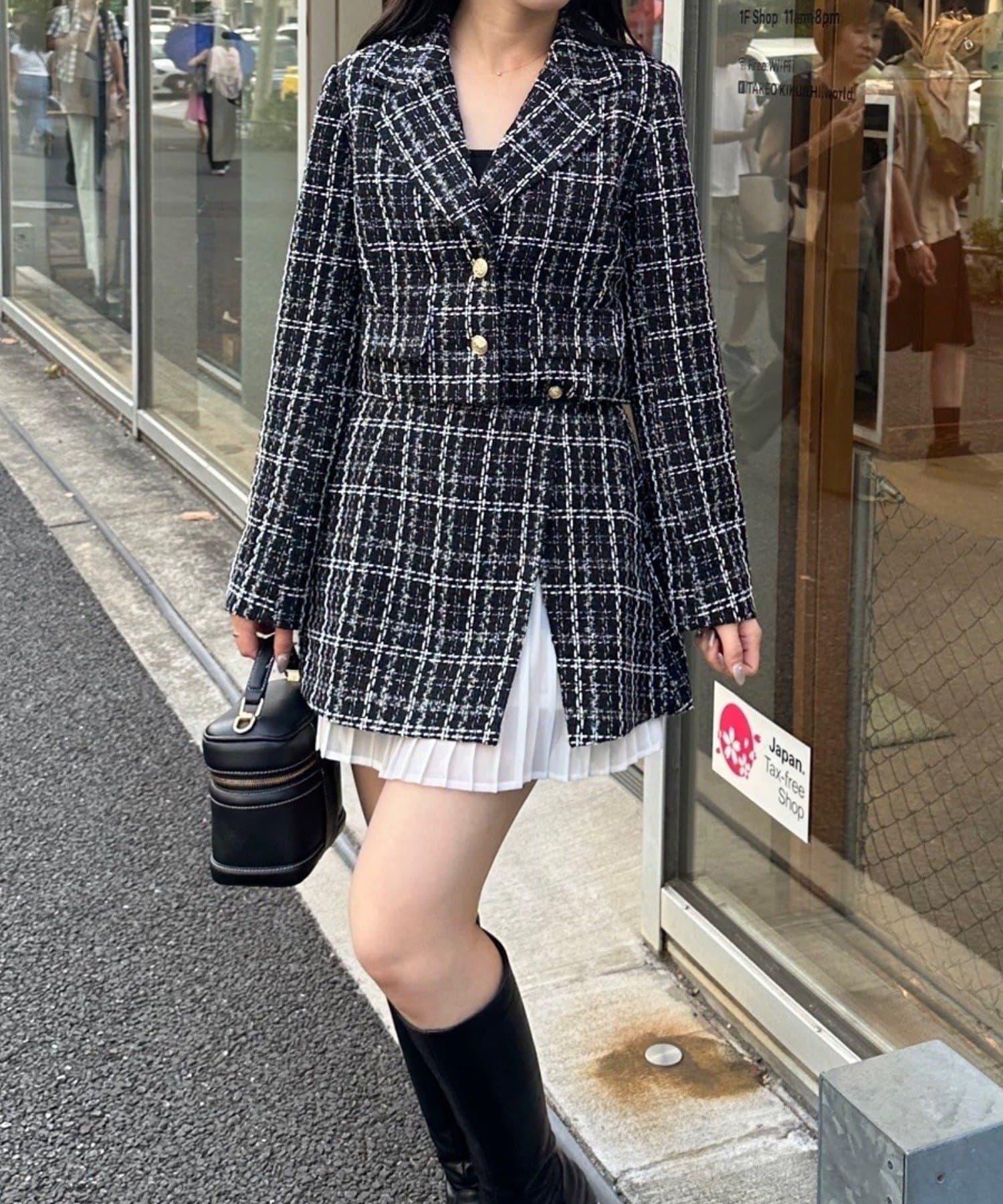 斜紋軟呢材質提升了裙裝的季節氛圍,是一款一定會讓人眼前一亮的單品。