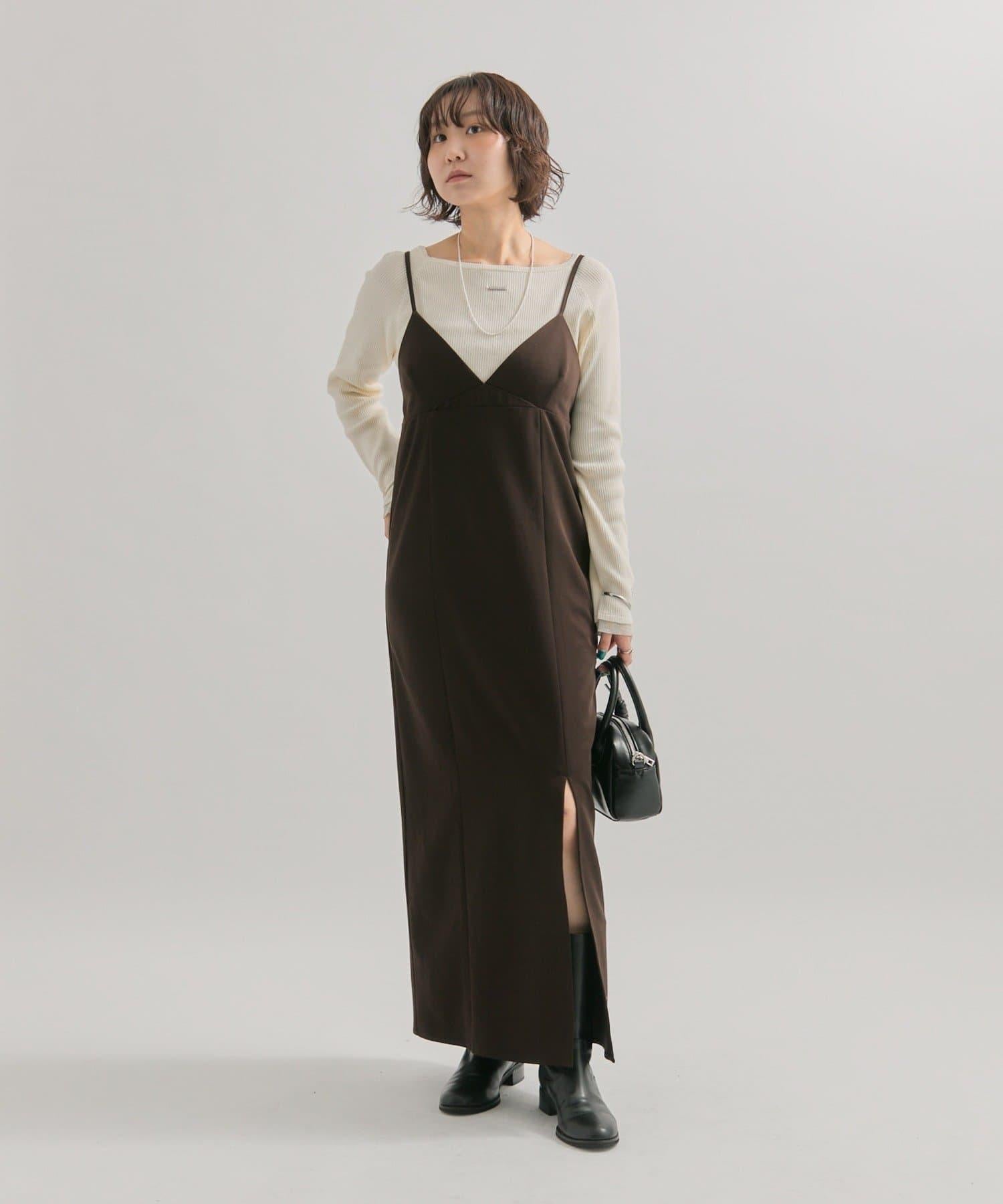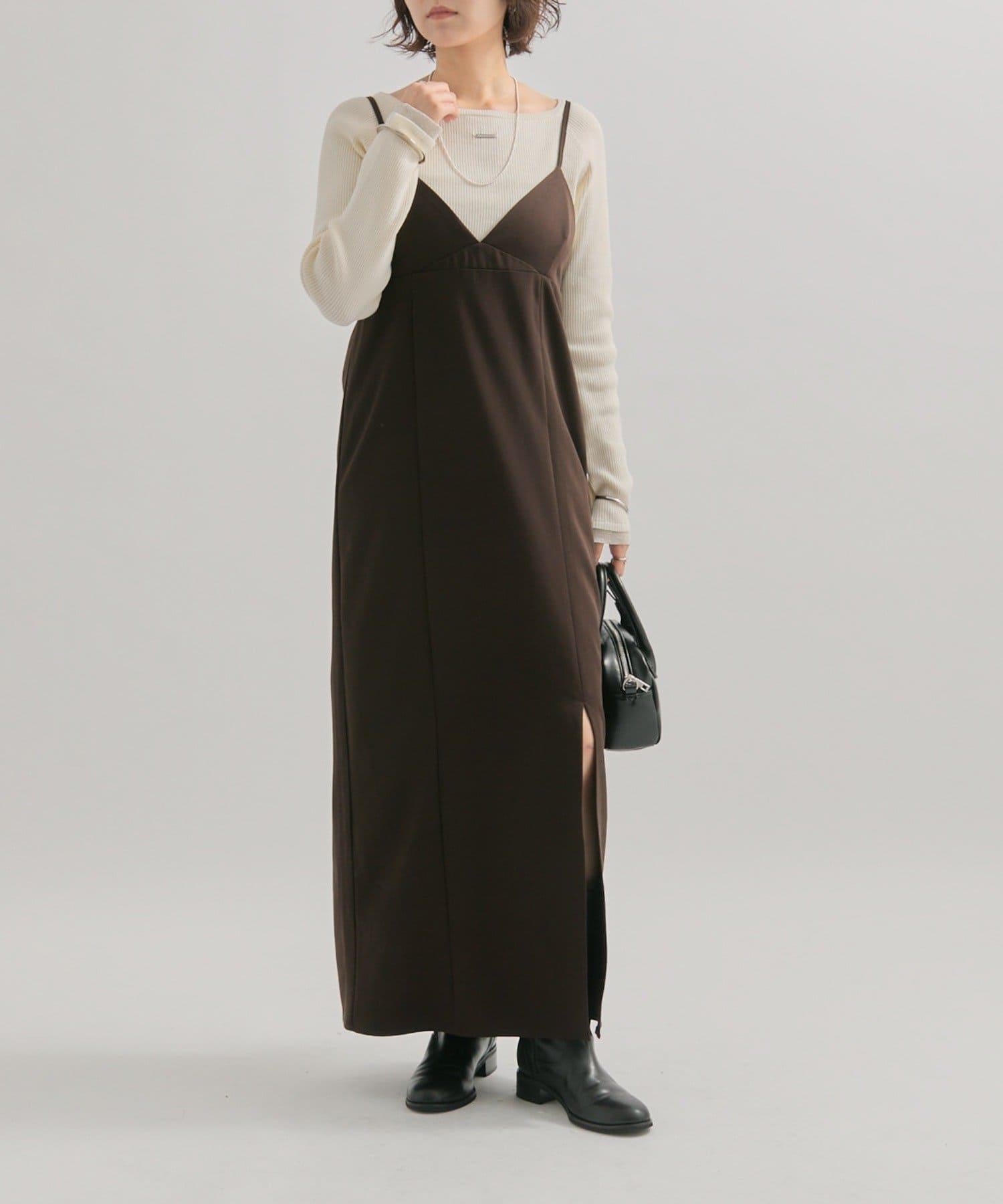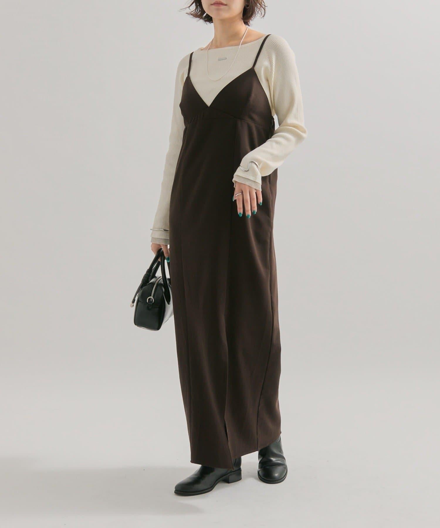 連衣裙的左前方有一個開衩,I 字形的輪廓使其極具時尚魅力。