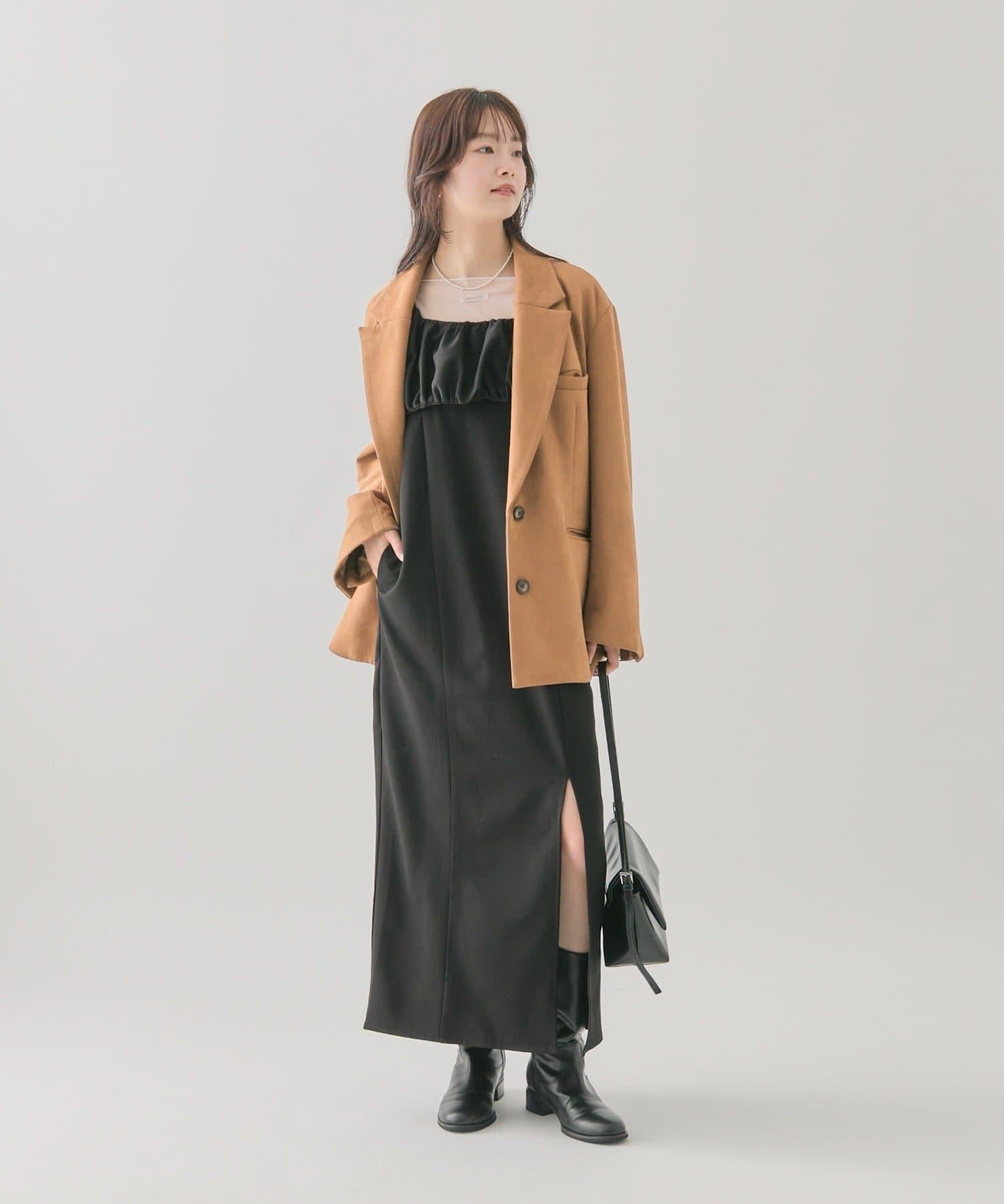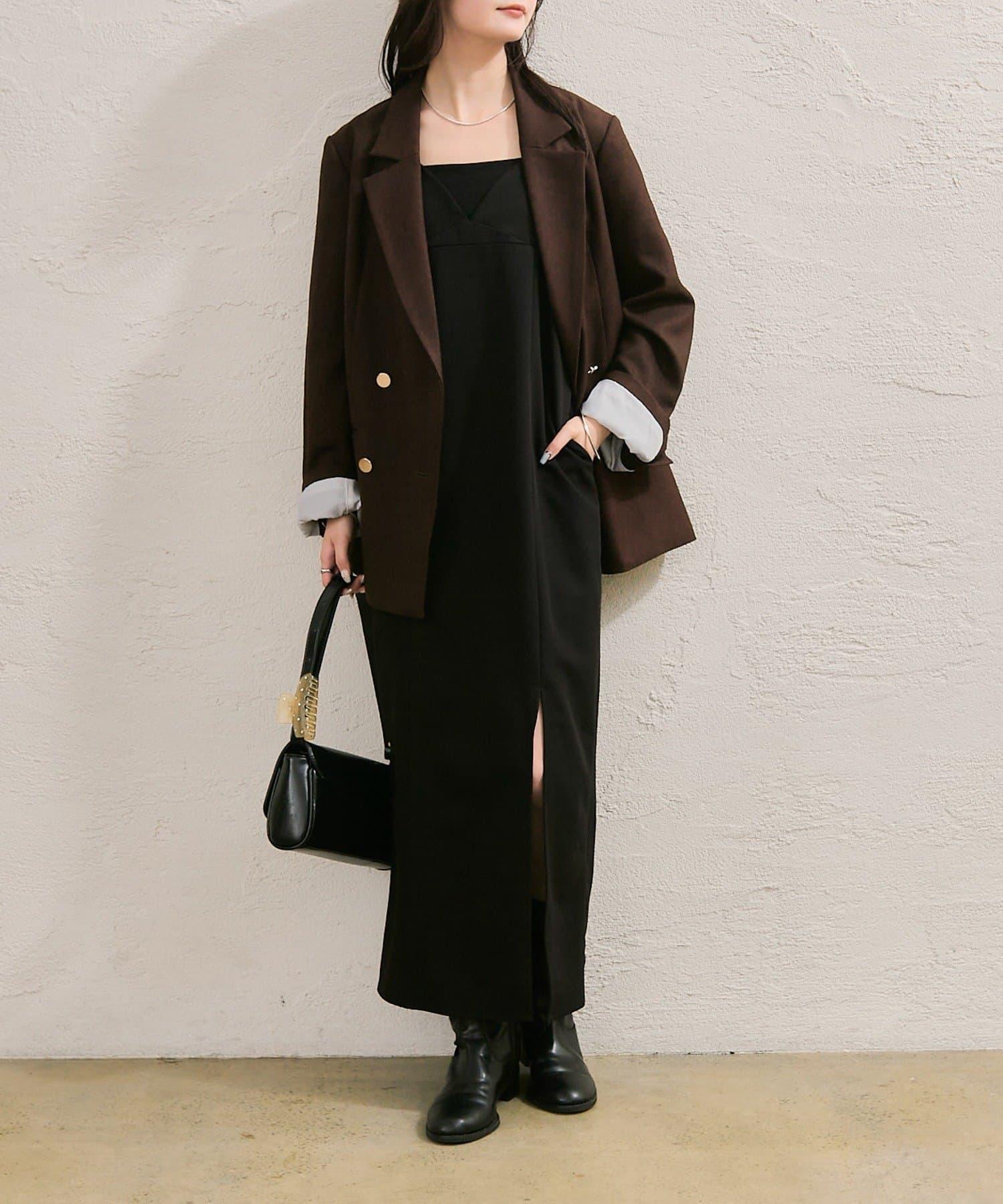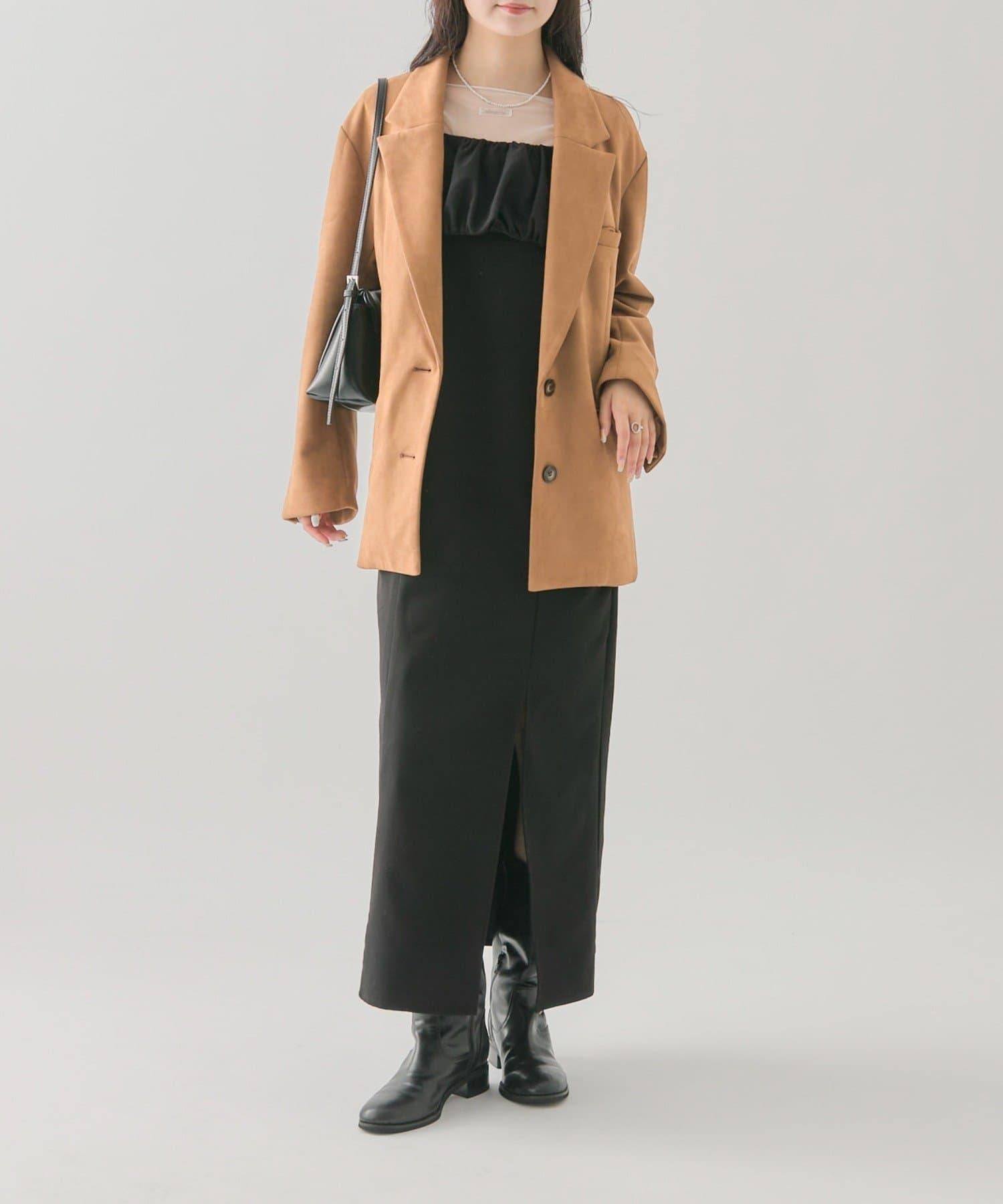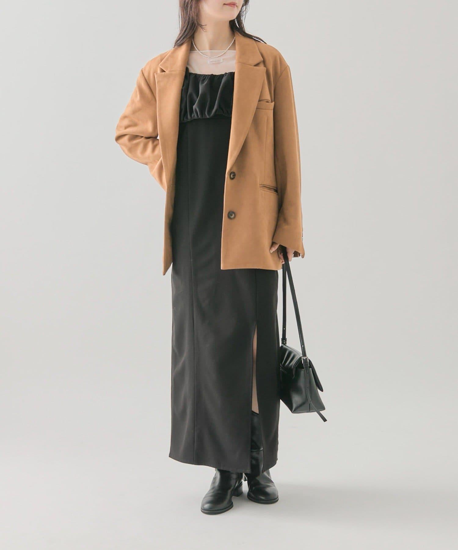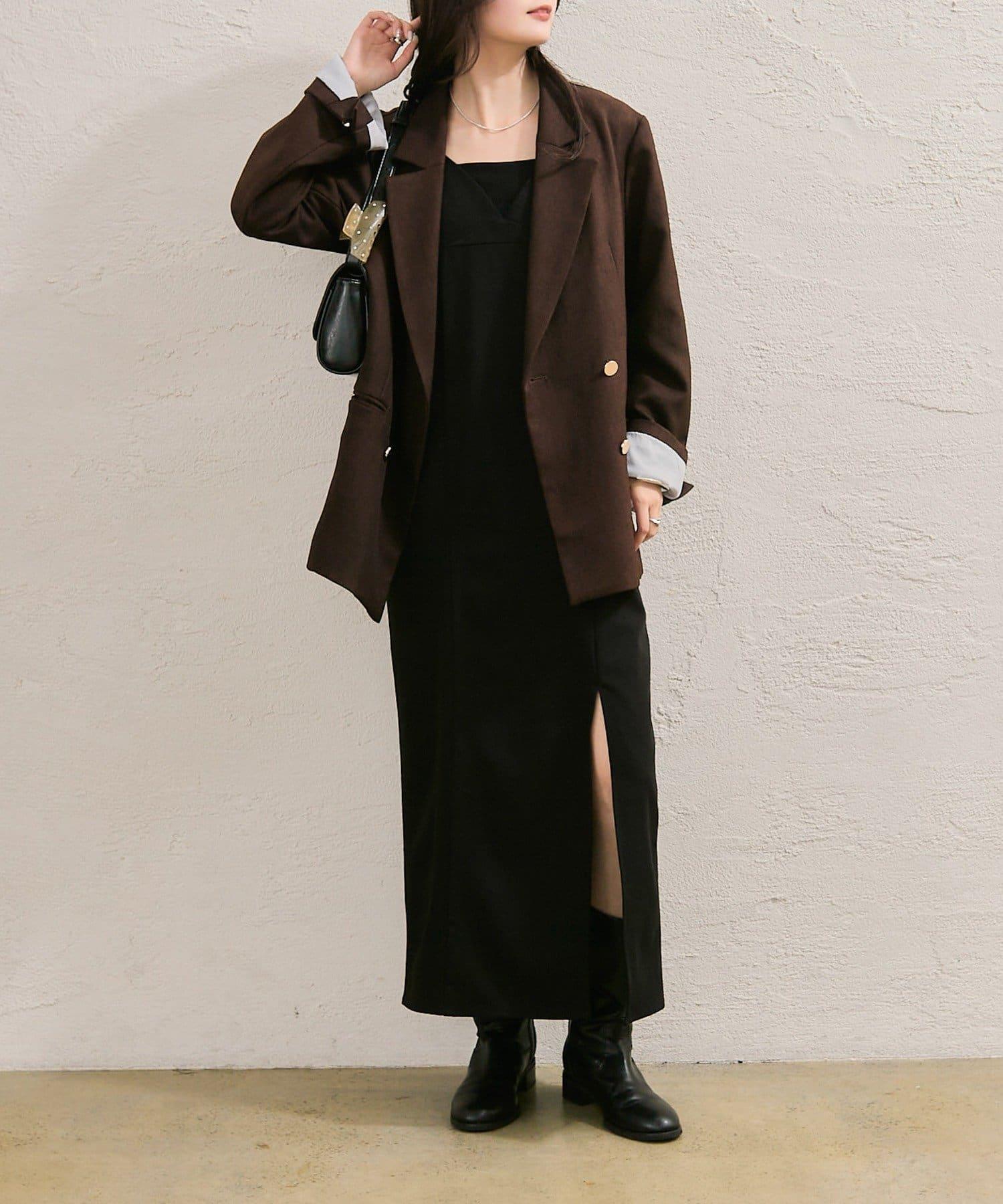 腳上可搭配長靴,從開衩部分露出一角,顯得更加休閒。