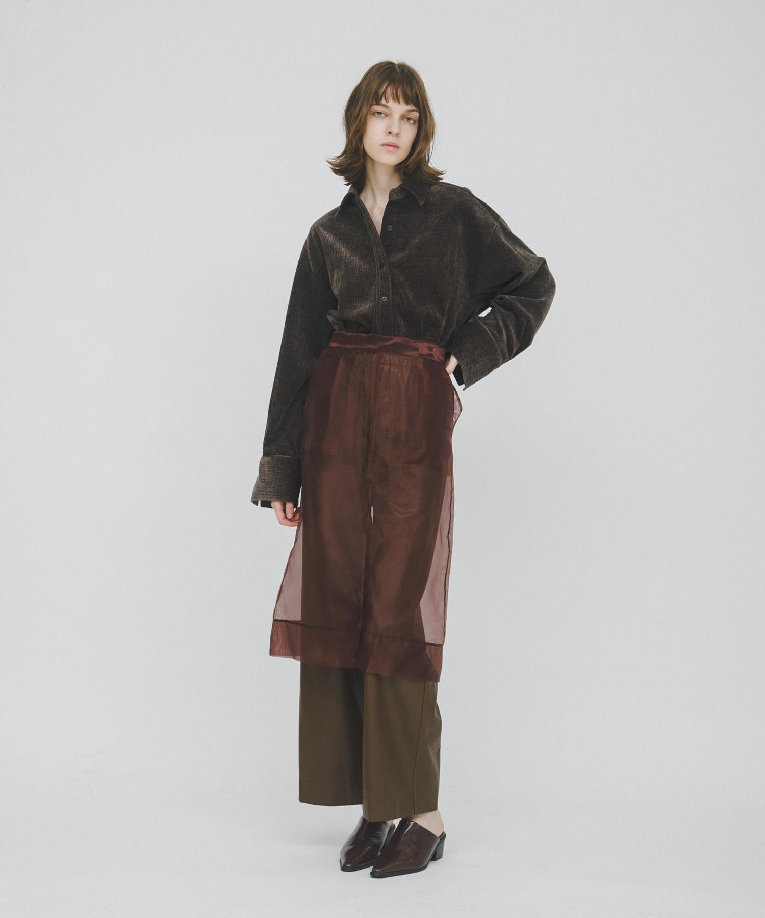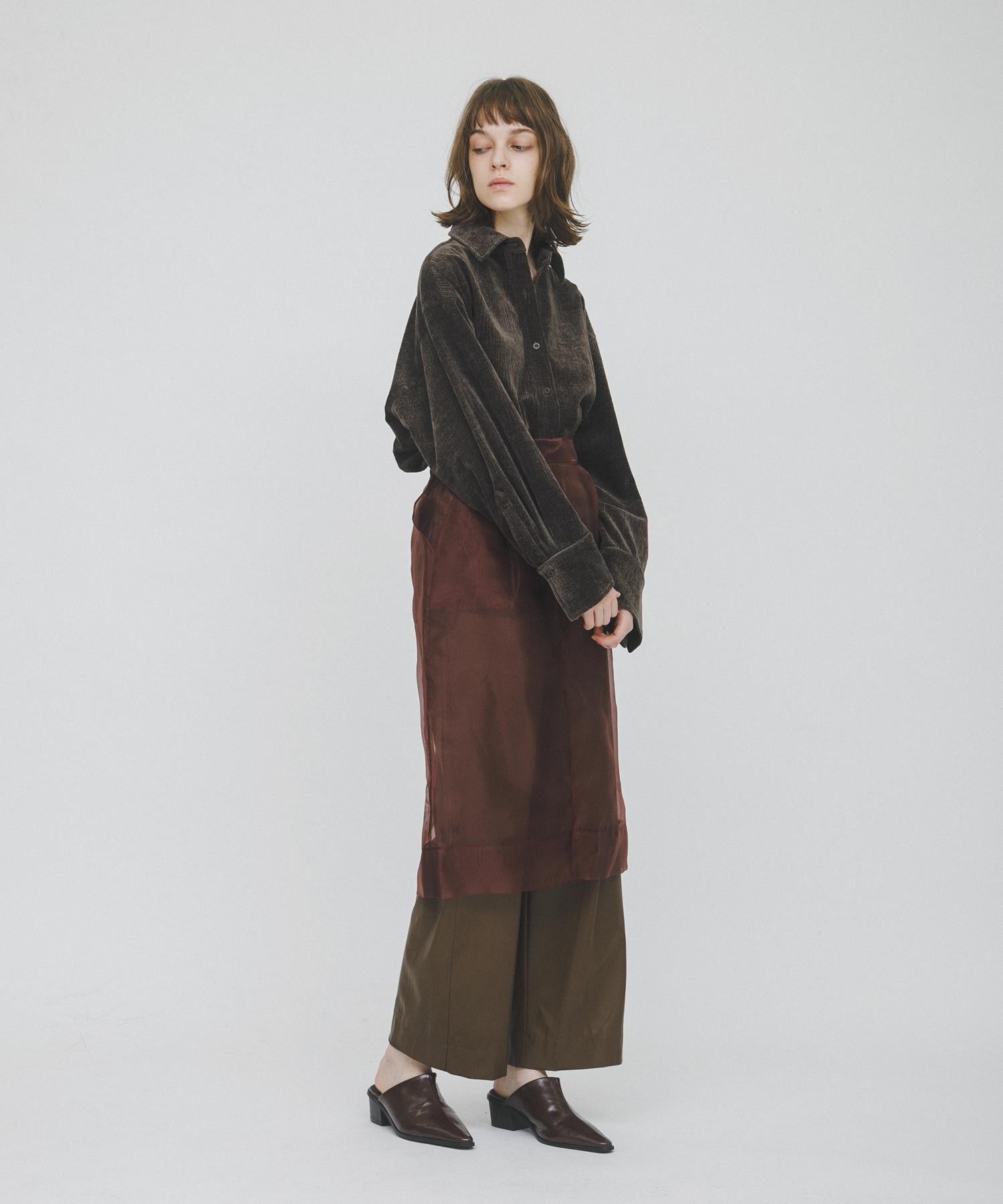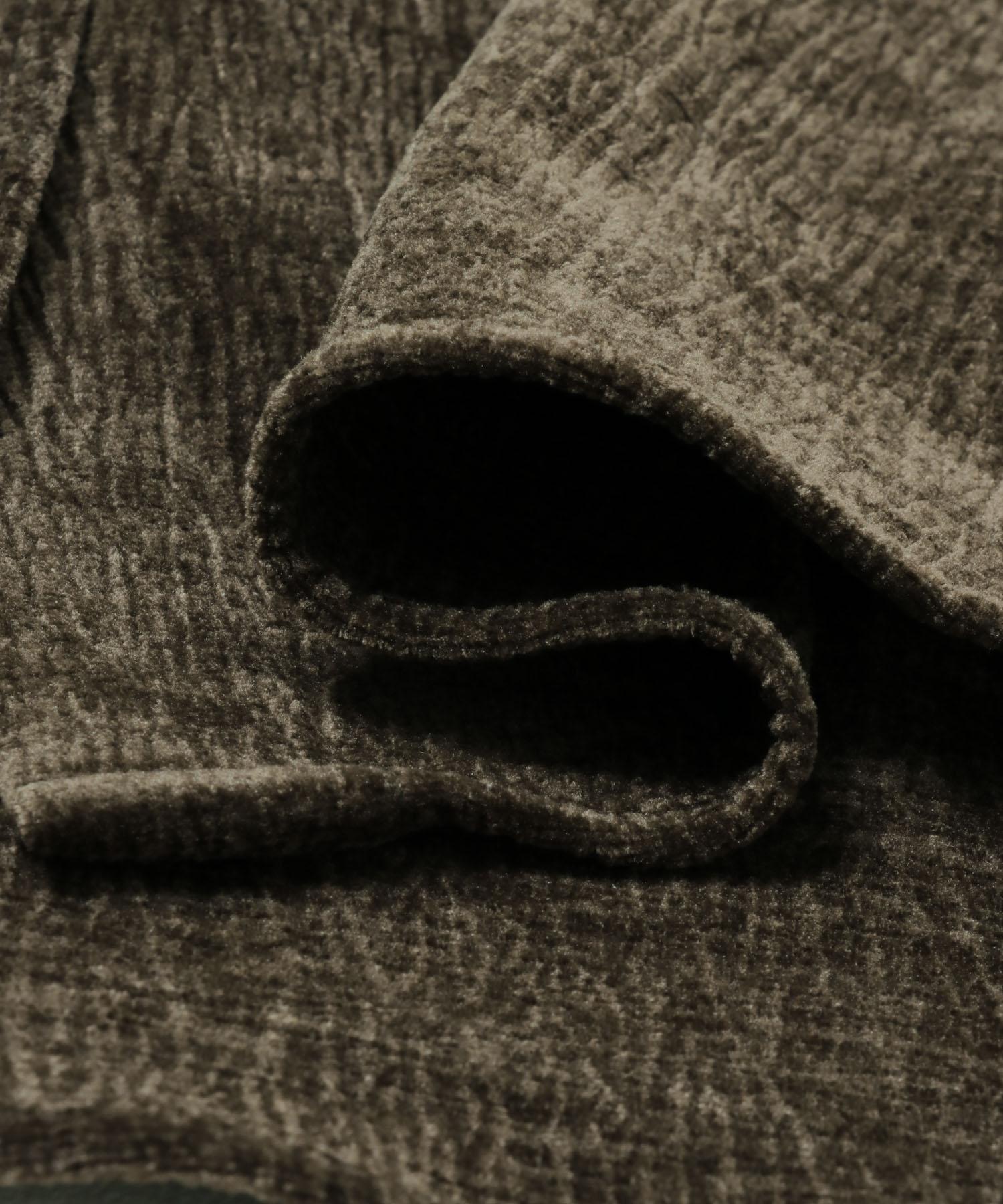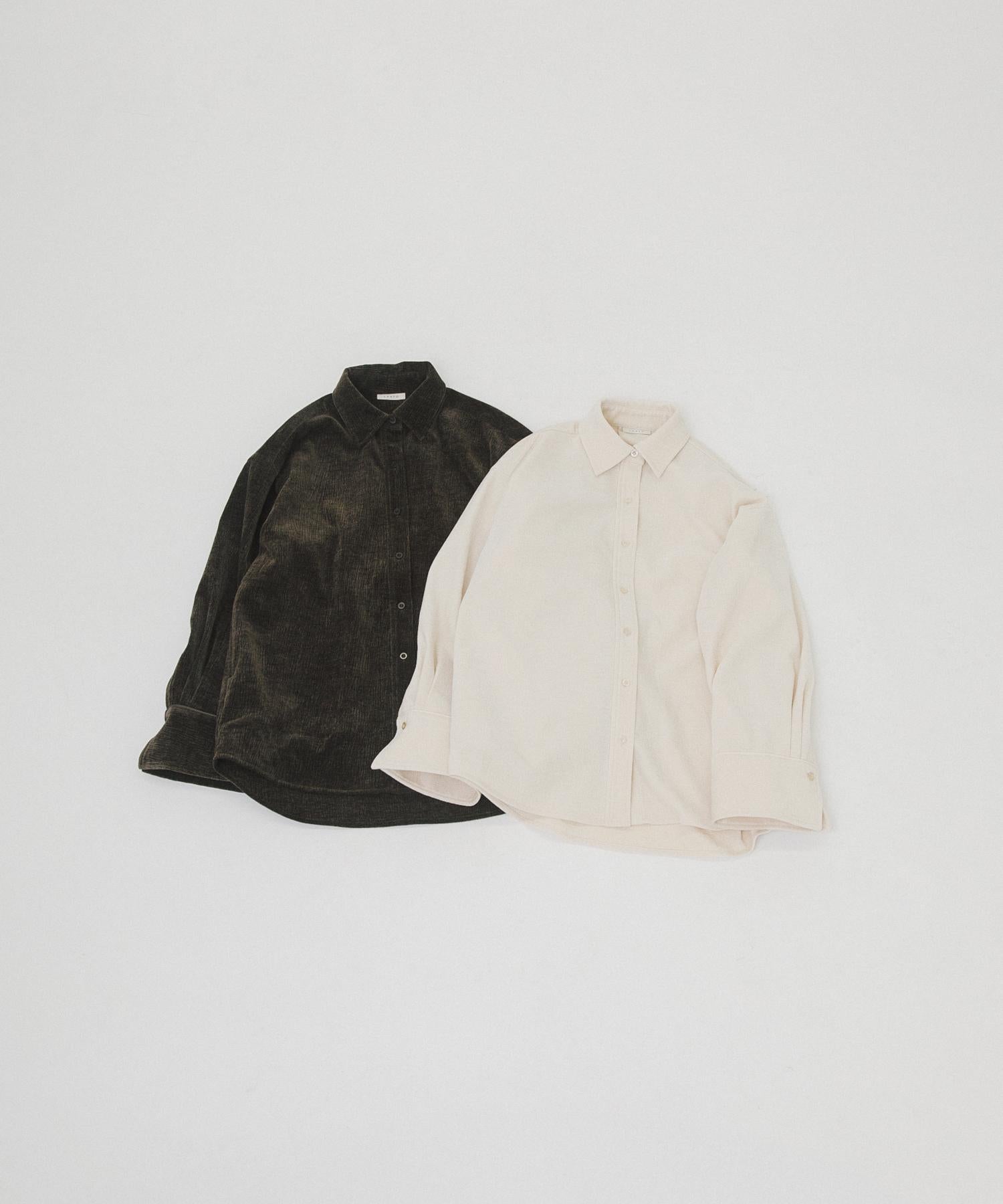手感柔軟的絲絨襯衫。您可以盡情享受天鵝絨特有的細膩光澤和墜落感。前襟全部係扣,既可以單穿,也可以敞開前襟作為輕便的外衣。袖口開衩,增加了手感的鬆弛感。此外,通過區分前後的長度,還能在運動時產生自然的立體效果。標準領適度收緊了整體造型,寬鬆的廓形給人輕鬆舒適的感覺。這是一款集優雅與舒適感於一身的百搭襯衫,無論在什麼場景下都能穿著,如果在日常生活中搭配牛仔休閒裝、休閒褲或長裙,也能活躍出成熟的氛圍。