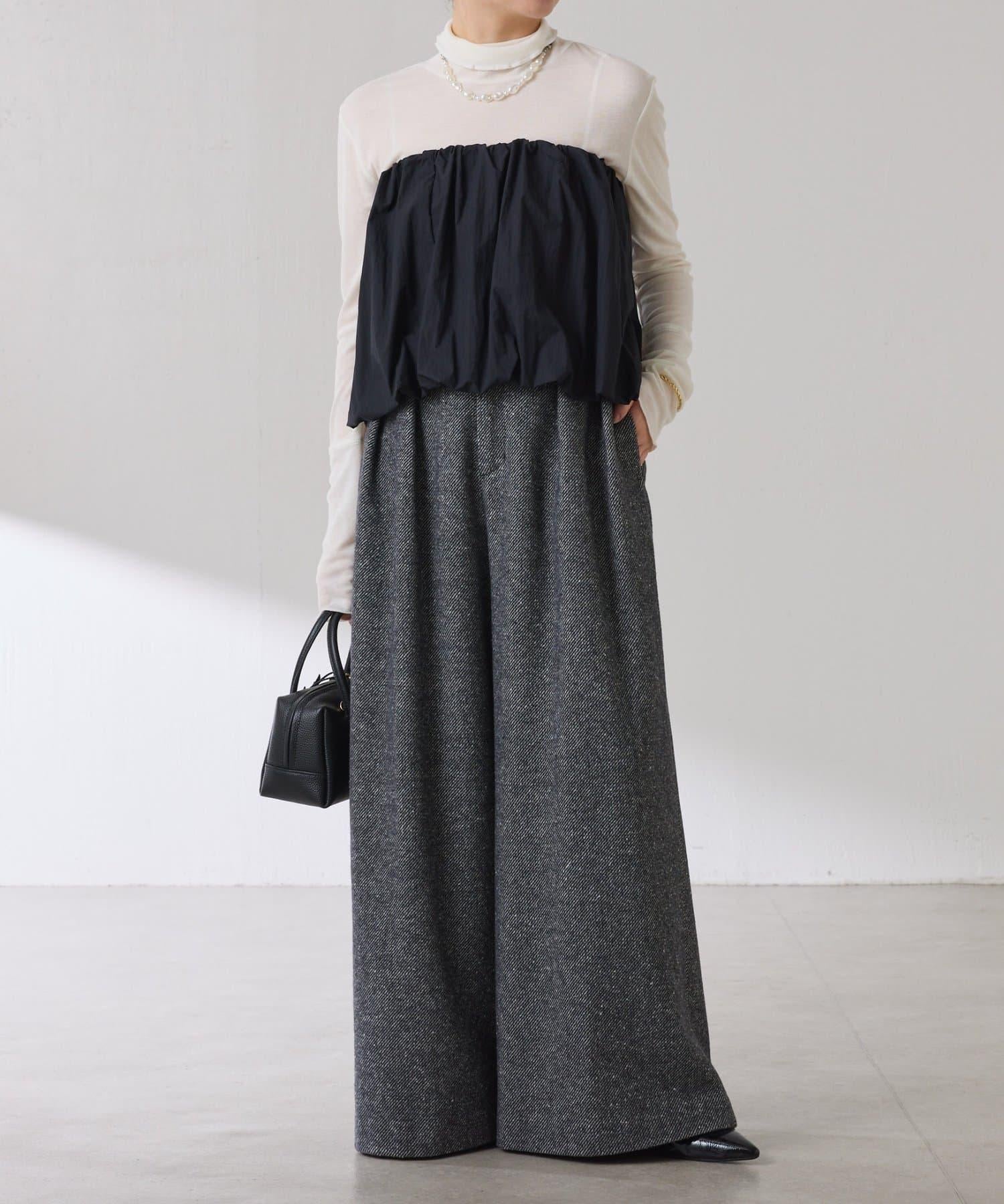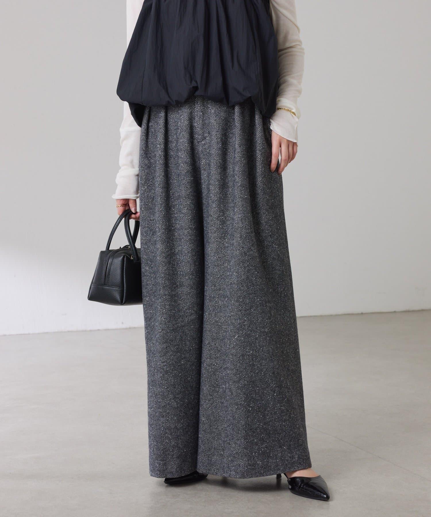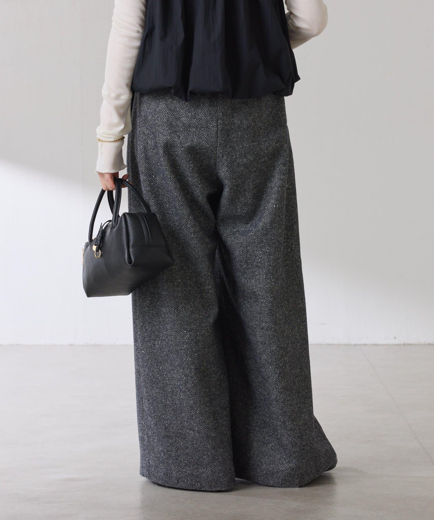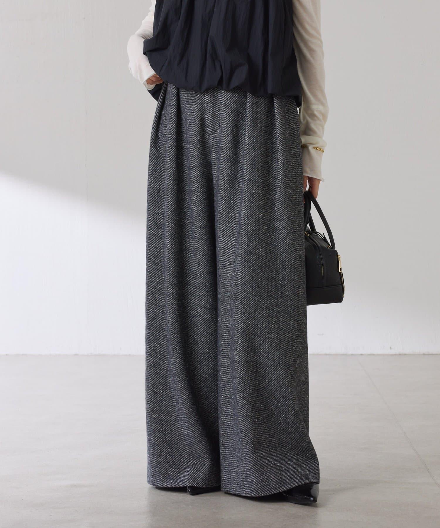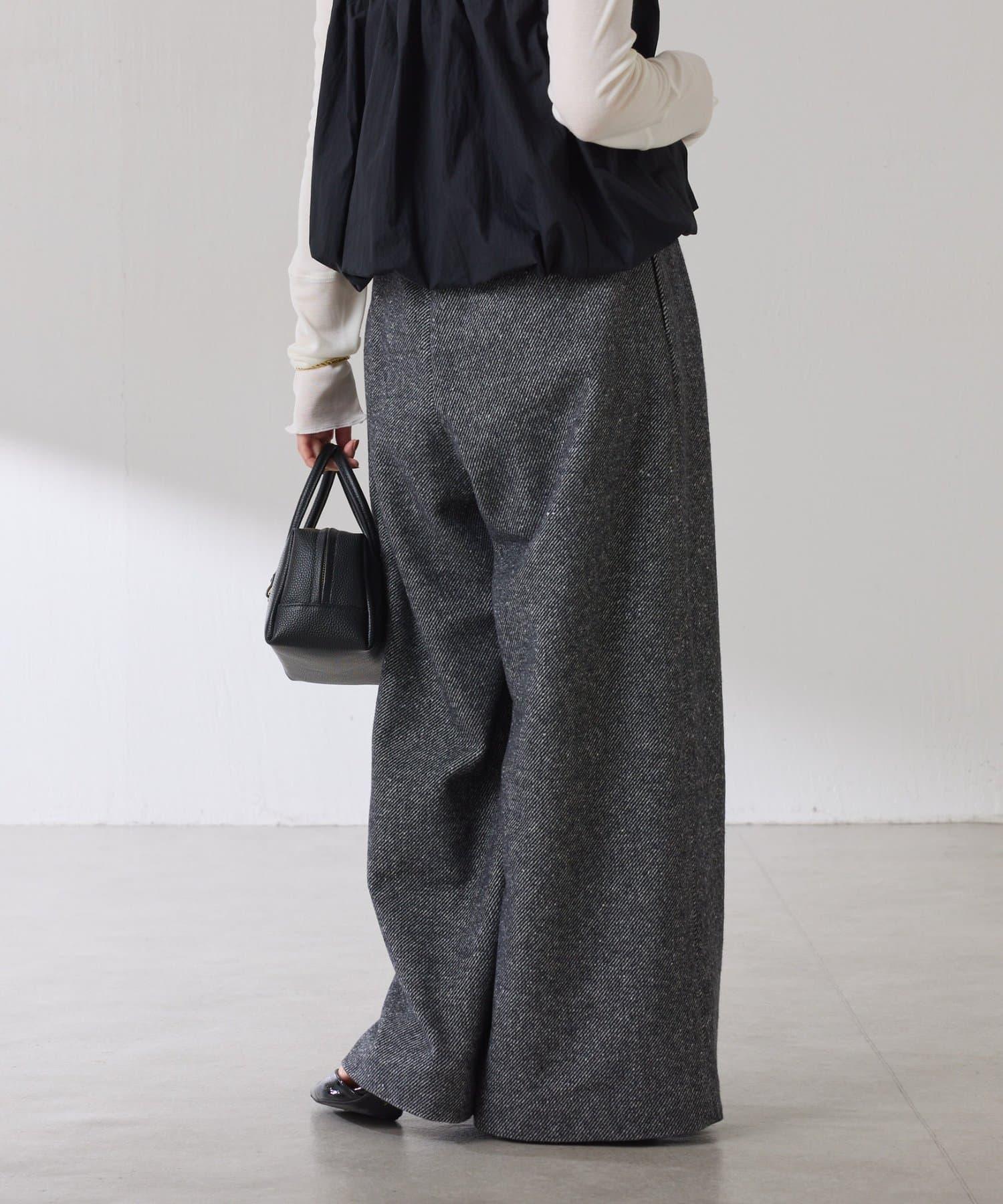 採用具有霓虹燈效果的仿粗花呢面料製成的褶襉寬長褲。