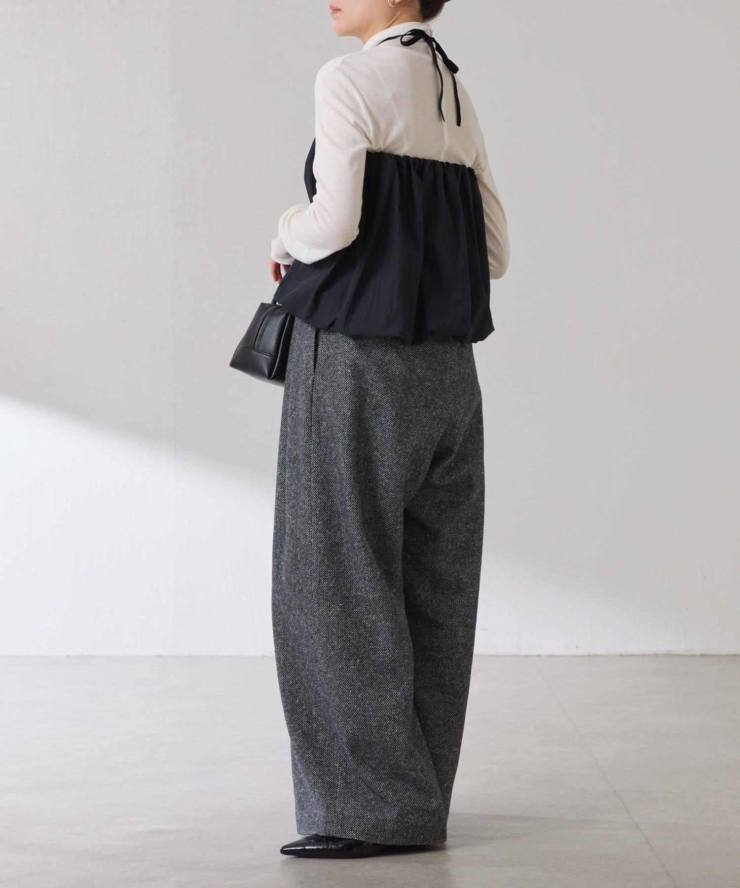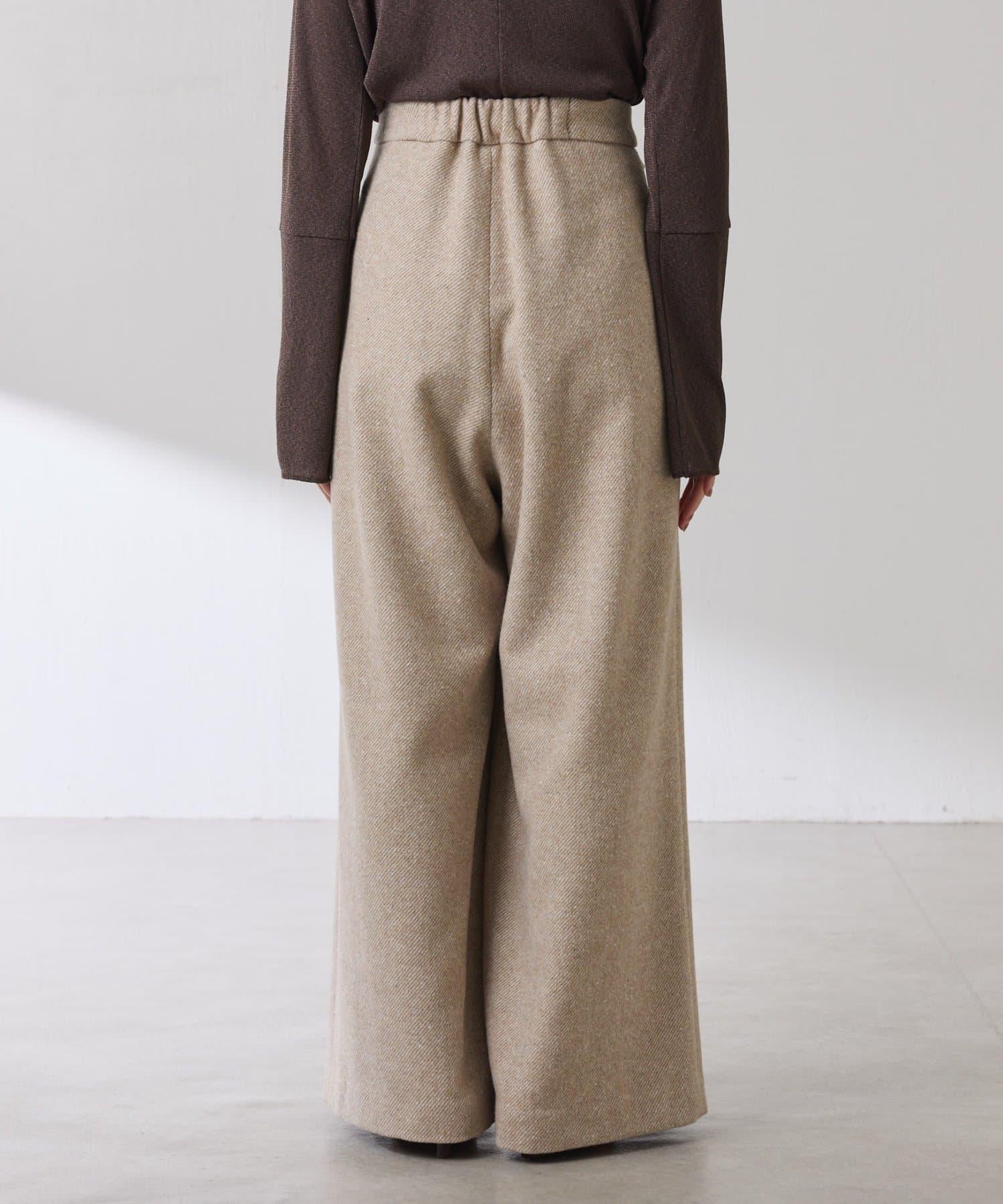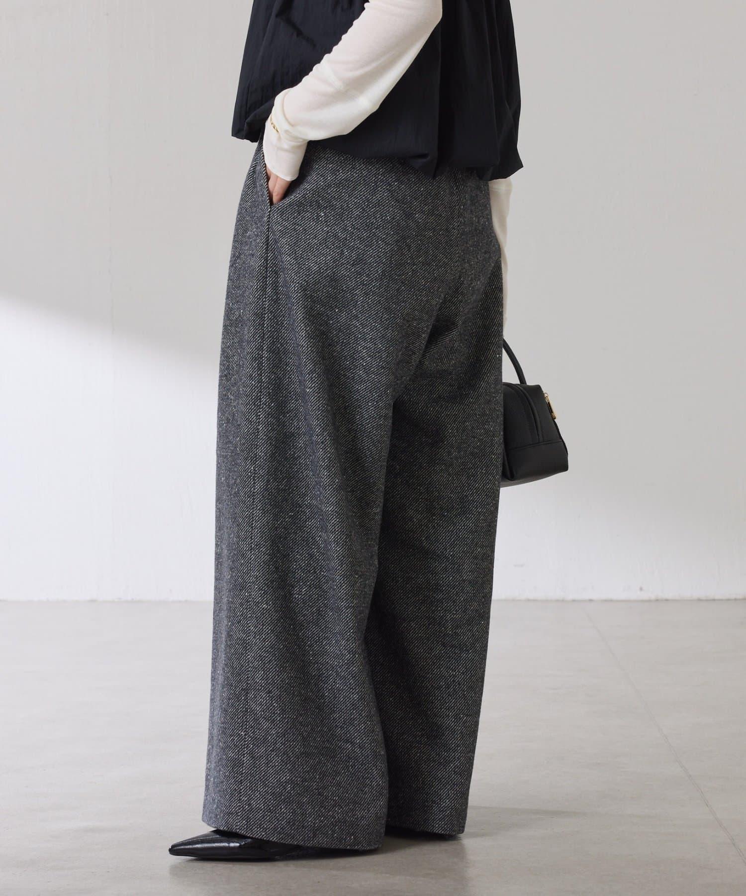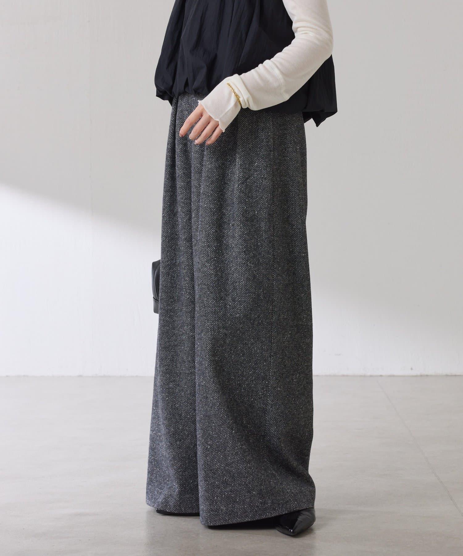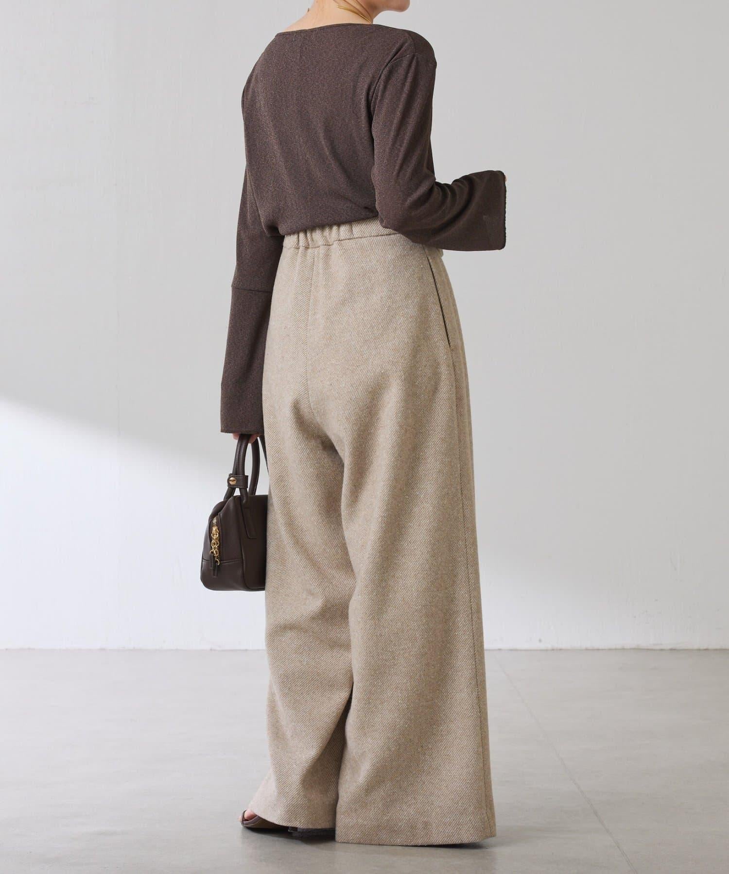 採用具有霓虹燈效果的仿粗花呢面料製成的褶襉寬長褲。