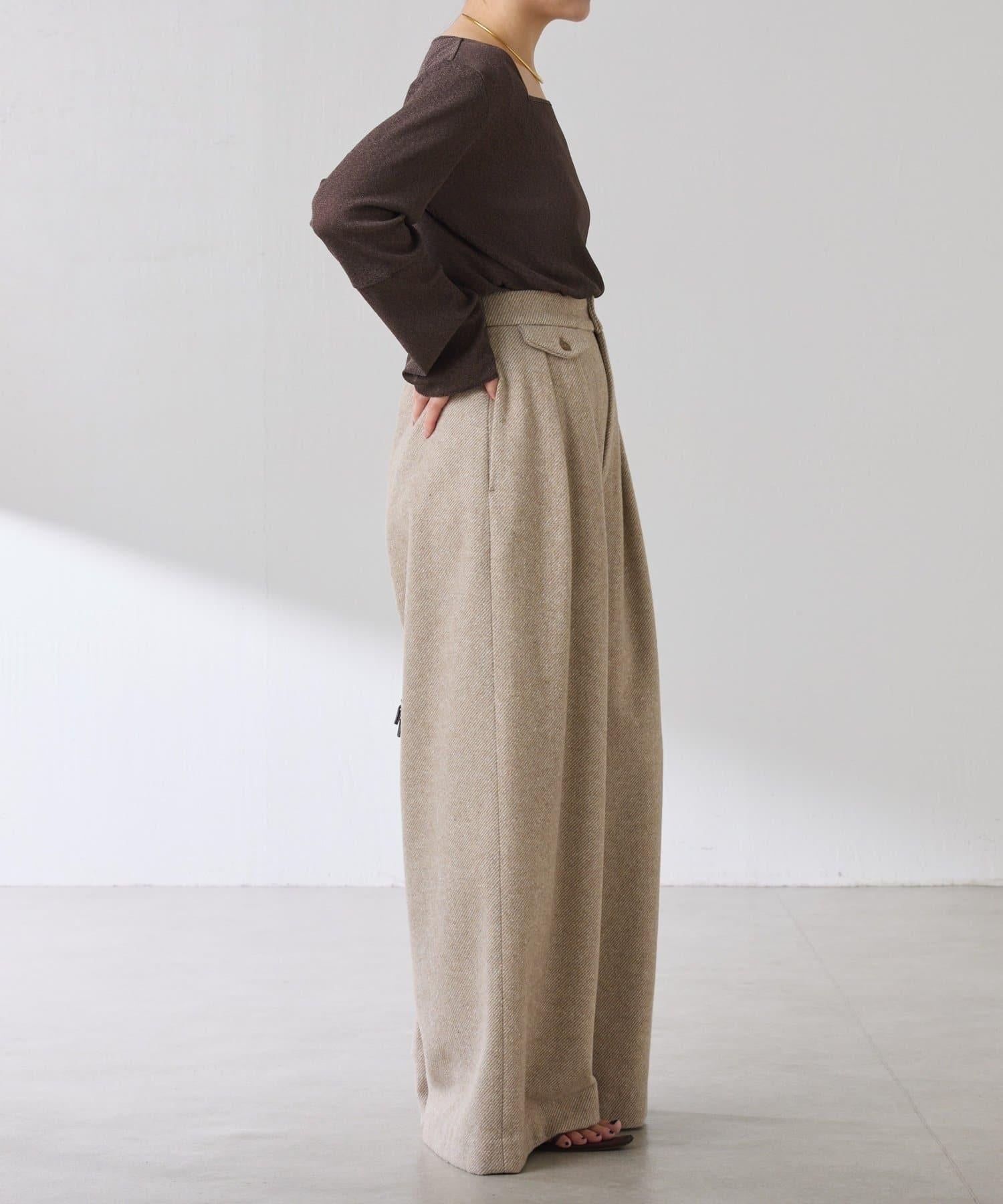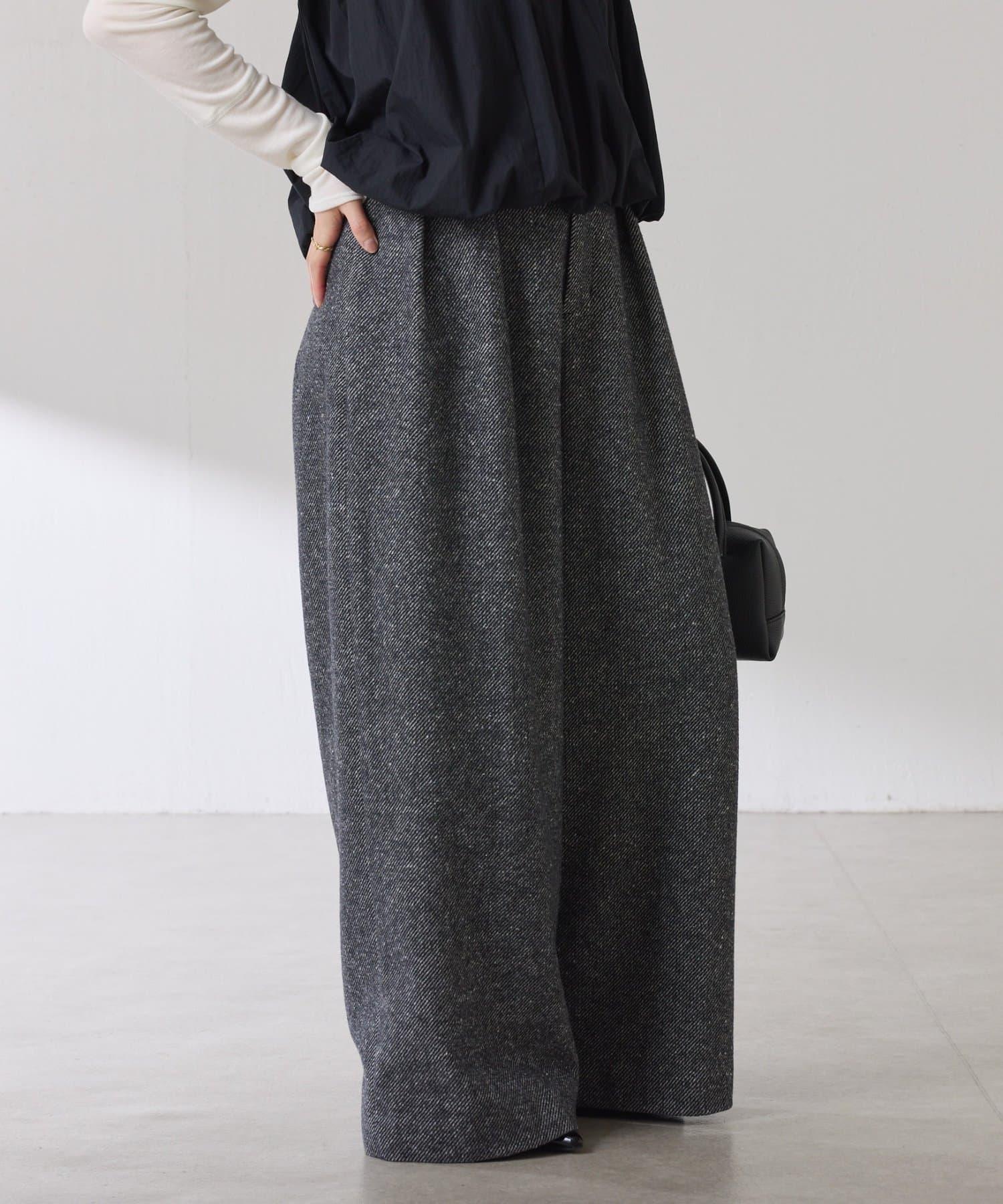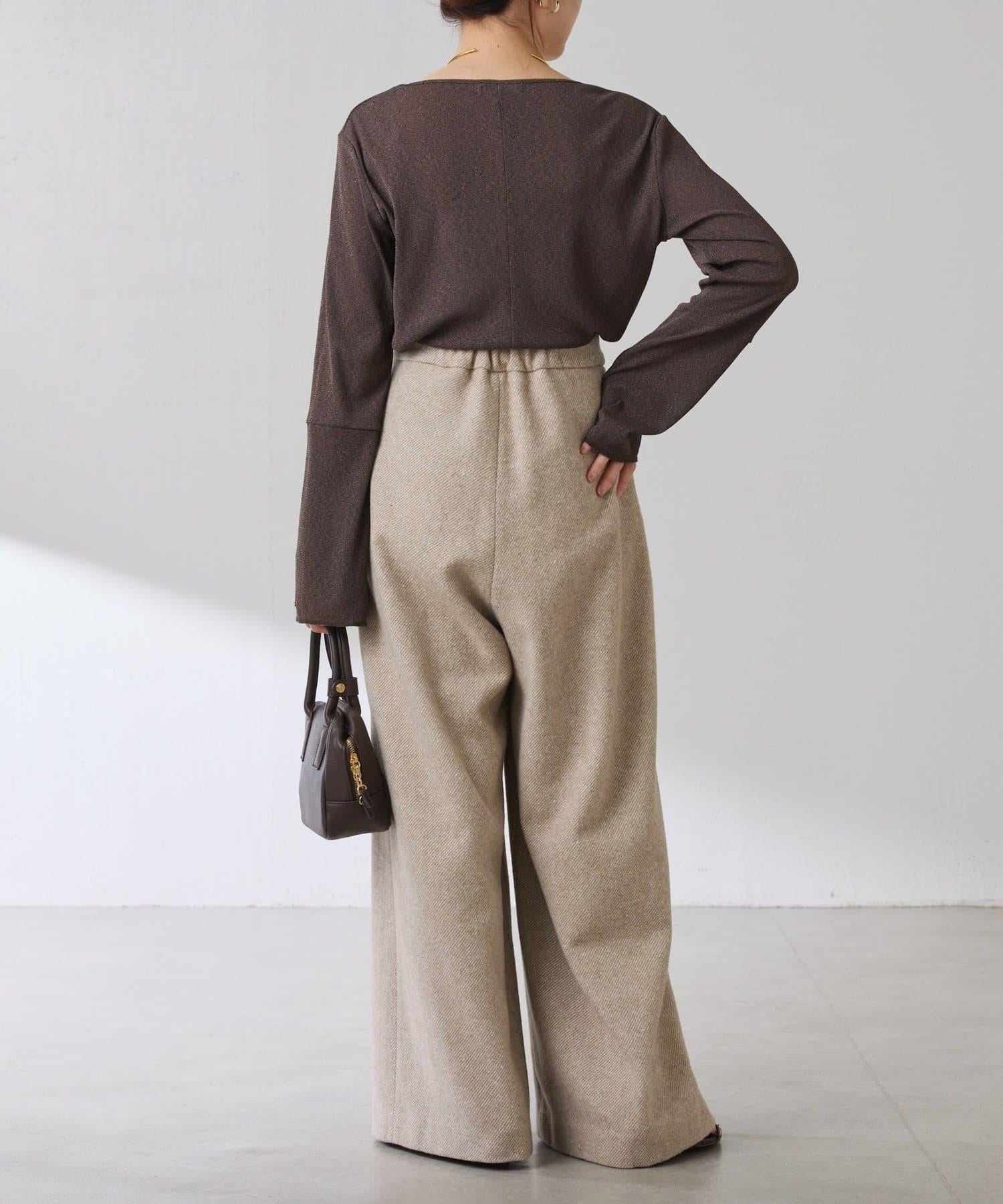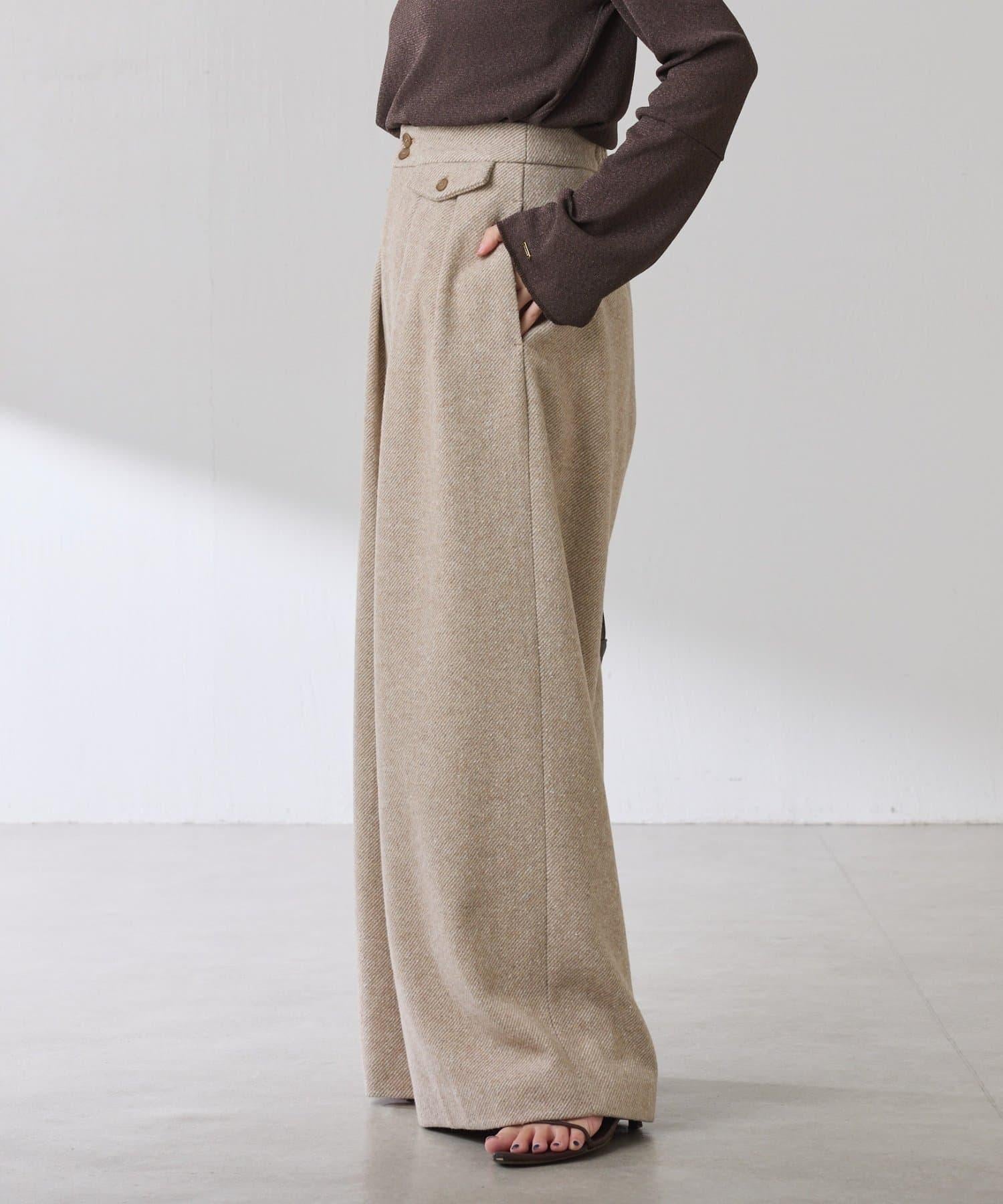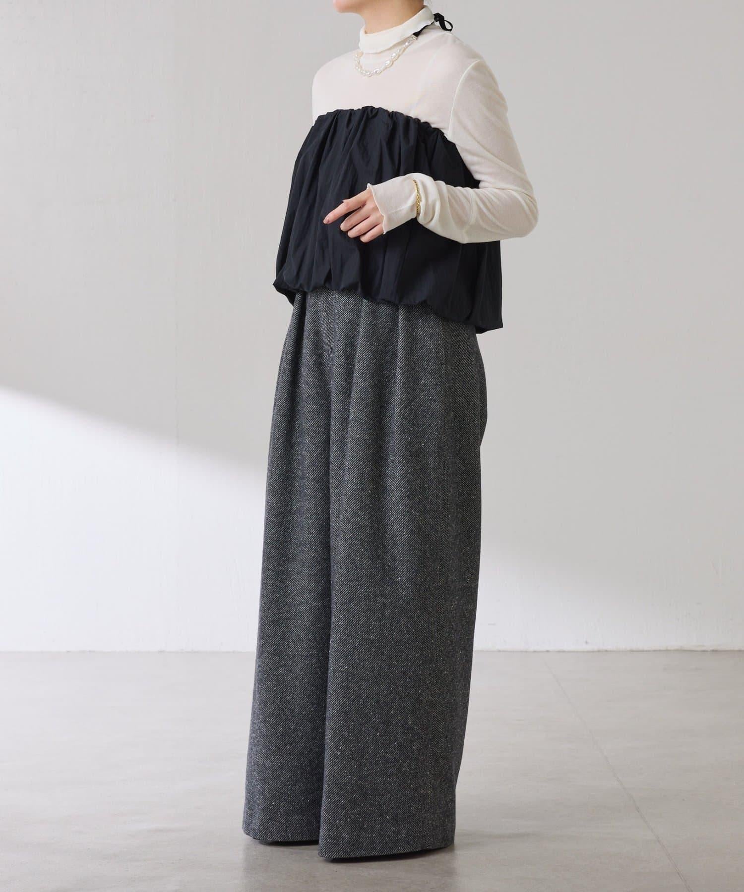 採用具有霓虹燈效果的仿粗花呢面料製成的褶襉寬長褲。