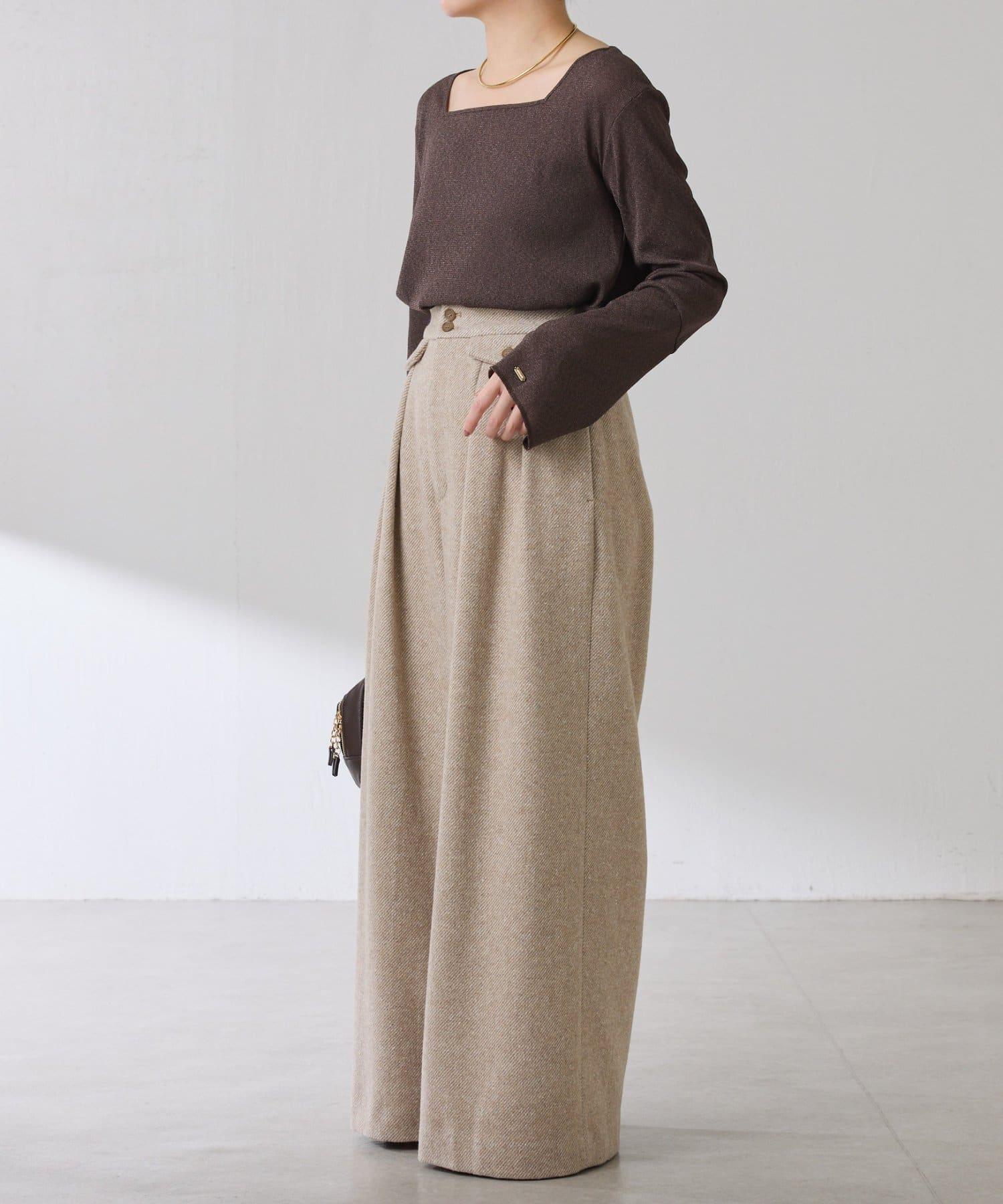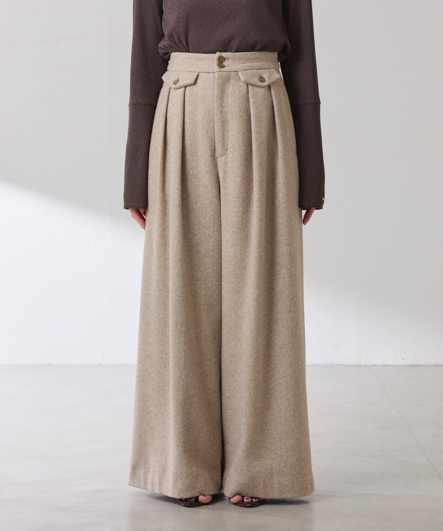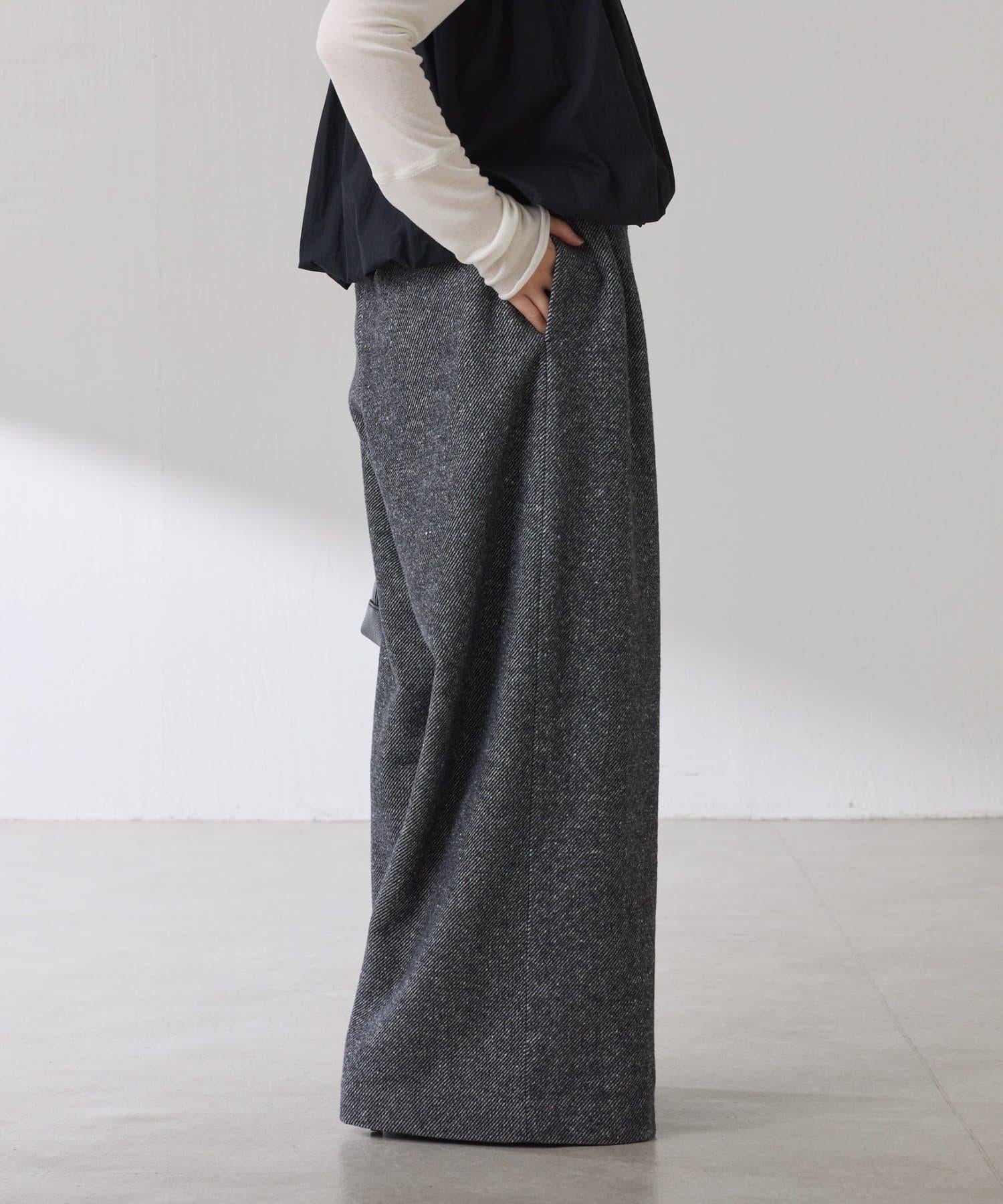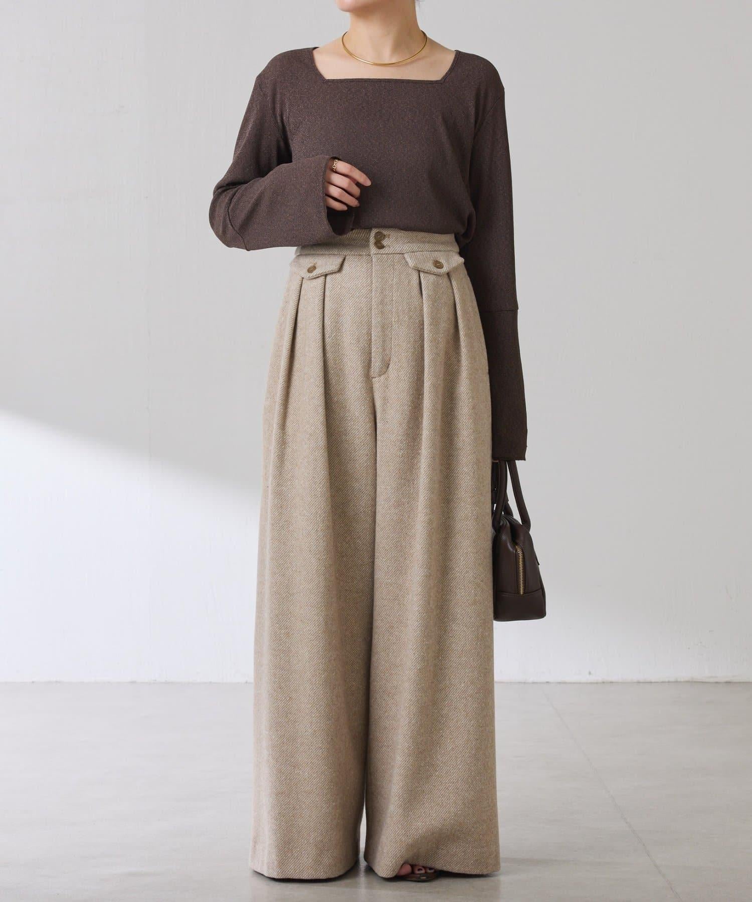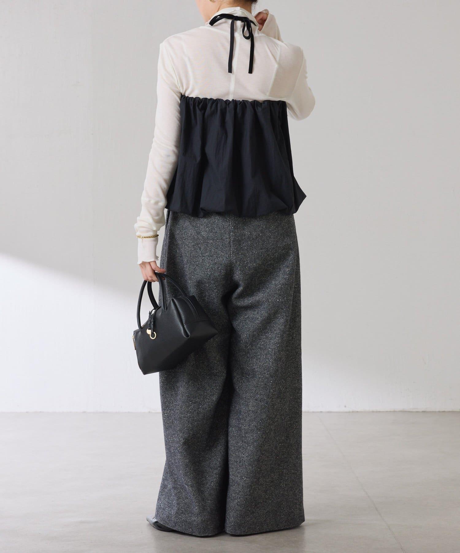採用具有霓虹燈效果的仿粗花呢面料製成的褶襉寬長褲。