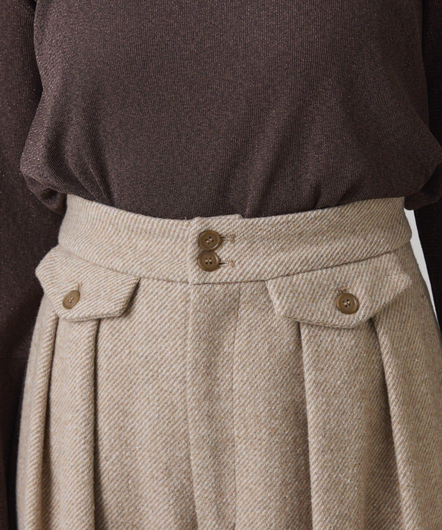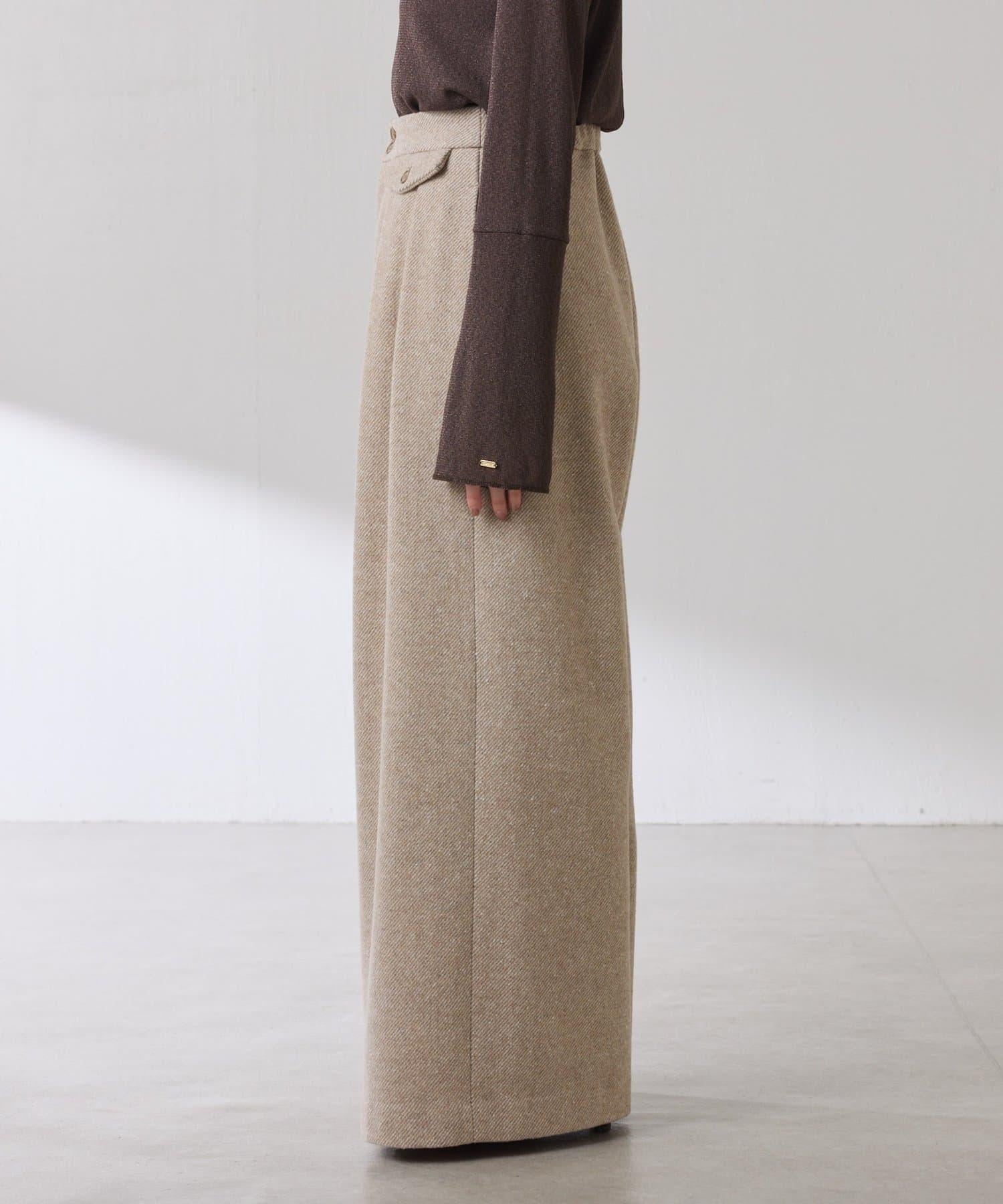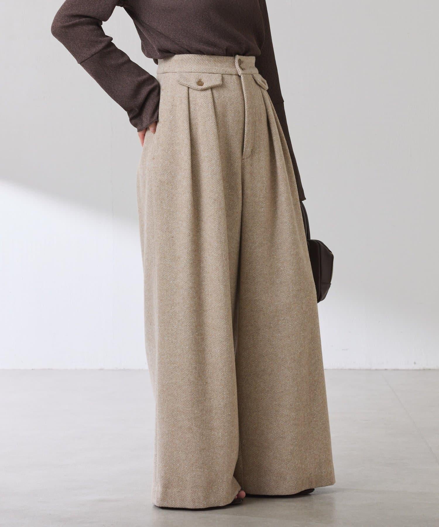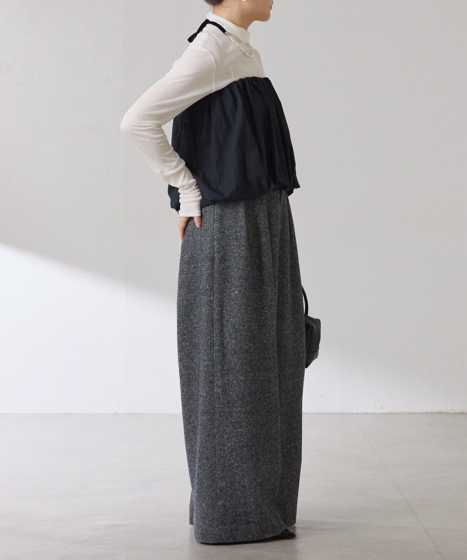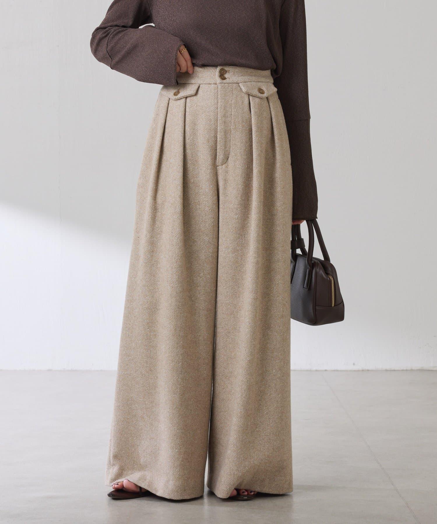 採用具有霓虹燈效果的仿粗花呢面料製成的褶襉寬長褲。