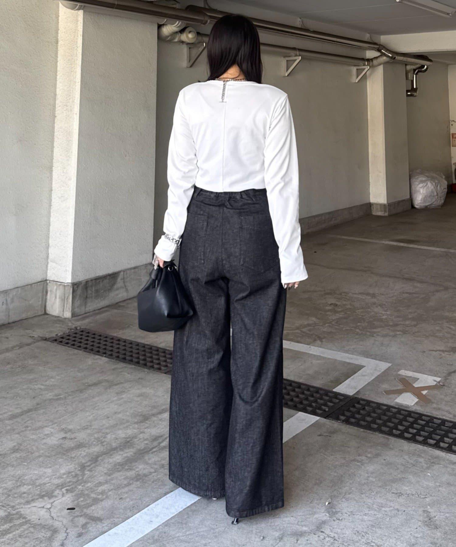 從遠處看,這是一款基本款牛仔布,但收腰設計卻與眾不同,成為一款可以穿出美感的單品。
