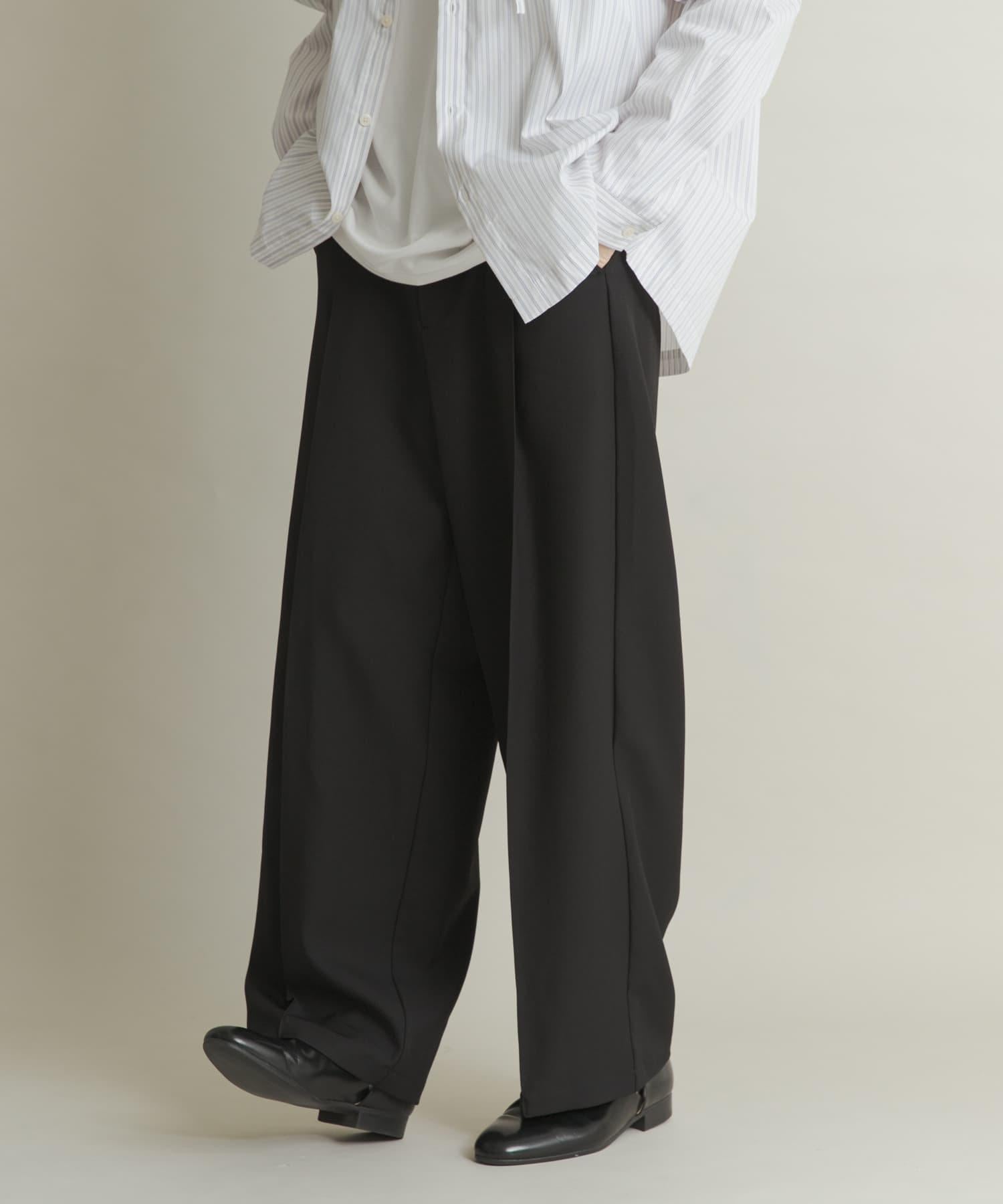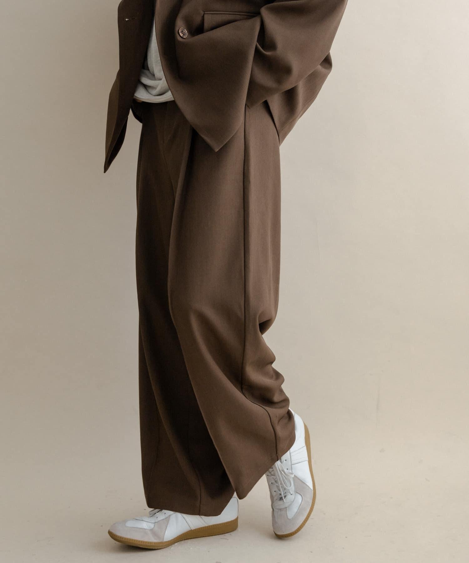 面料採用略帶光澤的材料製成,垂墜感十足,給人以優雅的印象。這種面料四季皆宜,因此無論季節如何,它都能用於各種造型。