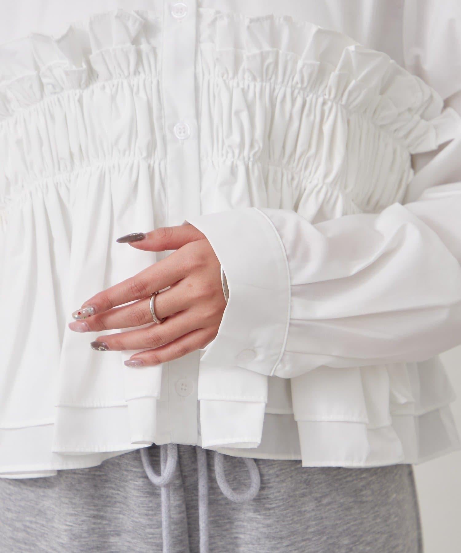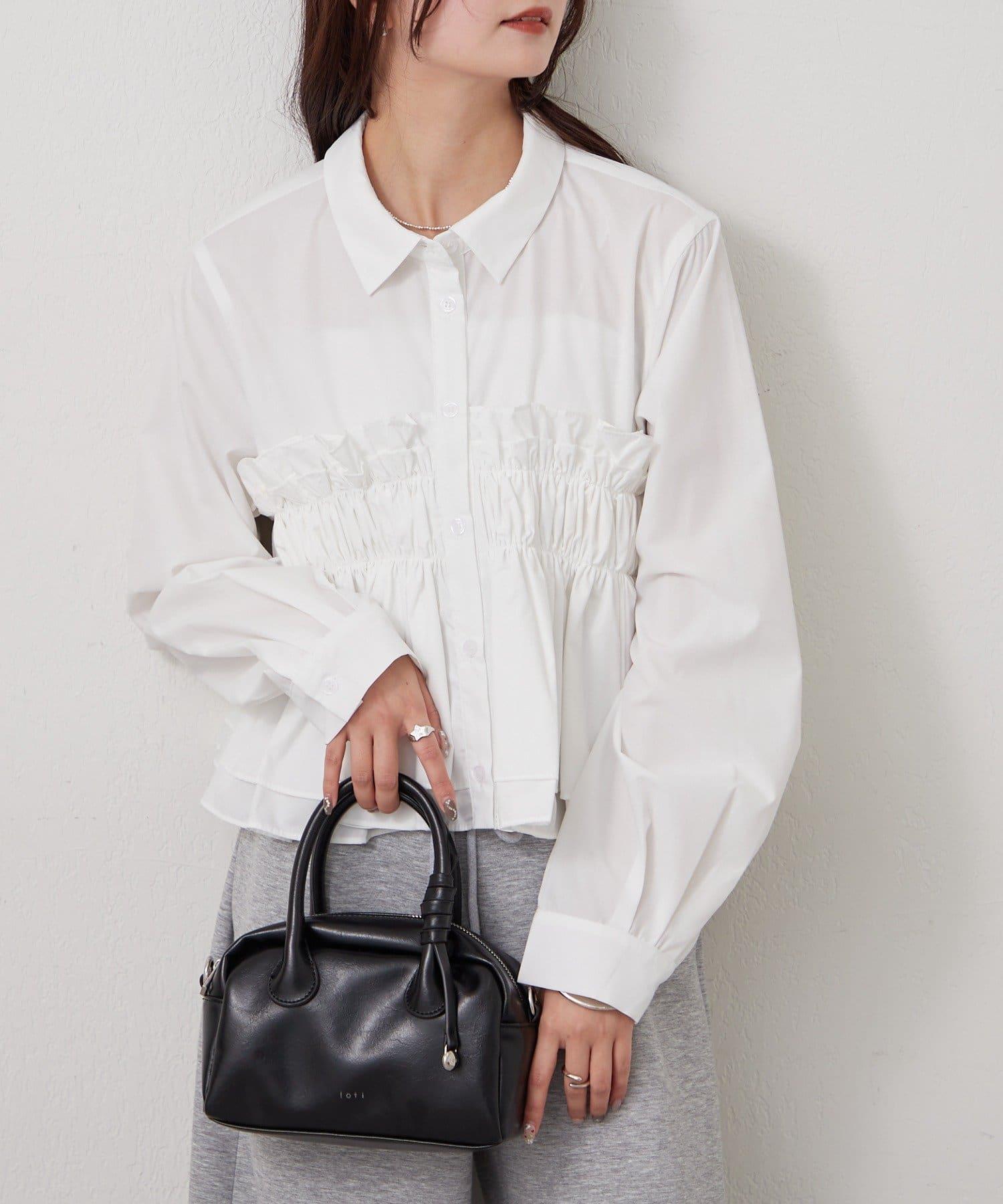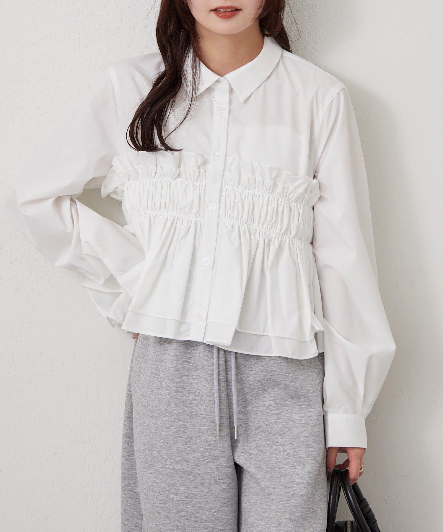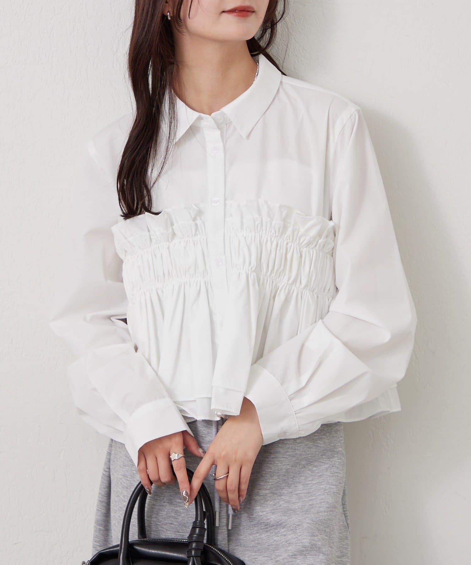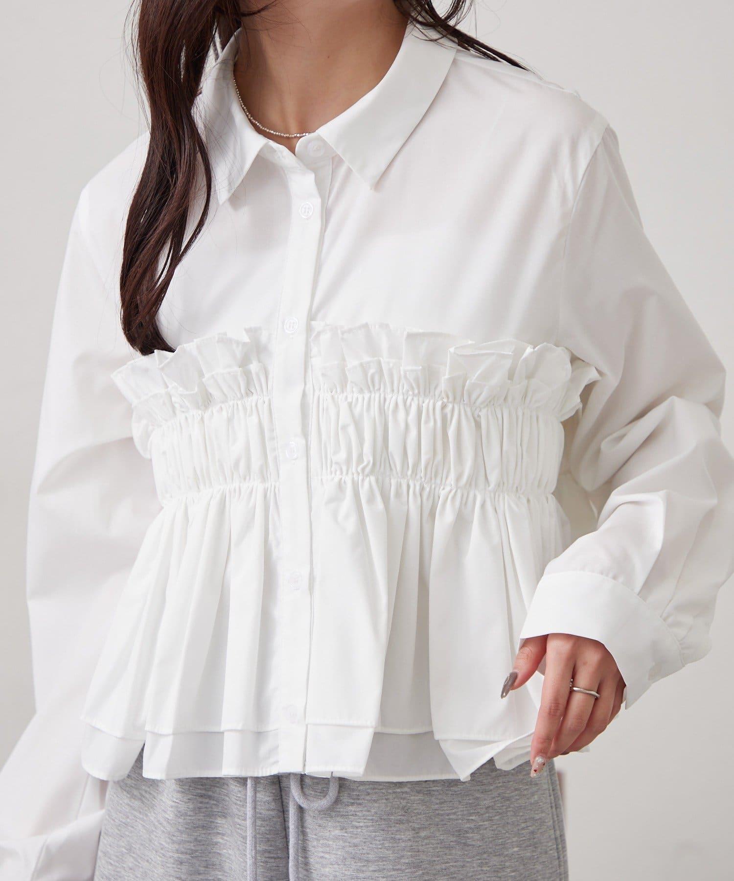 褶皺層疊女式襯衫