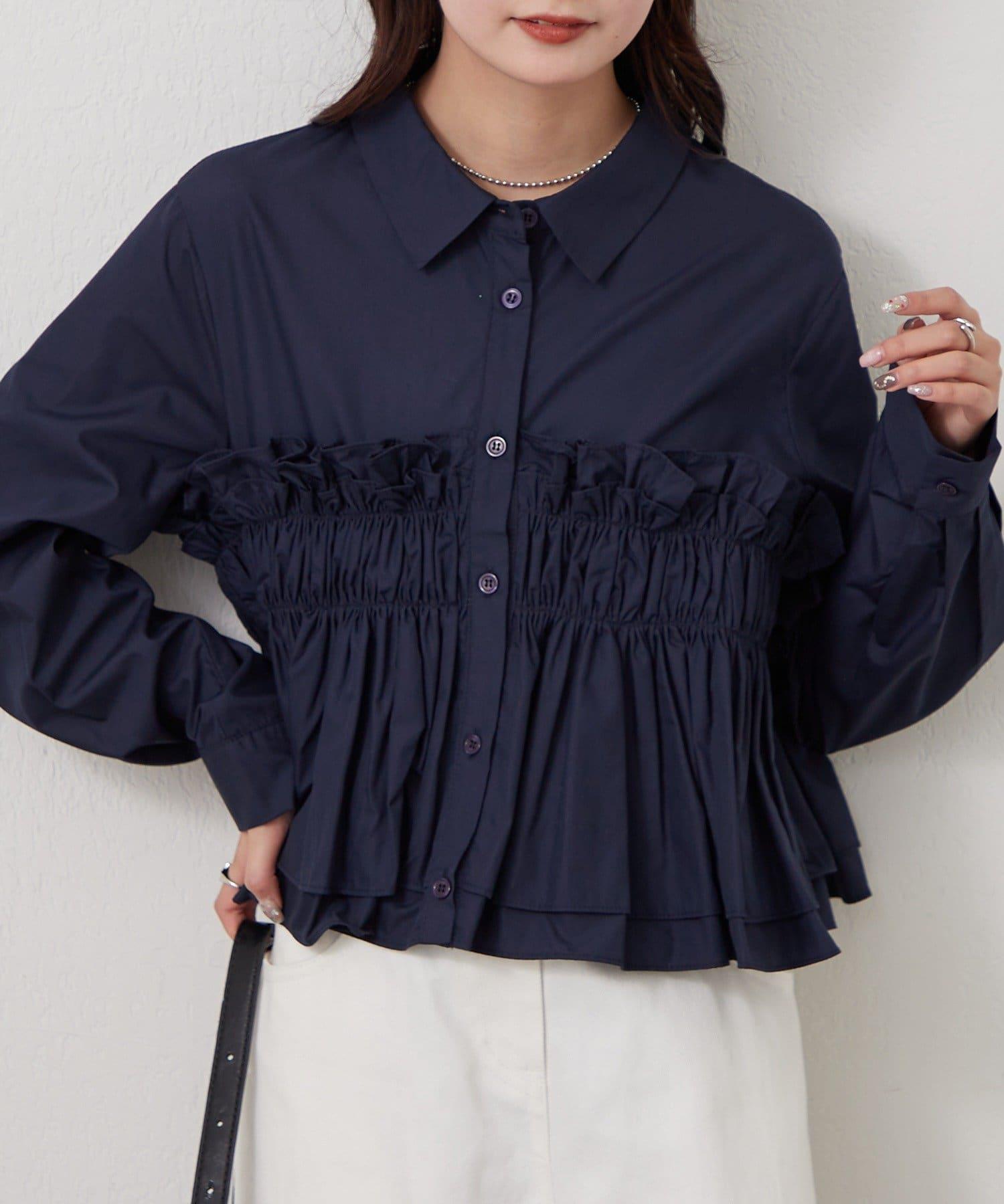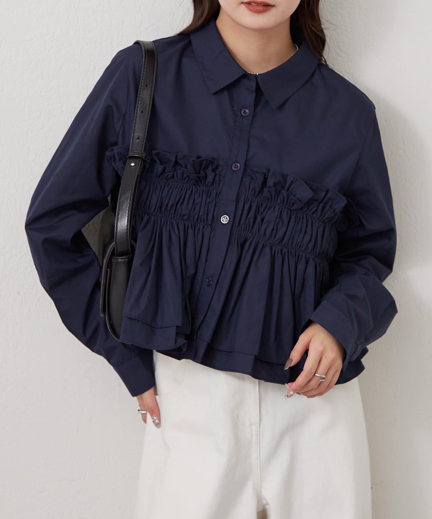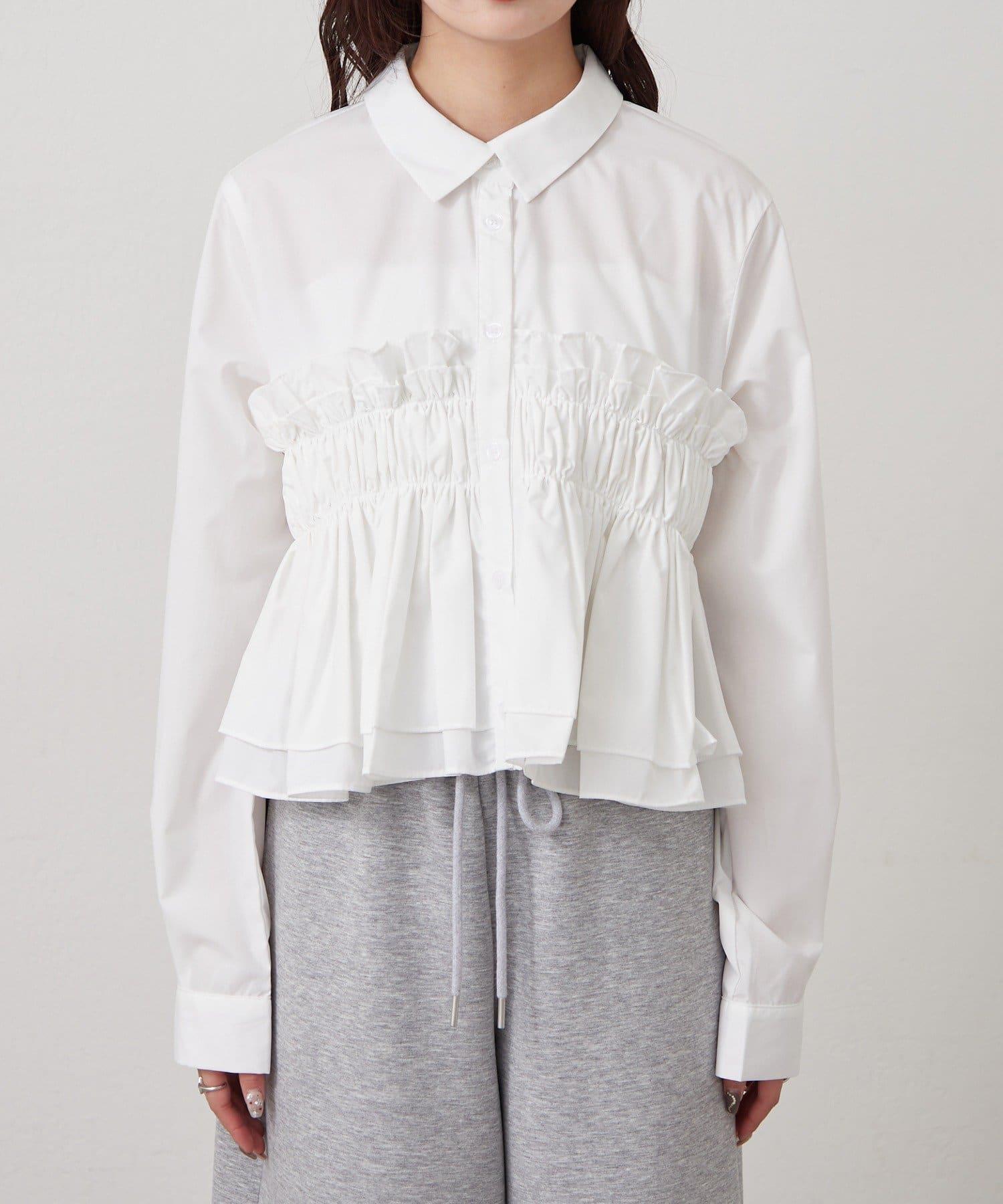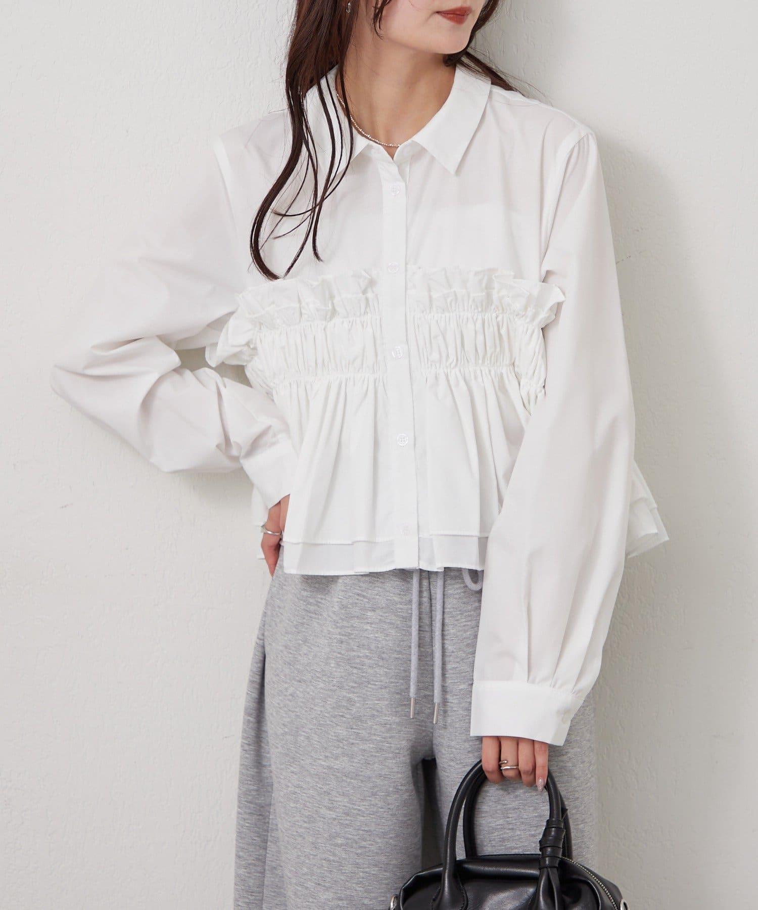 褶皺層疊女式襯衫