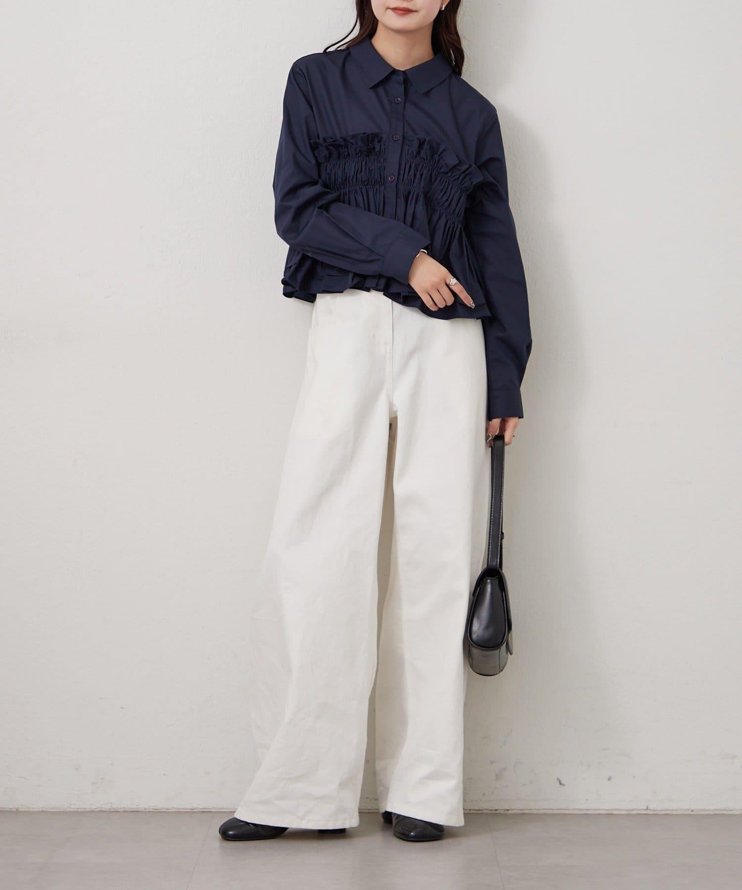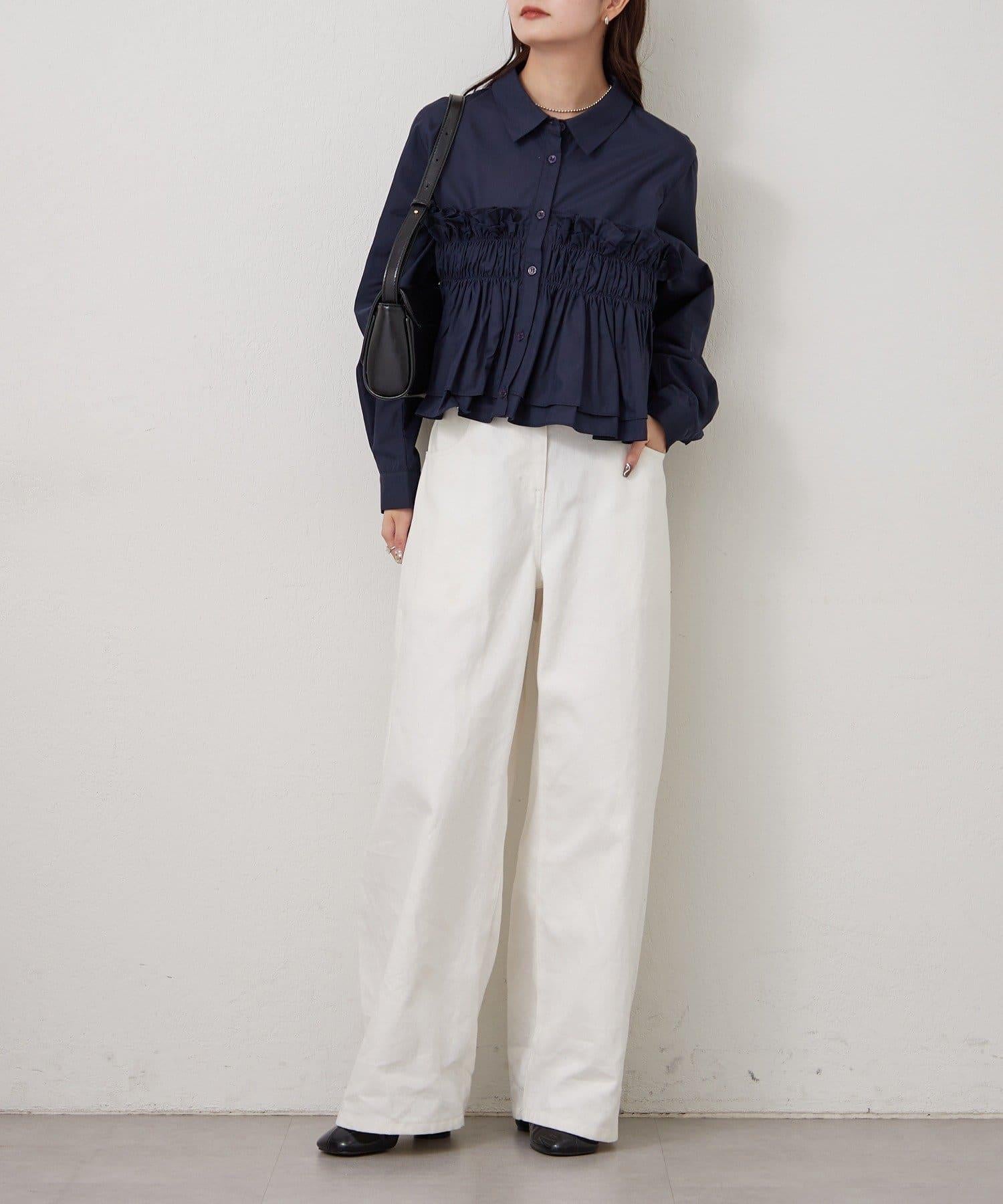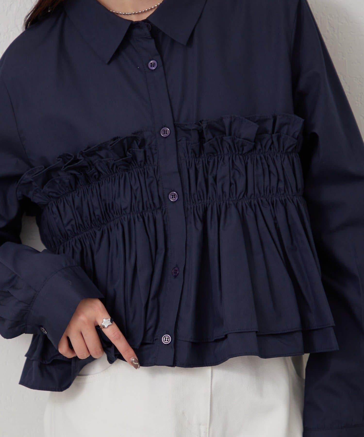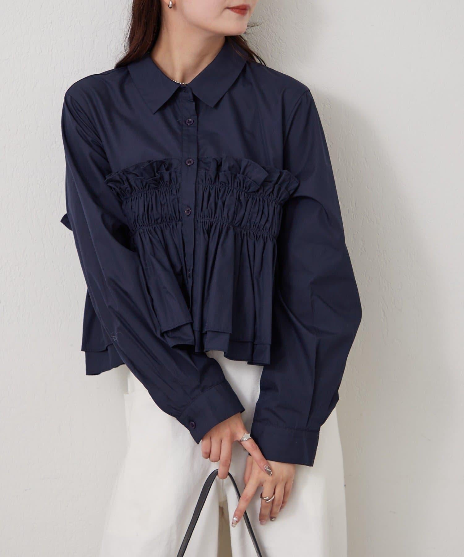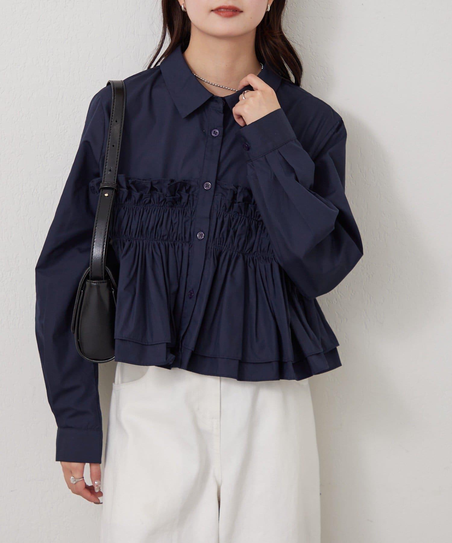 褶皺層疊女式襯衫
