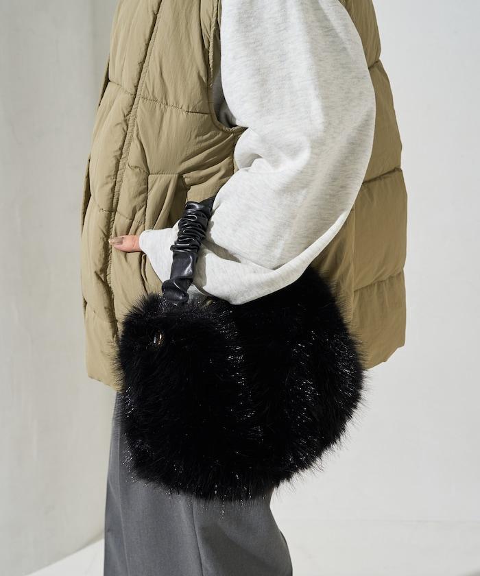 雙向手袋,配有人造皮草和聚攏手柄,提升季節氛圍。