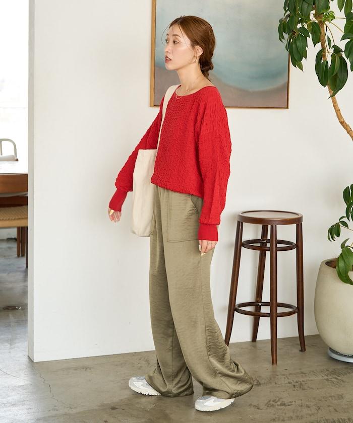 皺褶聚攏針織衫極富表現力,搭配簡單的下裝也很好看。