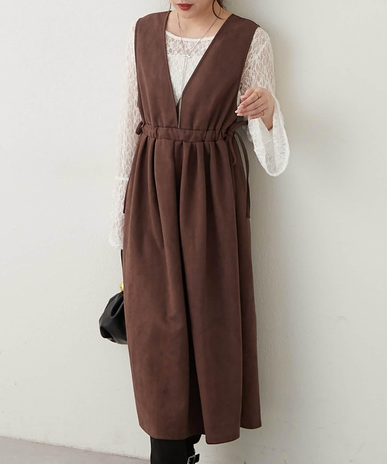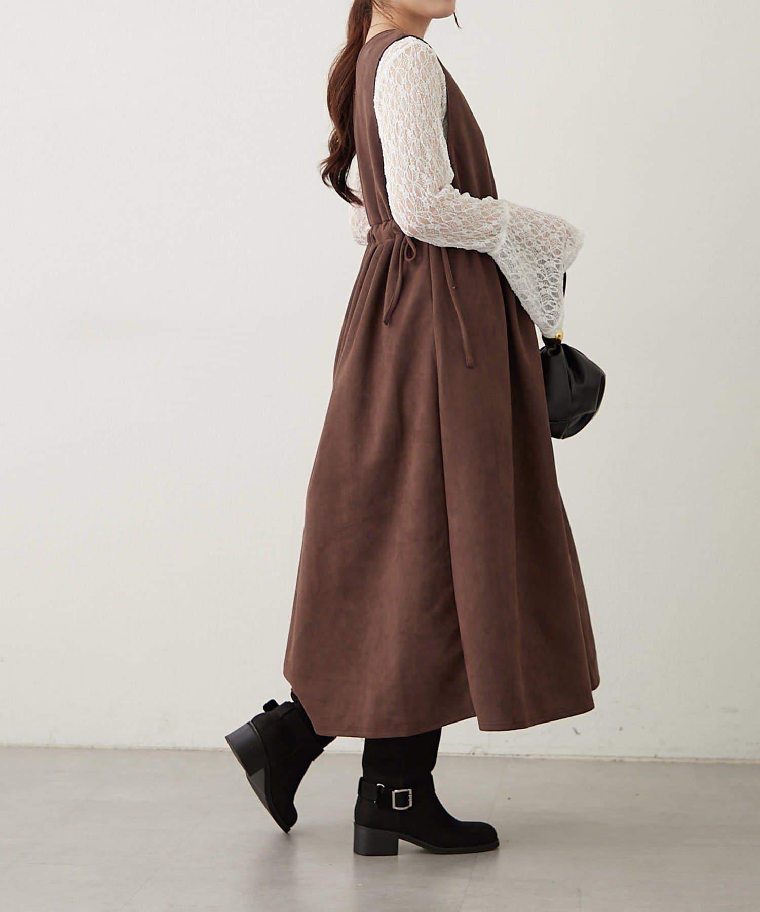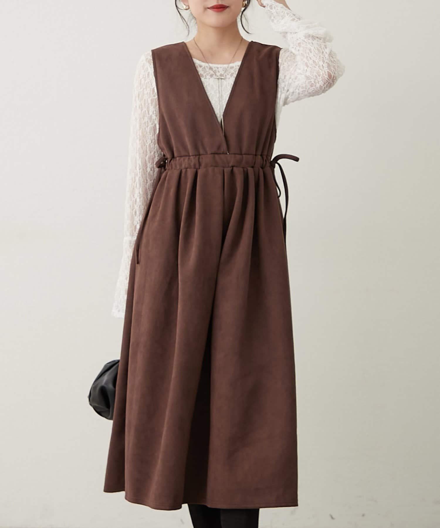 這款連衣裙採用了厚實的麂皮材質,具有很高的可視性。
