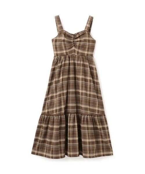 這款連衣裙採用暖色格紋織物製成,具有磨毛效果。