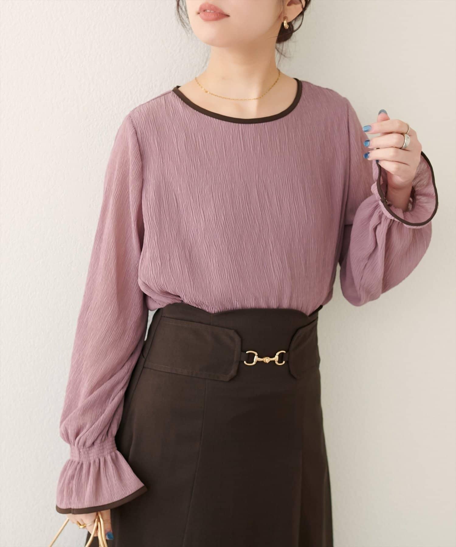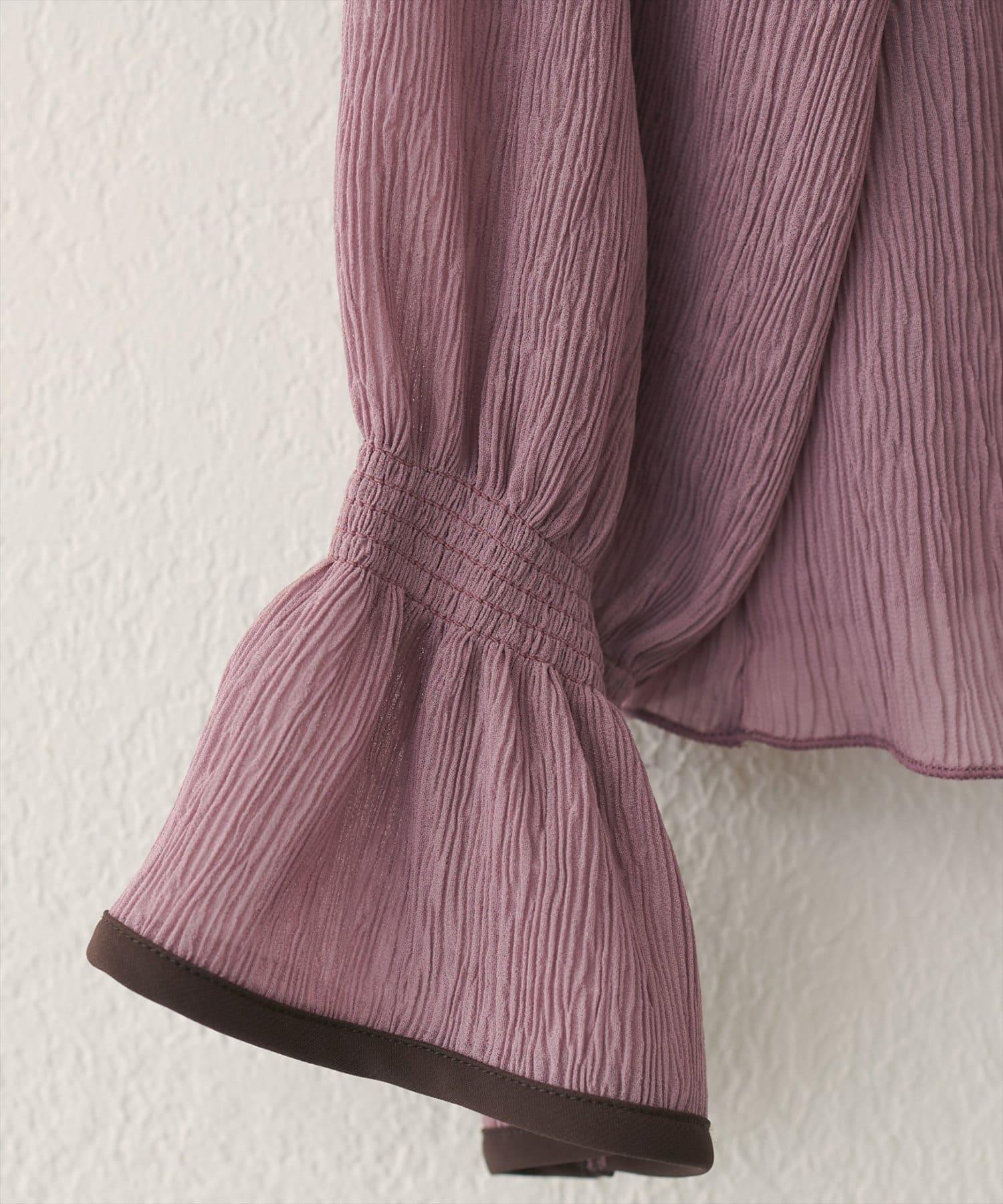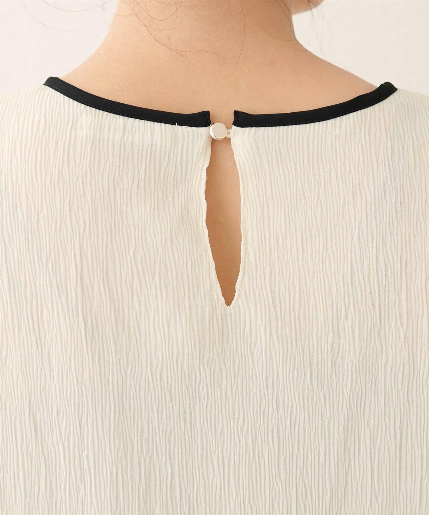 領口和袖口採用優雅的滾邊裝飾,使整個造型渾然一體。