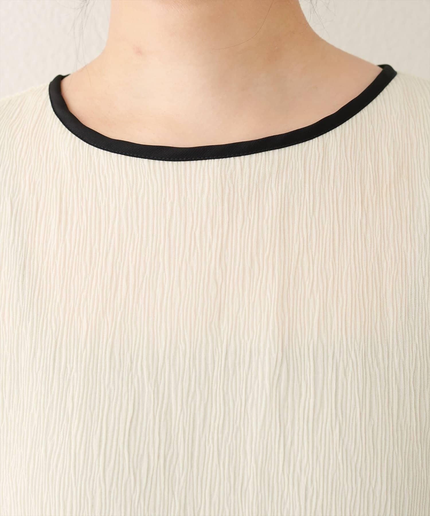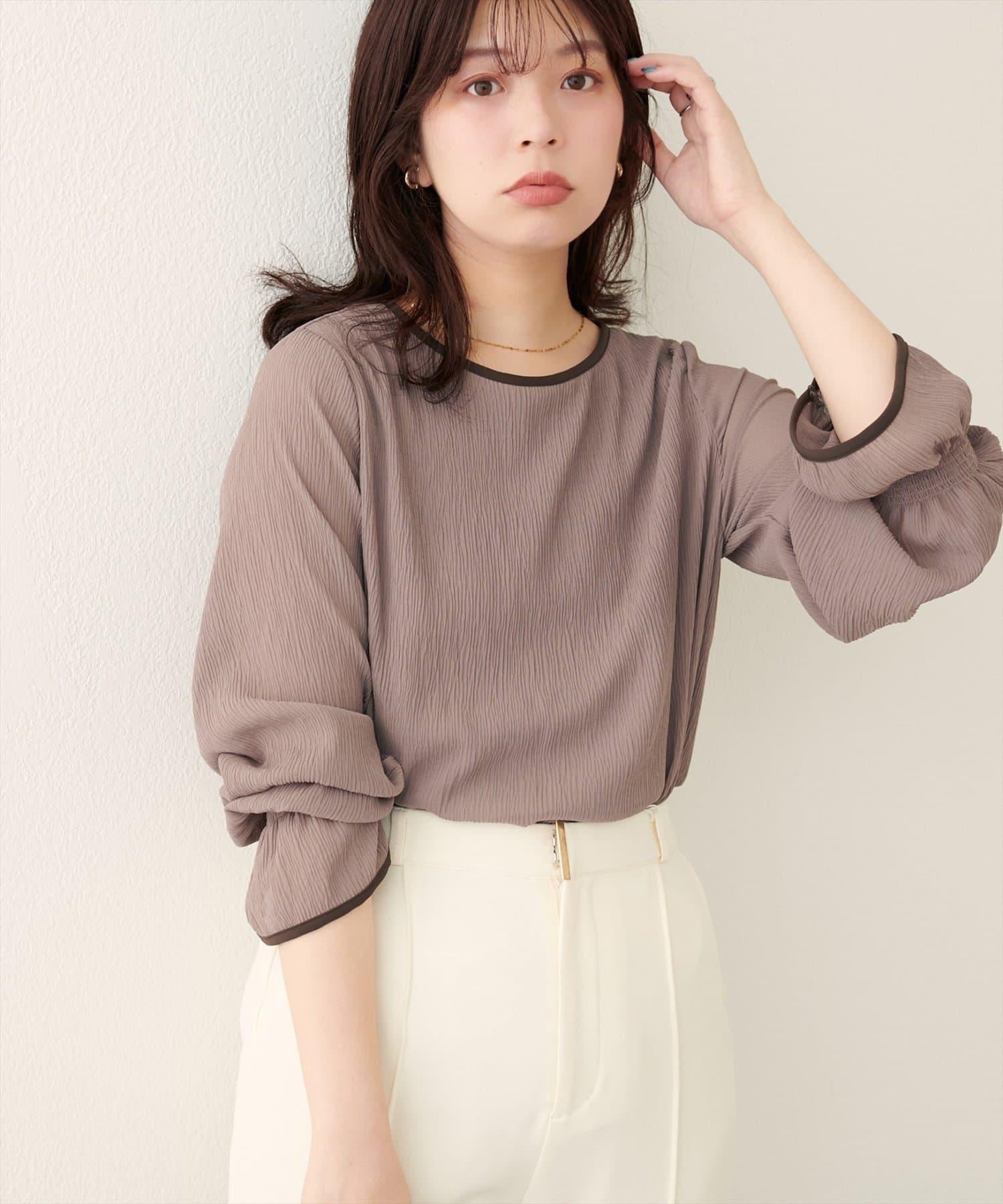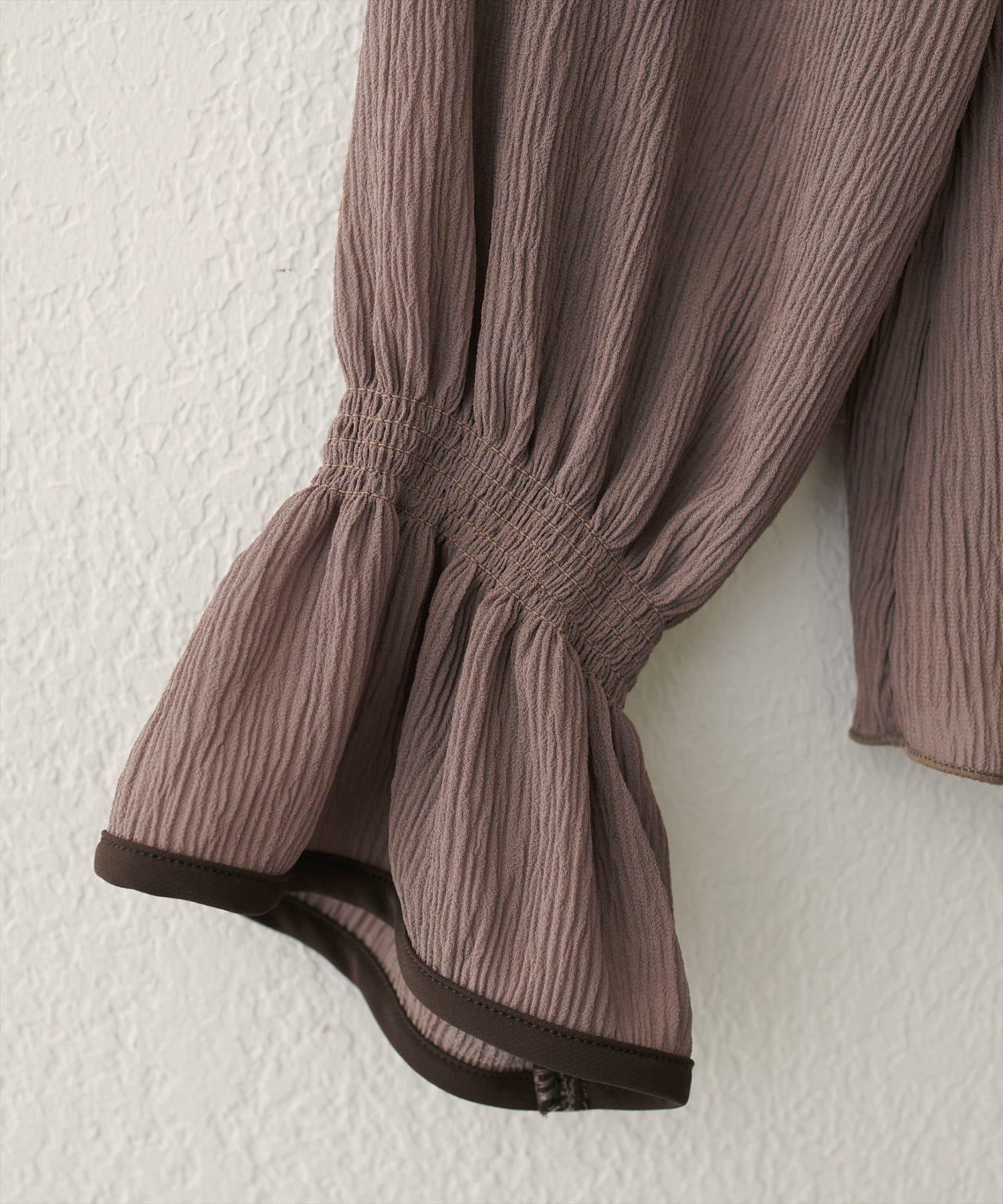 領口和袖口採用優雅的滾邊裝飾,使整個造型渾然一體。