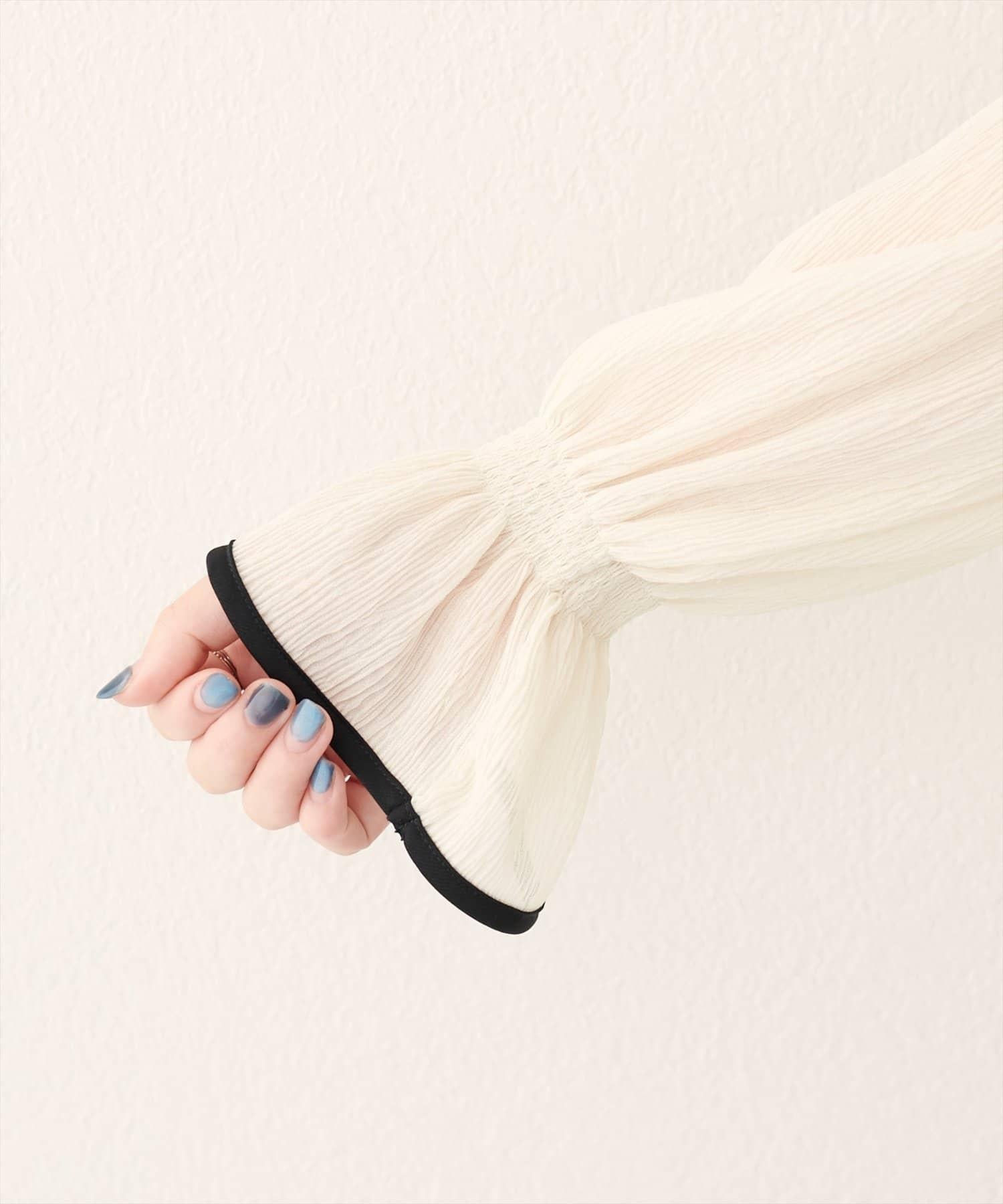 袖口的喇叭形設計不僅使手部顯得纖細,還在協調中增添了女性的柔美印象。