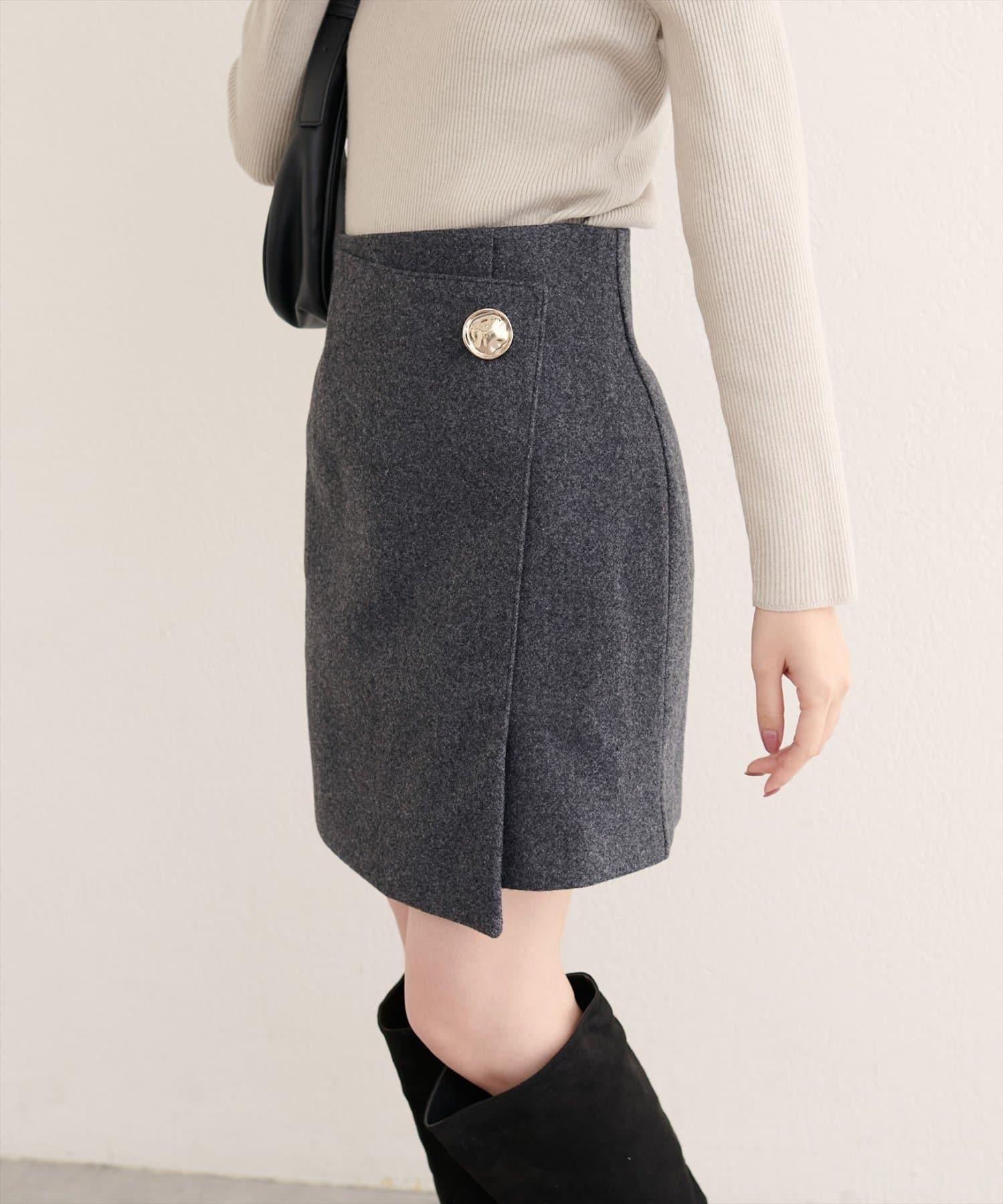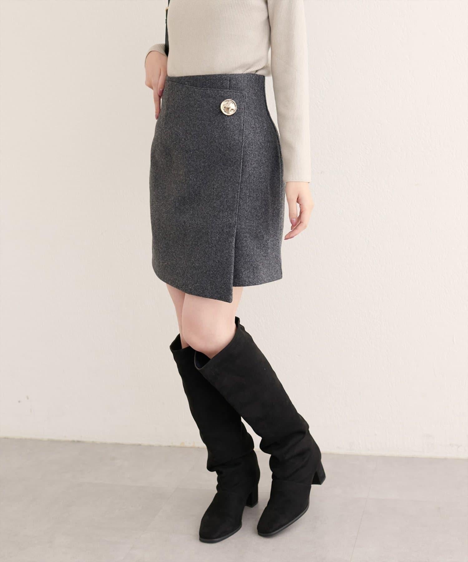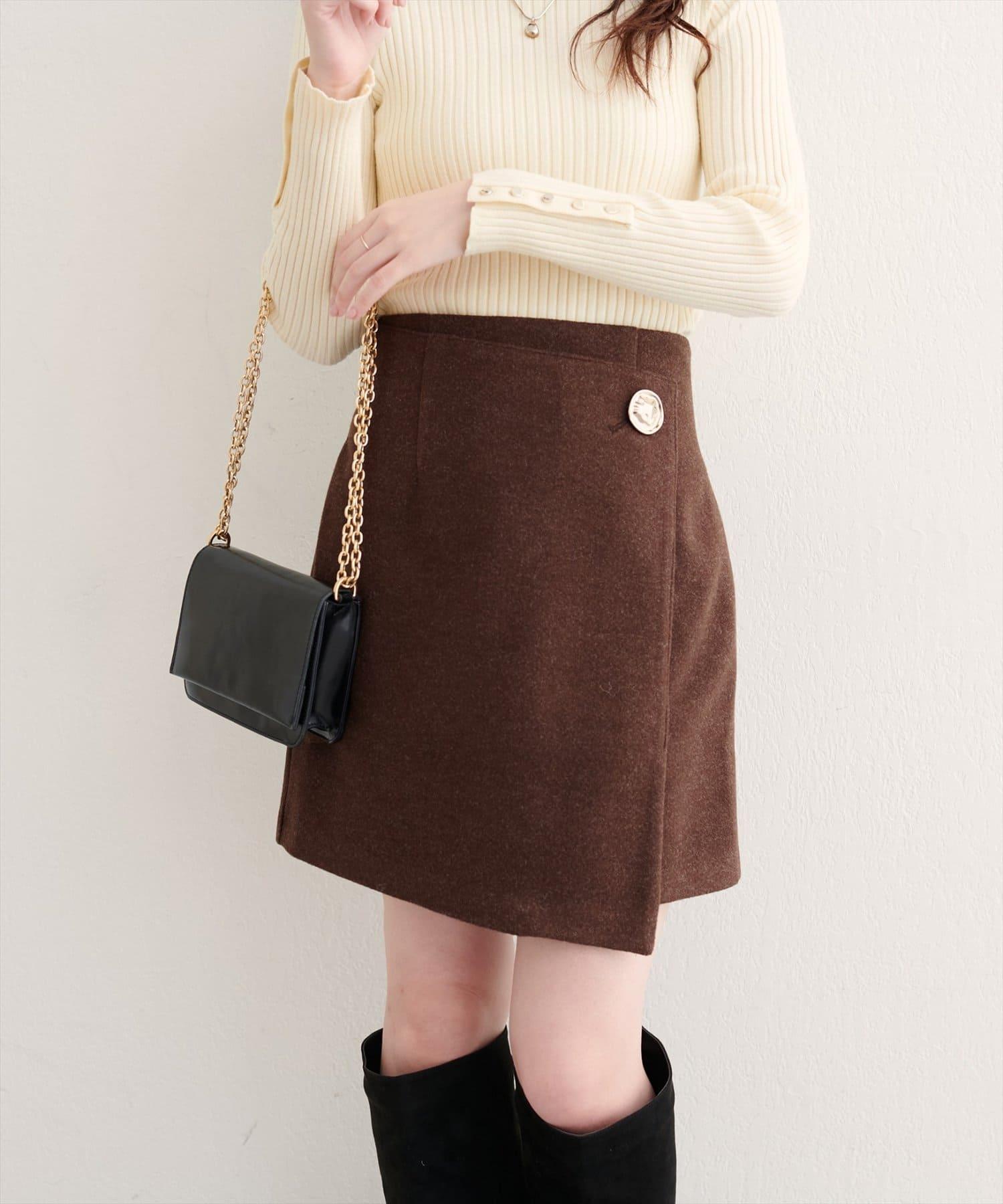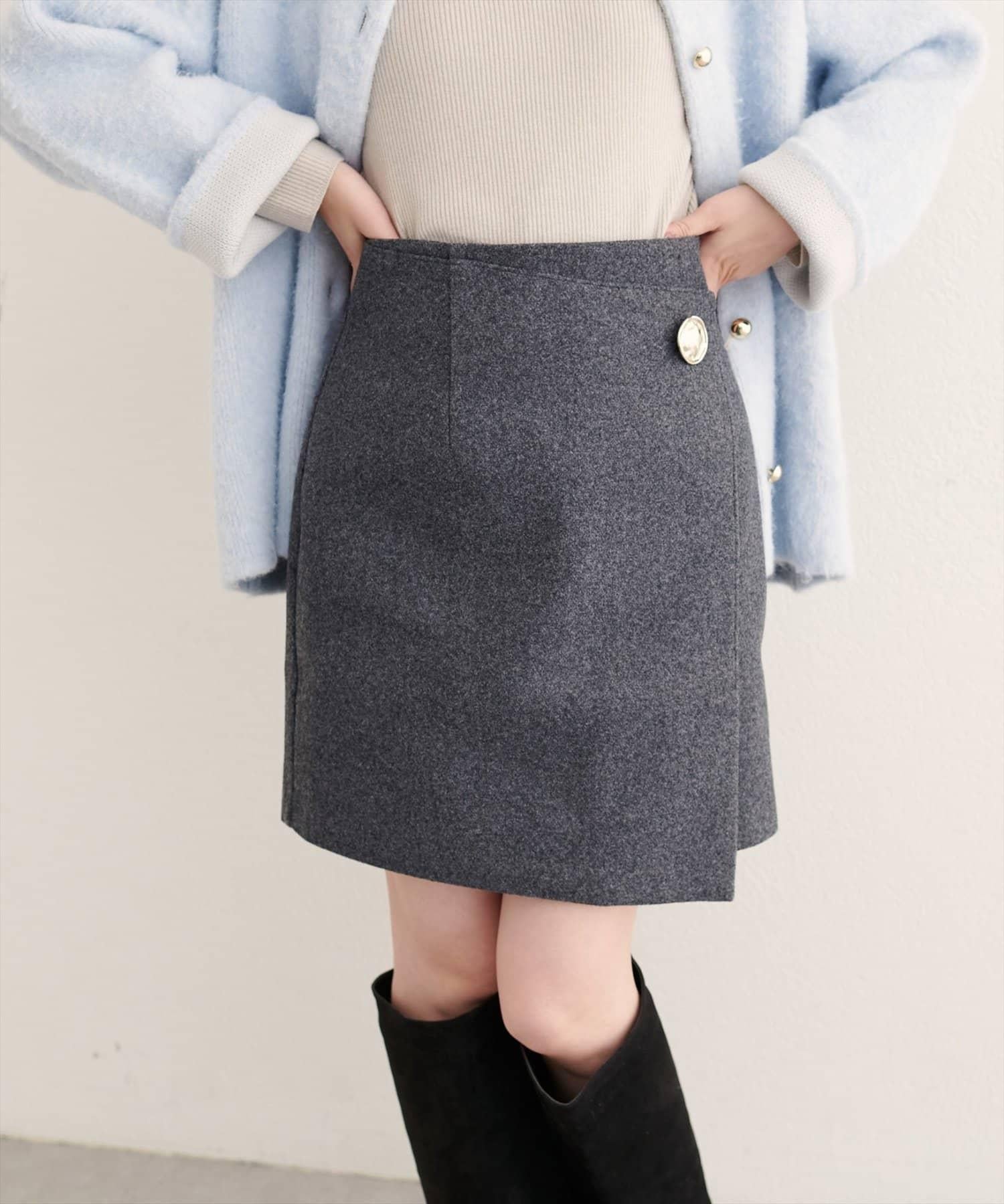 [WEB exclusive] Beko beko button wrap mini skirt