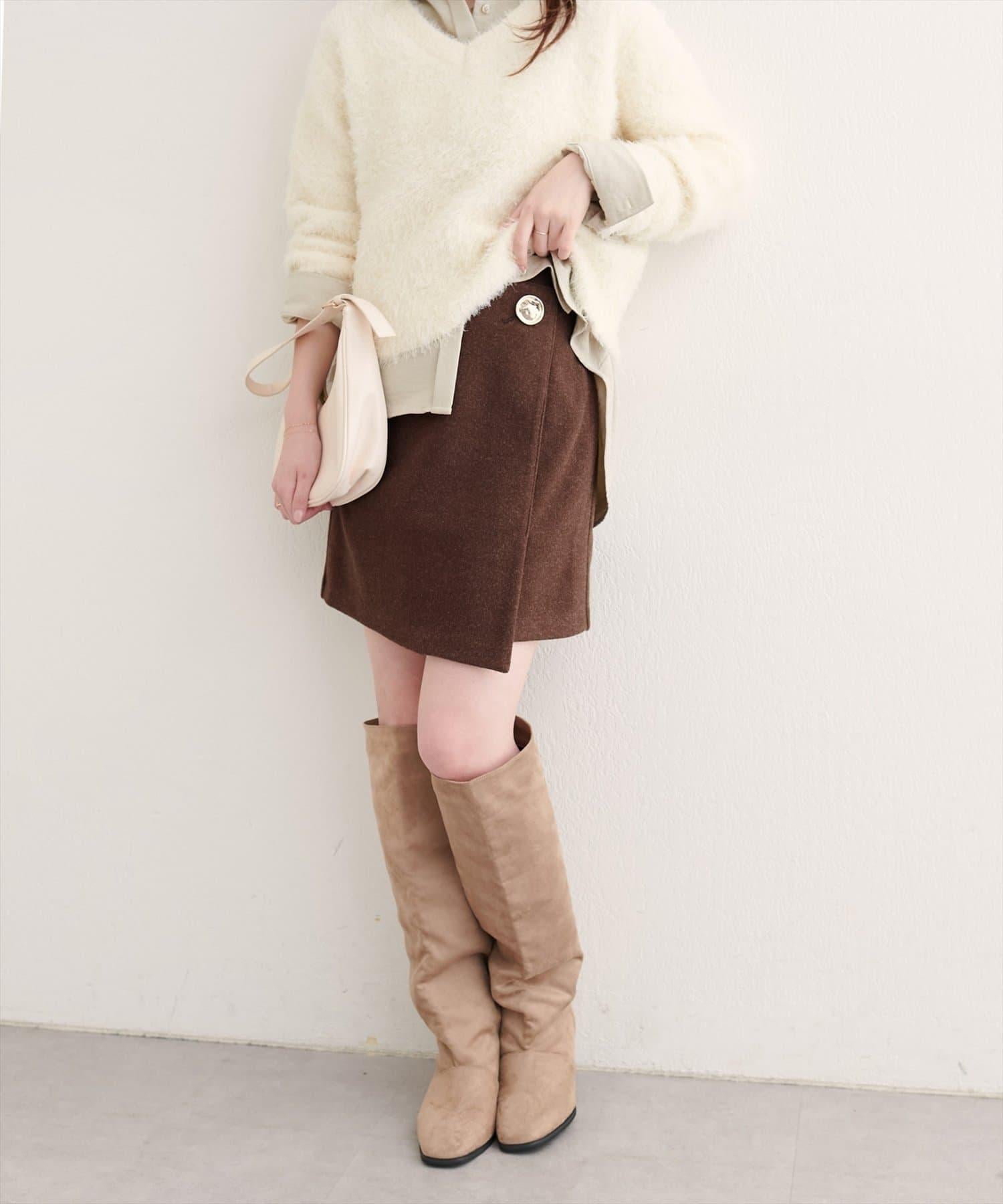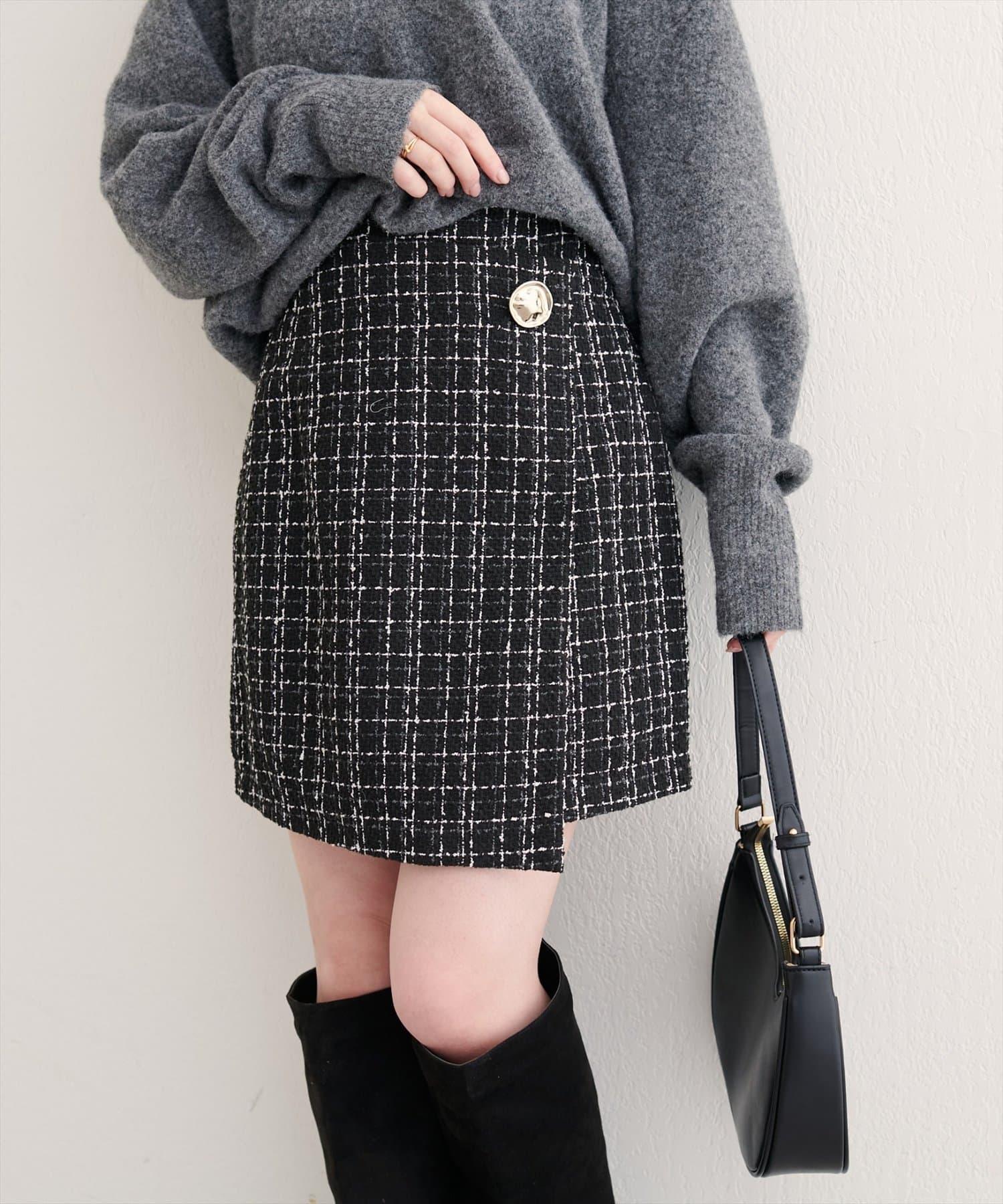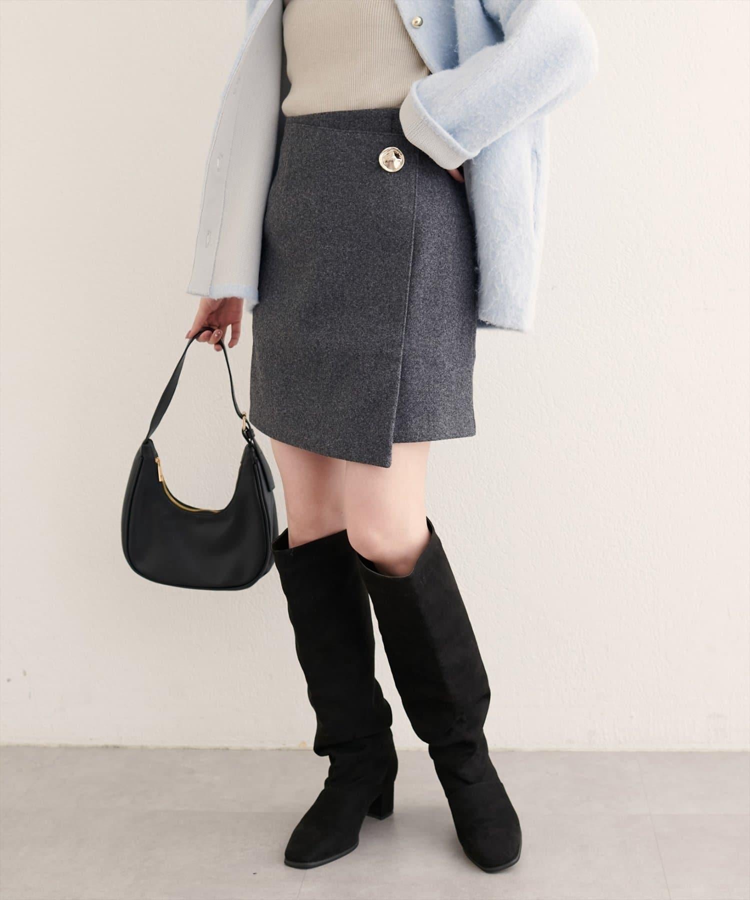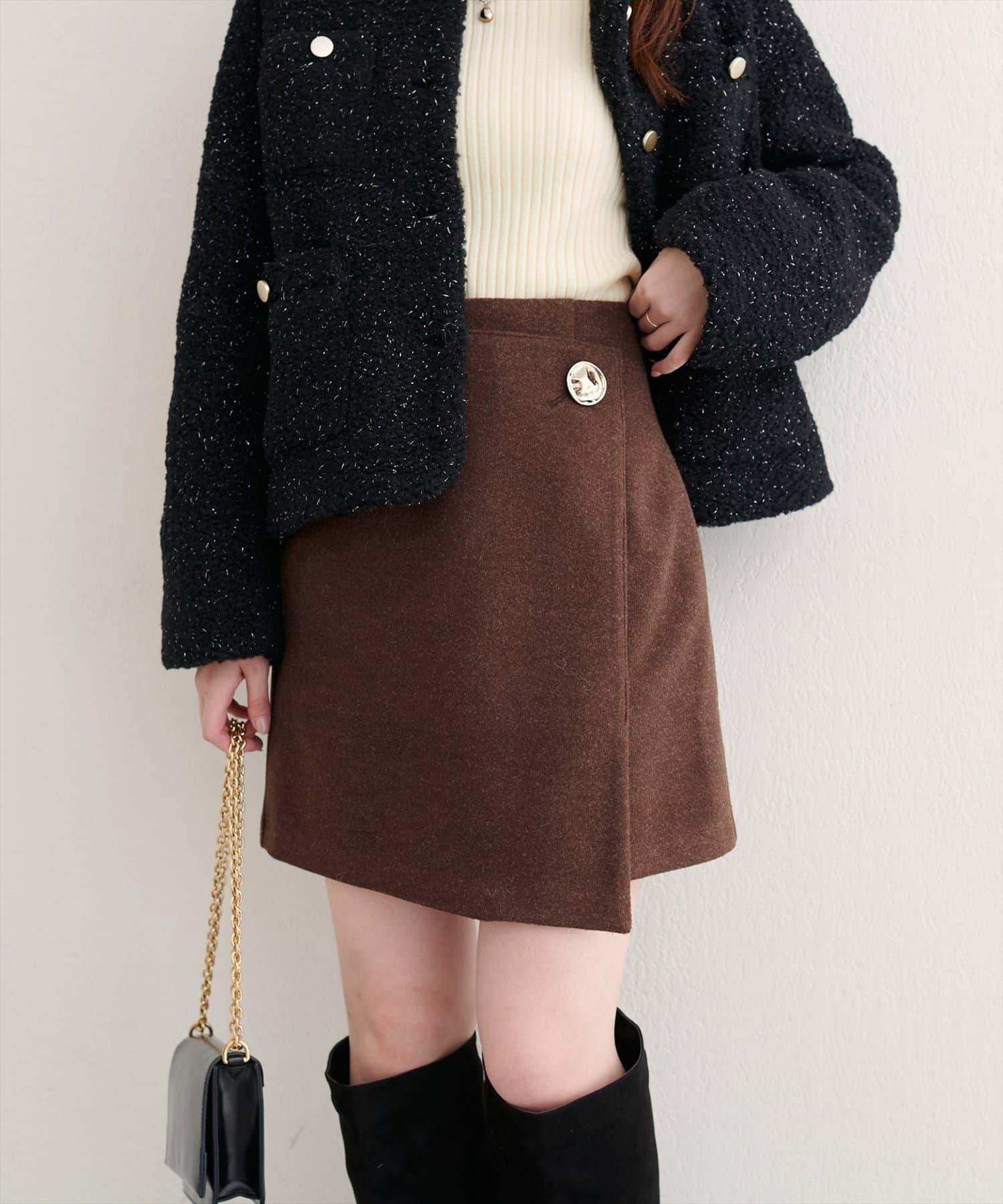 [WEB exclusive] Beko beko button wrap mini skirt