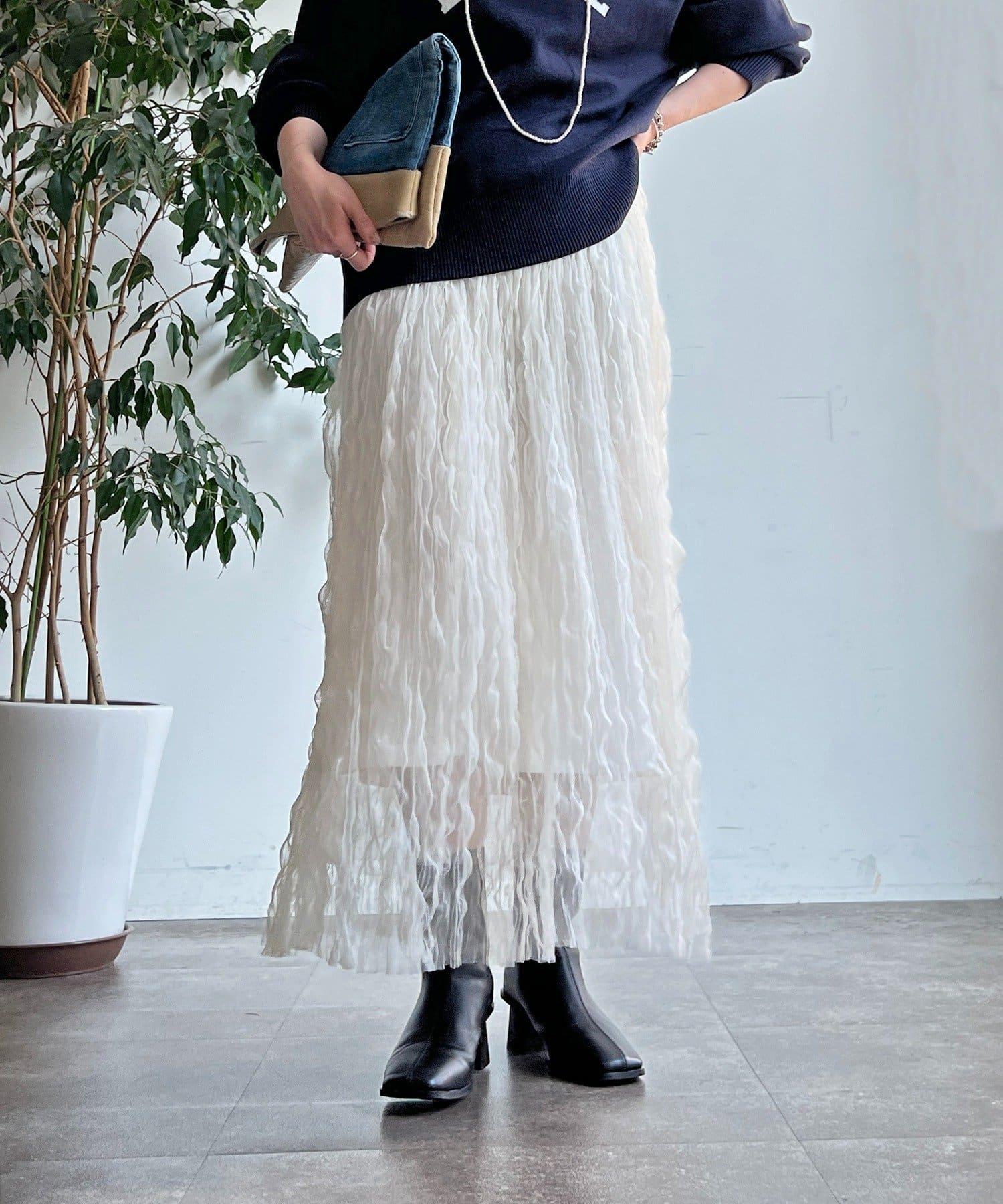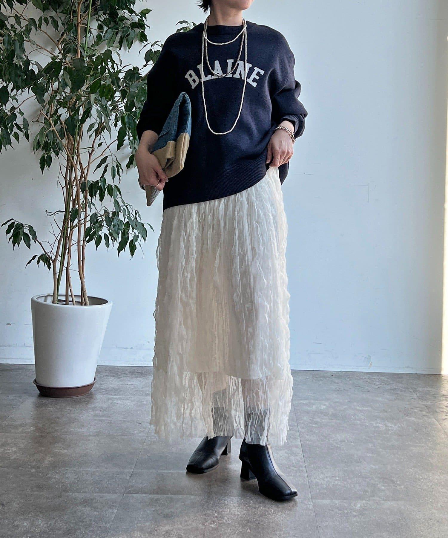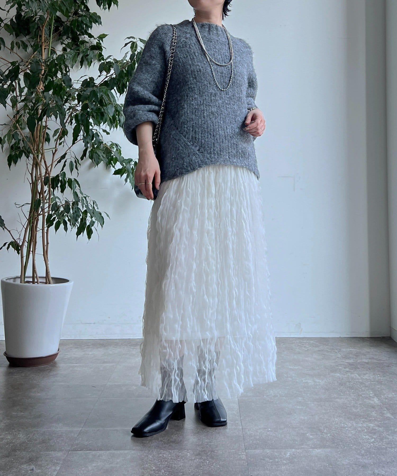 皺褶的質地營造出寬鬆、成熟的感覺。--適合搭配冬季針織衫,初春時節可搭配襯衫和 T 恤。