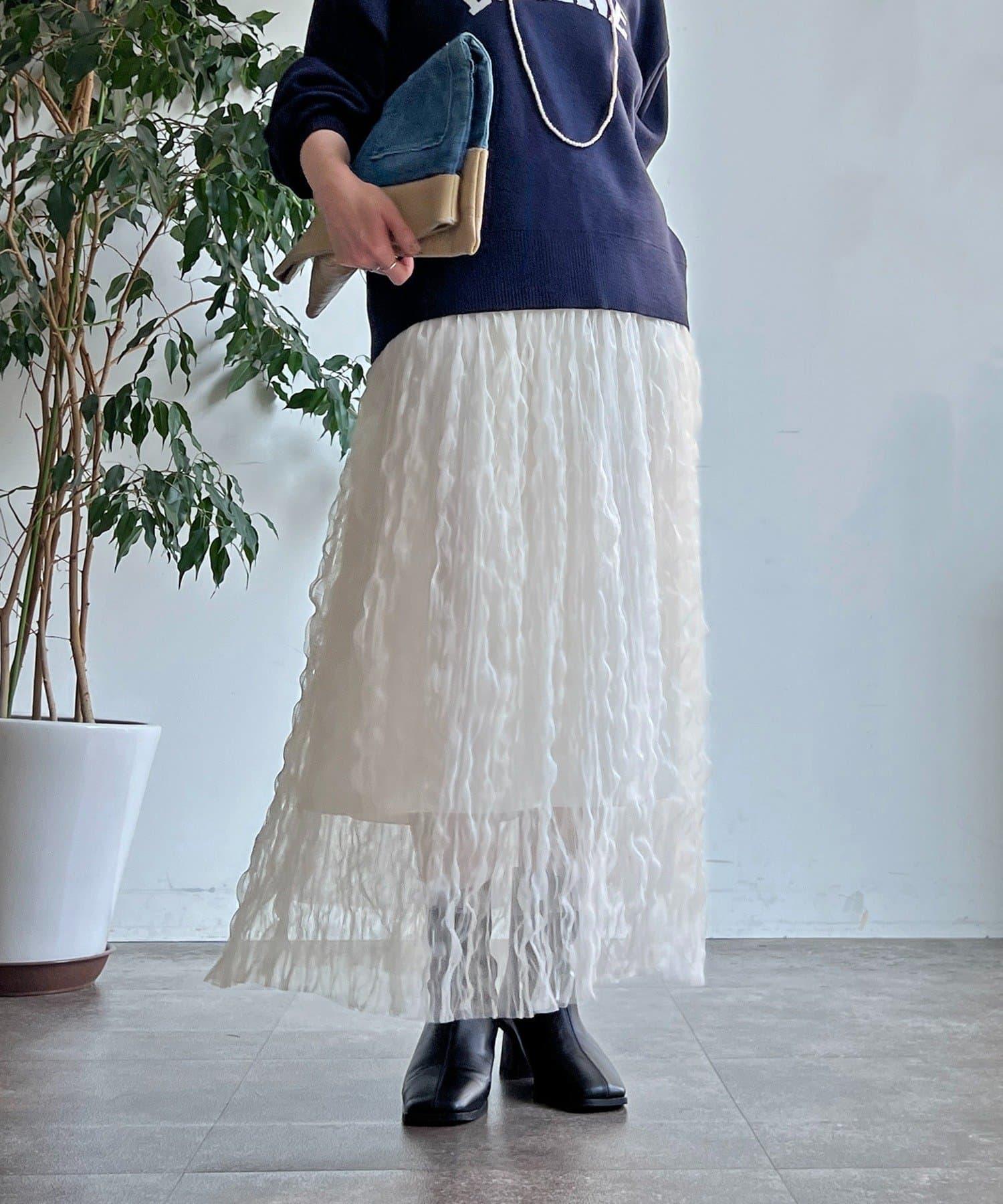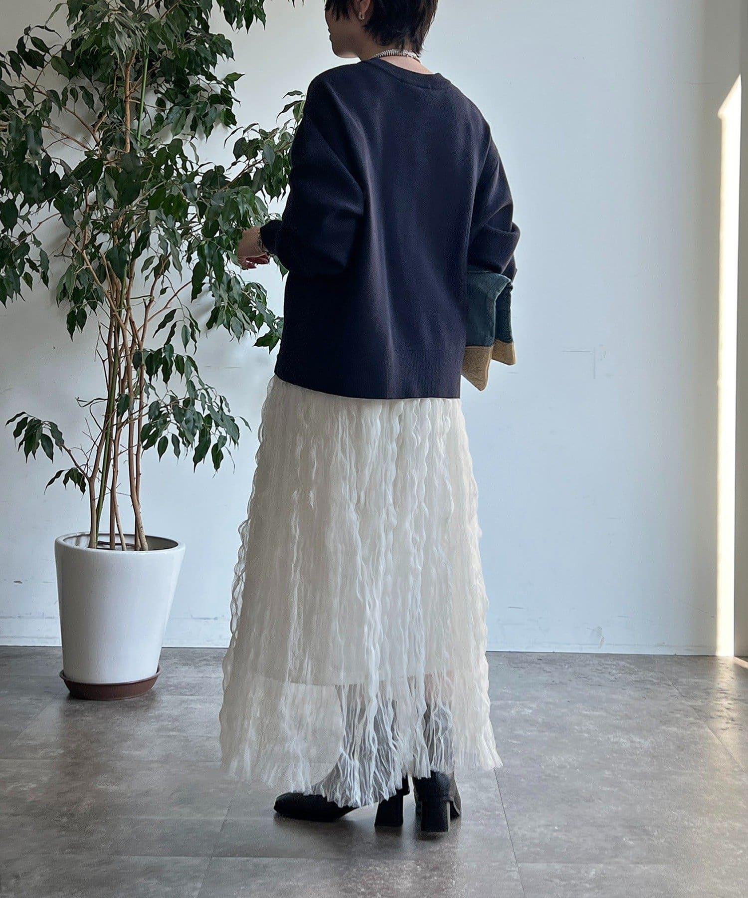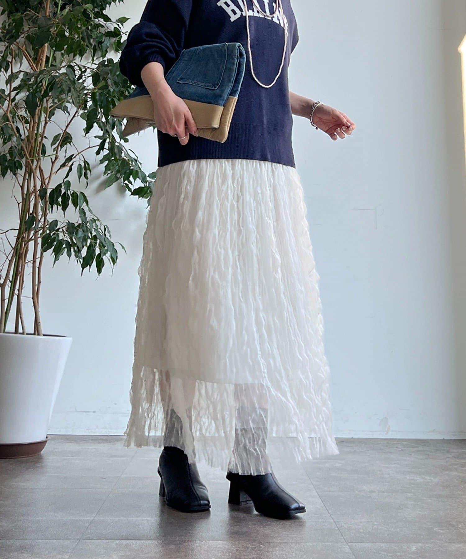 皺褶的質地營造出寬鬆、成熟的感覺。--適合搭配冬季針織衫,初春時節可搭配襯衫和 T 恤。