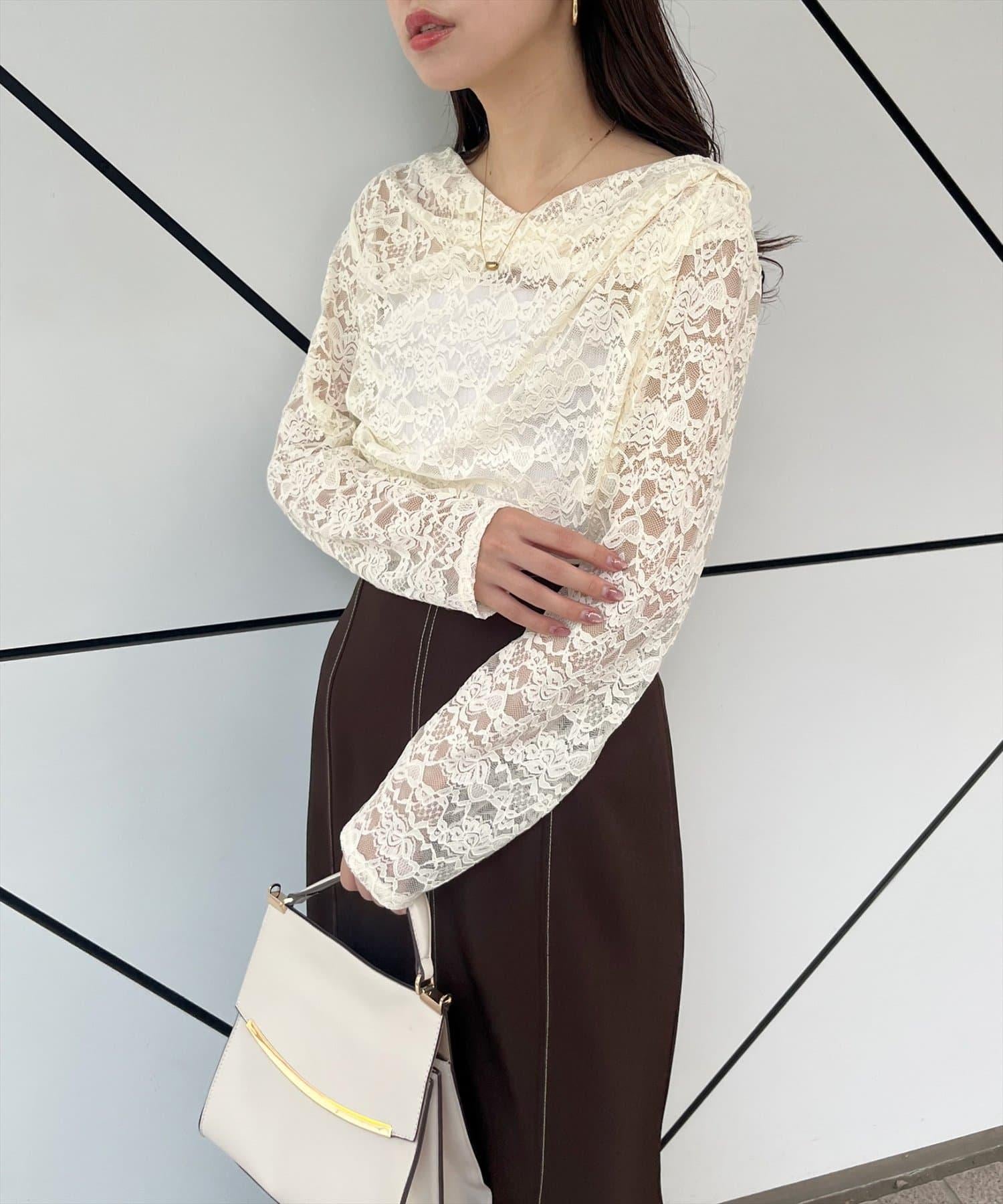 這款套頭衫具有柔軟輕盈的垂墜感,並以精緻的蕾絲作為奢華裝飾。