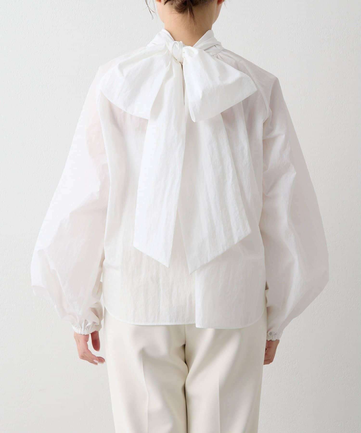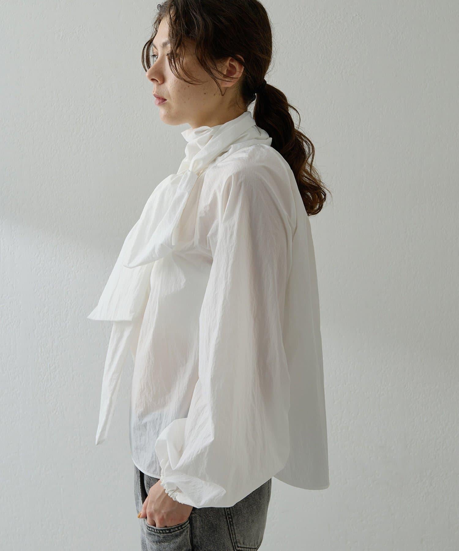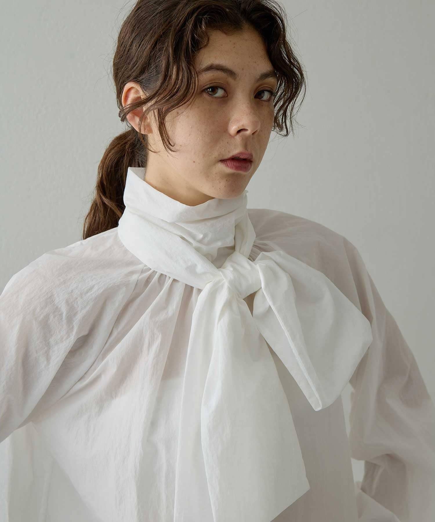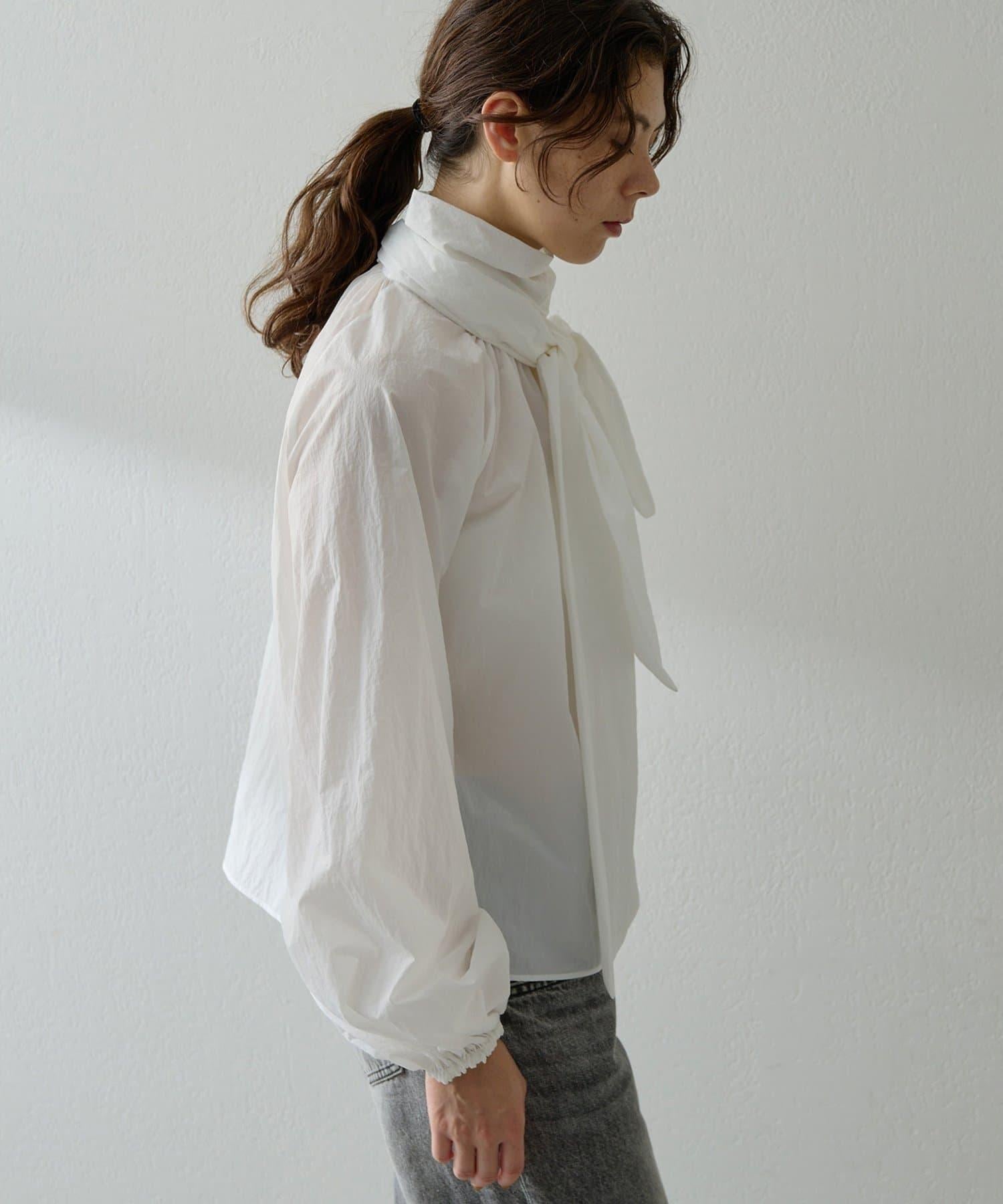 富有表現力的蝴蝶結襯衫由輕質的 100%尼龍製成,具有皺褶紋理。