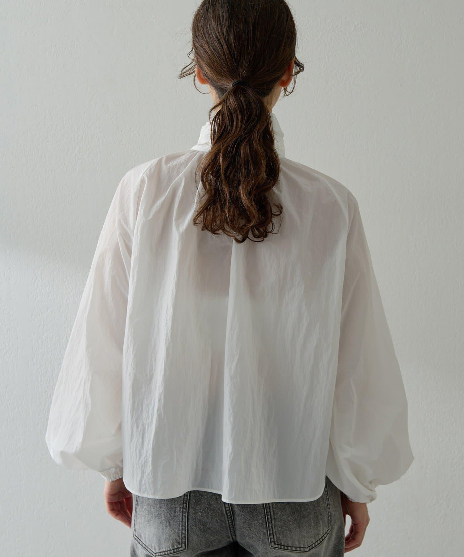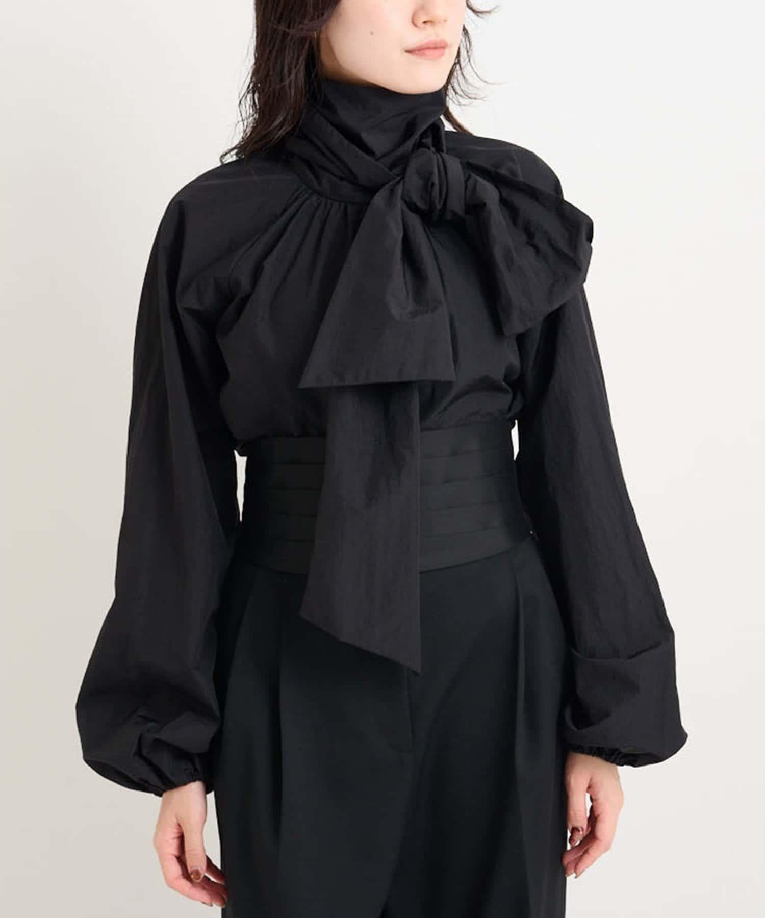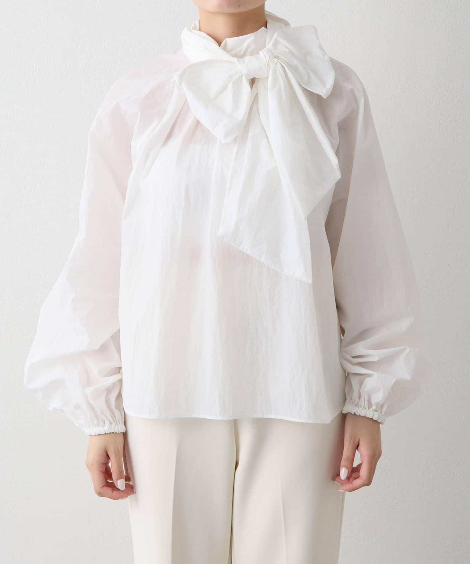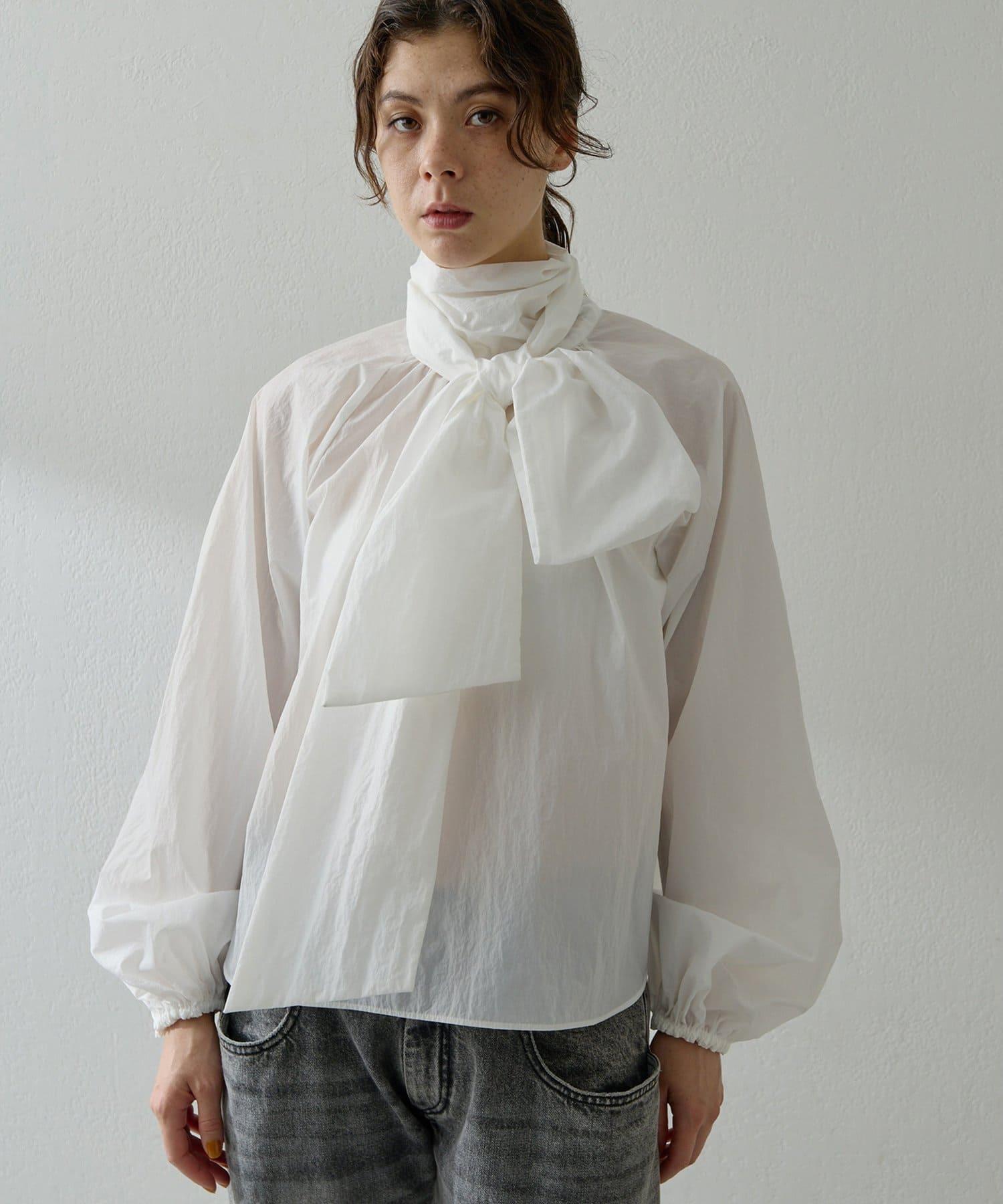 富有表現力的蝴蝶結襯衫由輕質的 100%尼龍製成,具有皺褶紋理。
