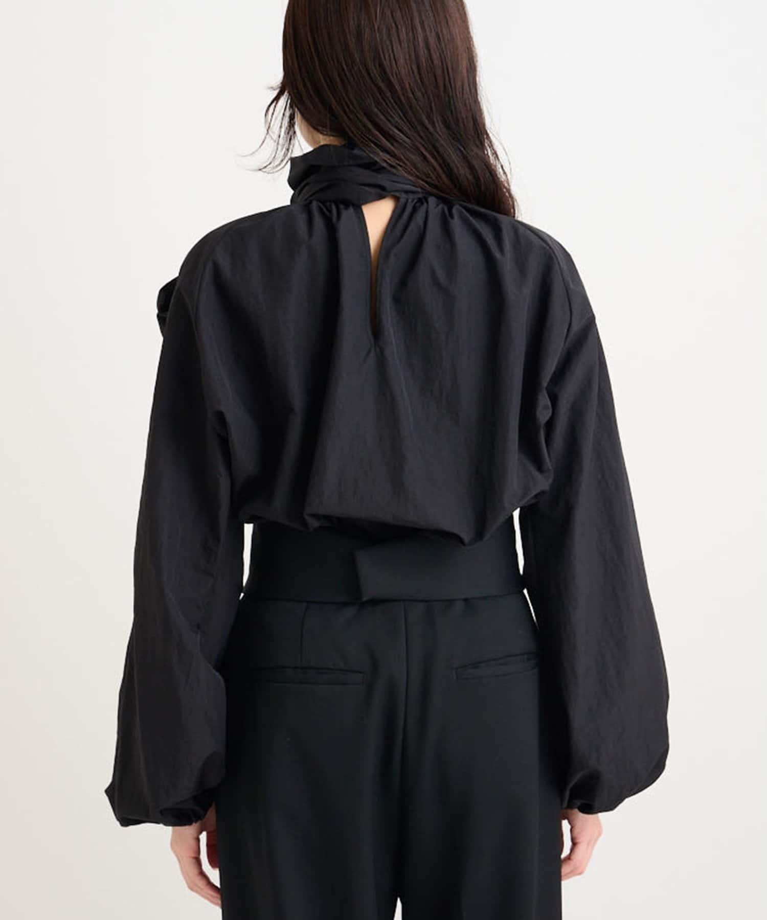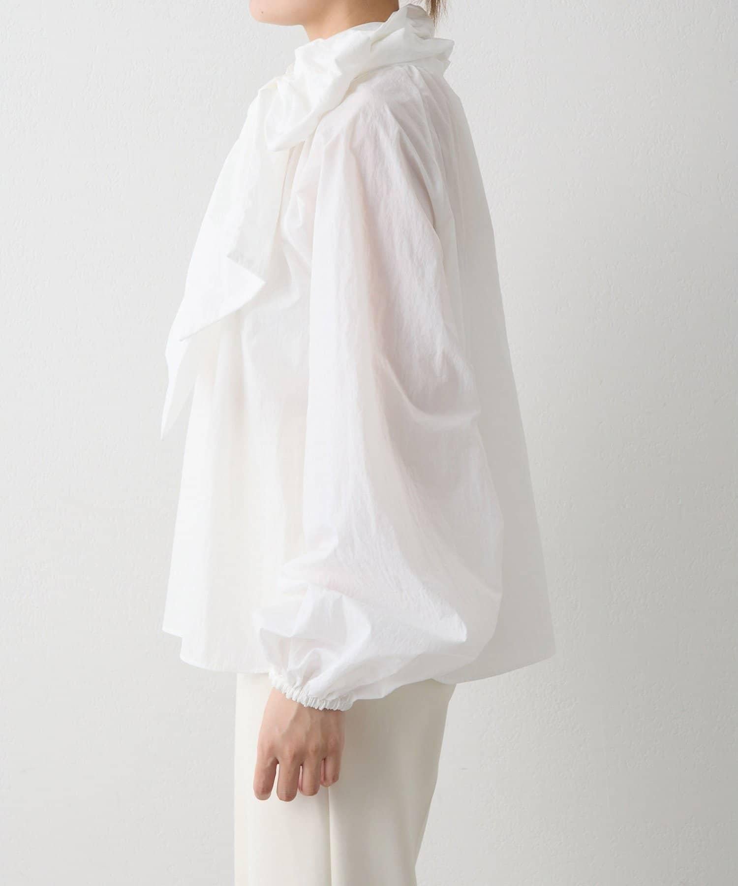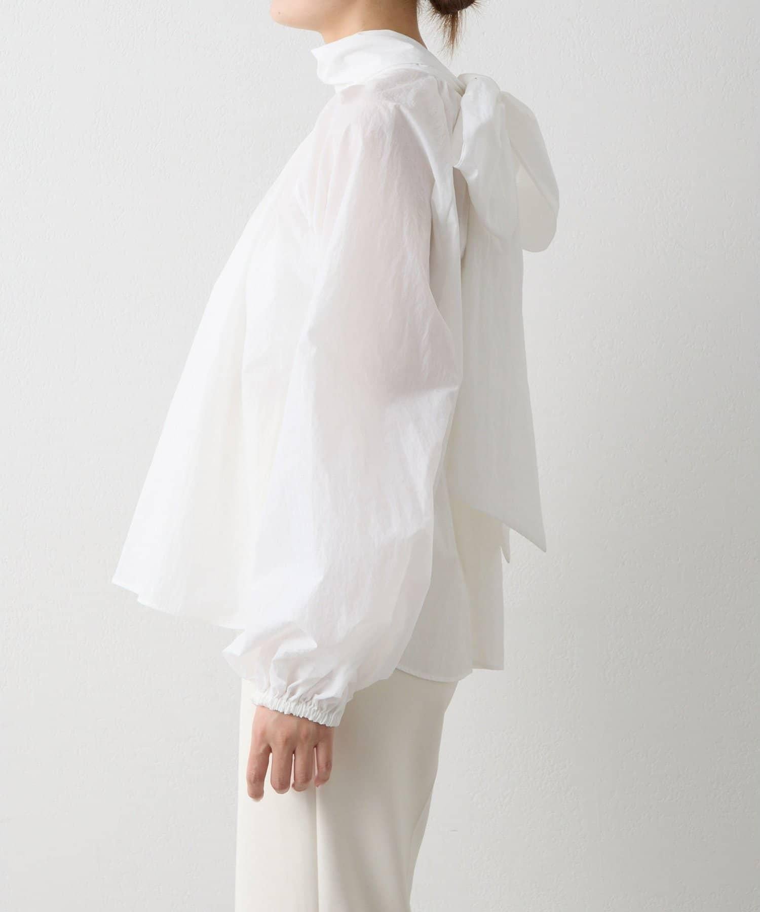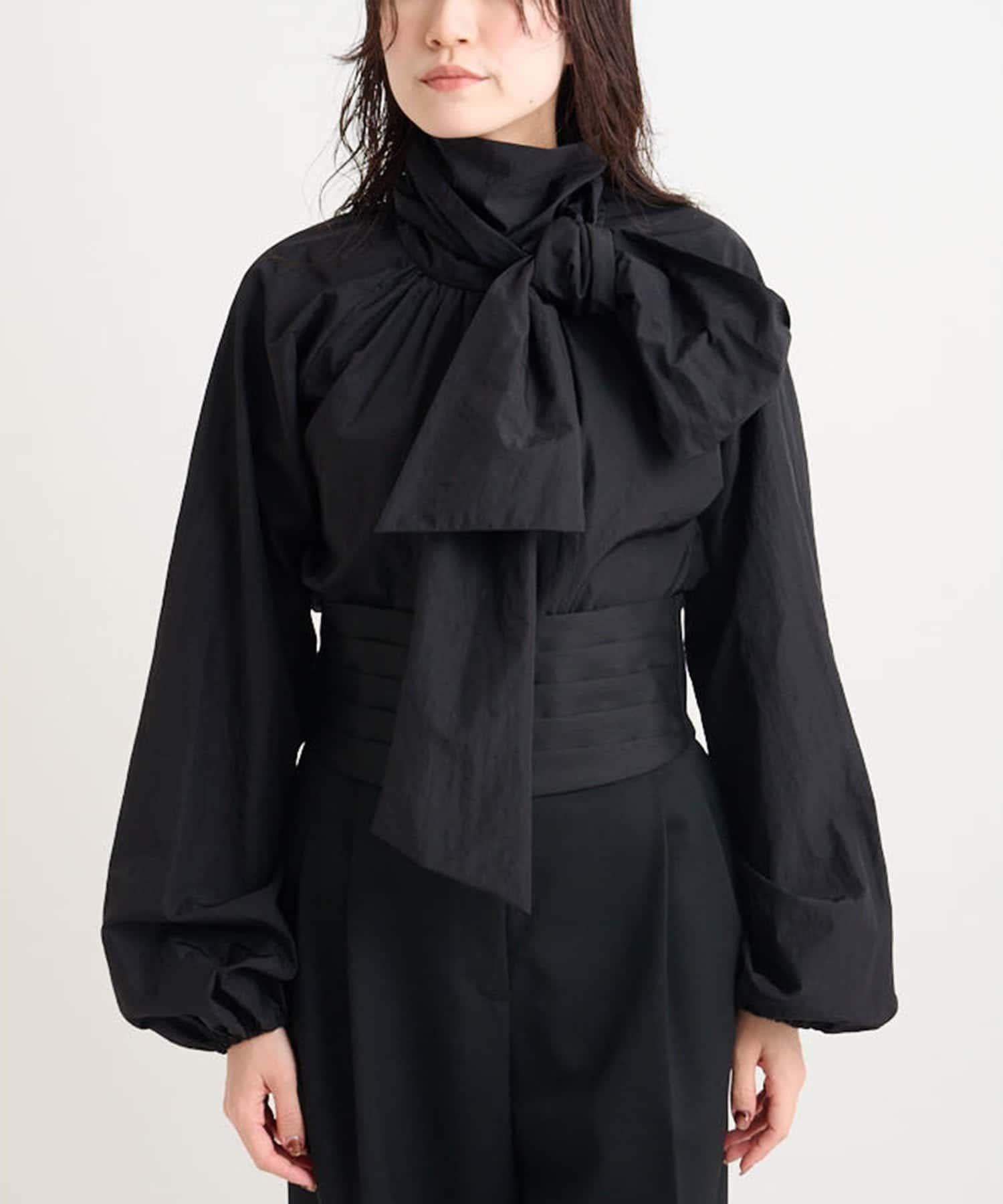 富有表現力的蝴蝶結襯衫由輕質的 100%尼龍製成,具有皺褶紋理。