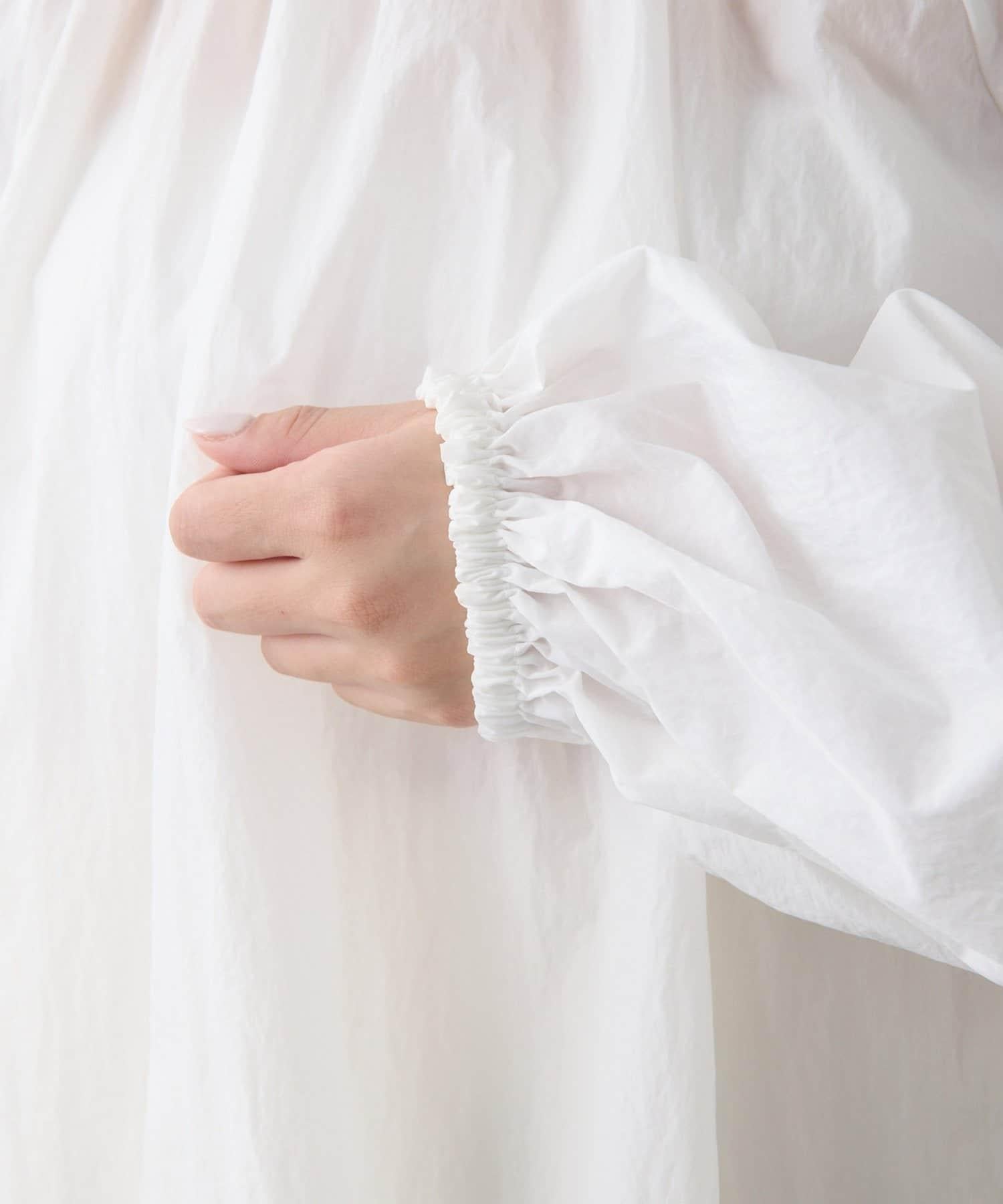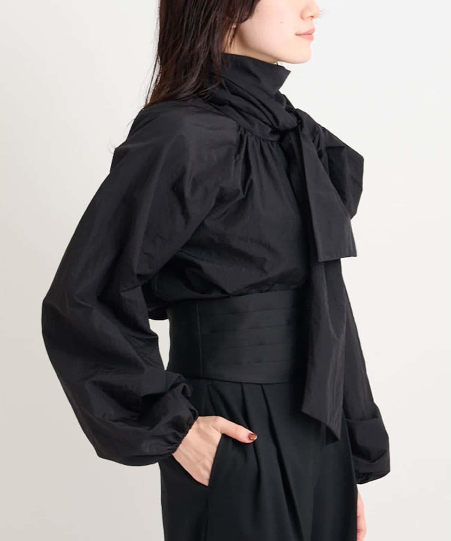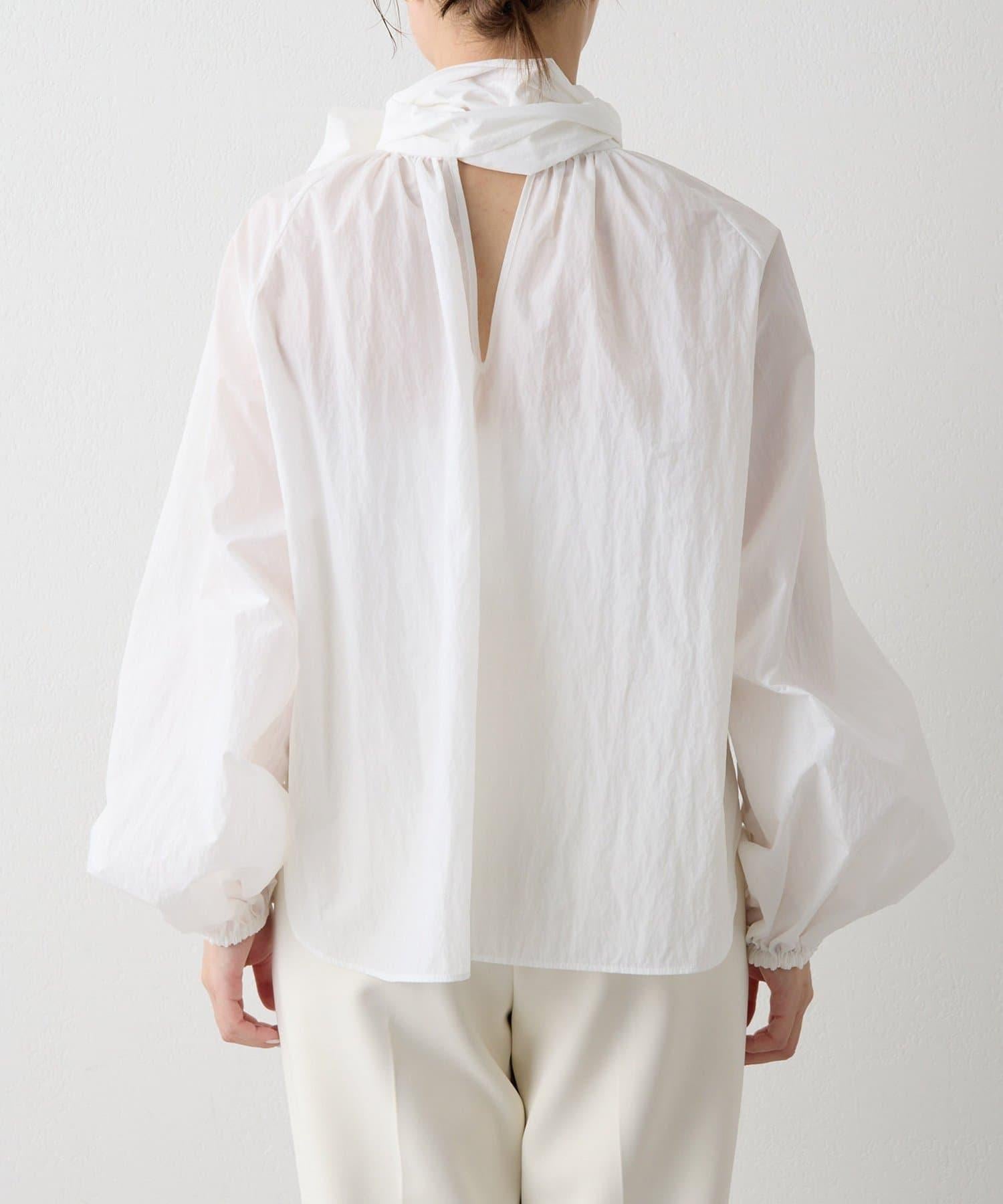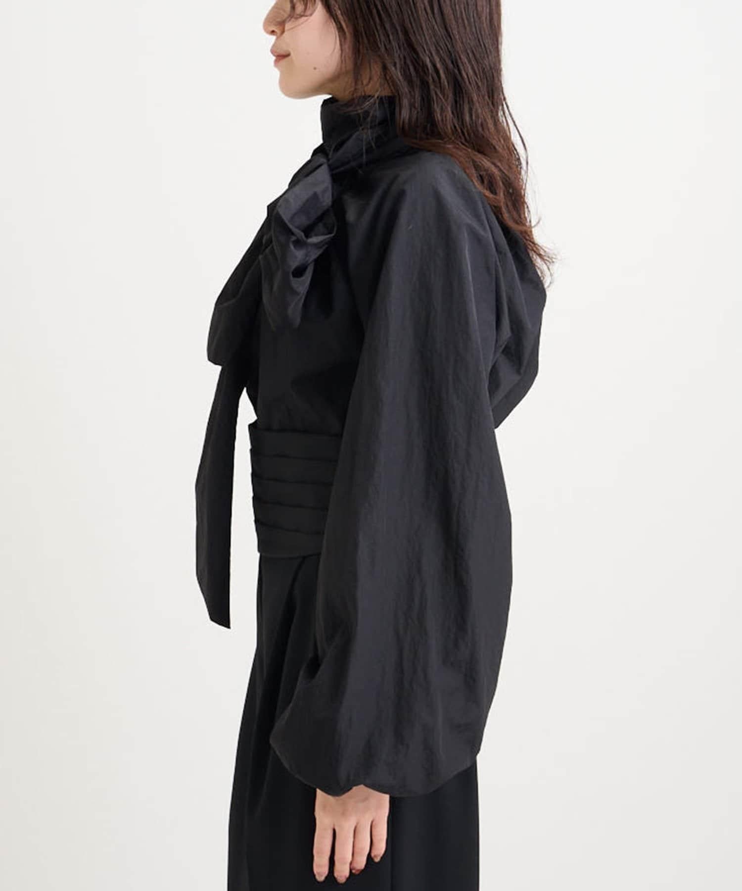 富有表現力的蝴蝶結襯衫由輕質的 100%尼龍製成,具有皺褶紋理。
