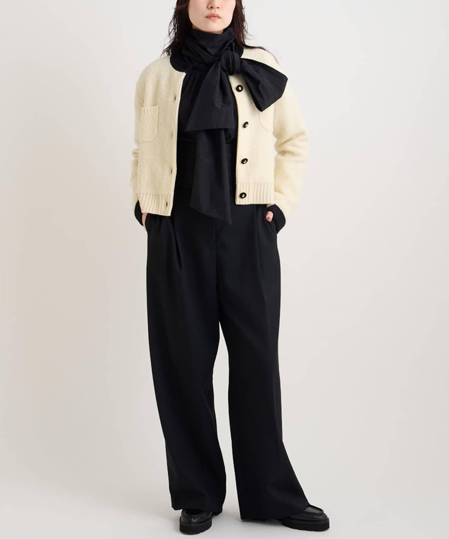 這是一款華麗的雙面上衣,配以大方的蝴蝶結領帶。