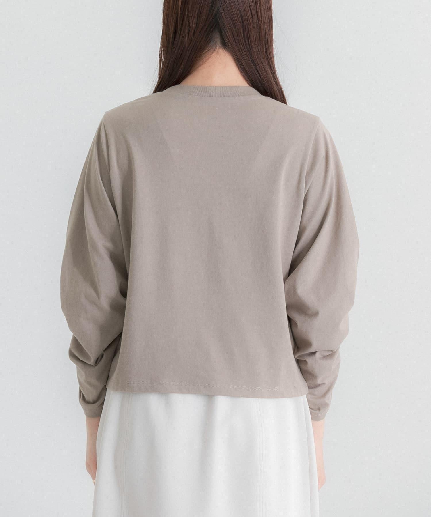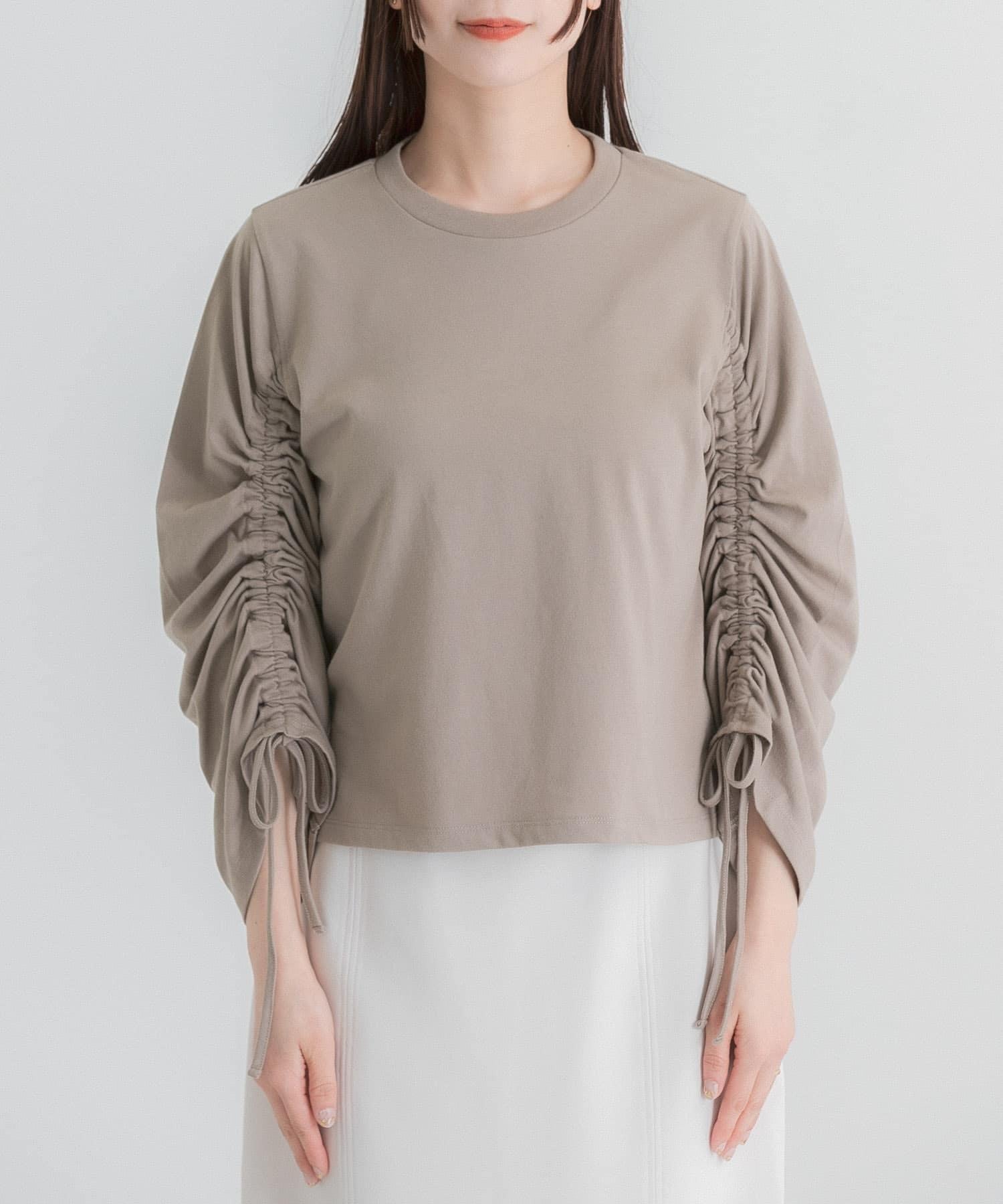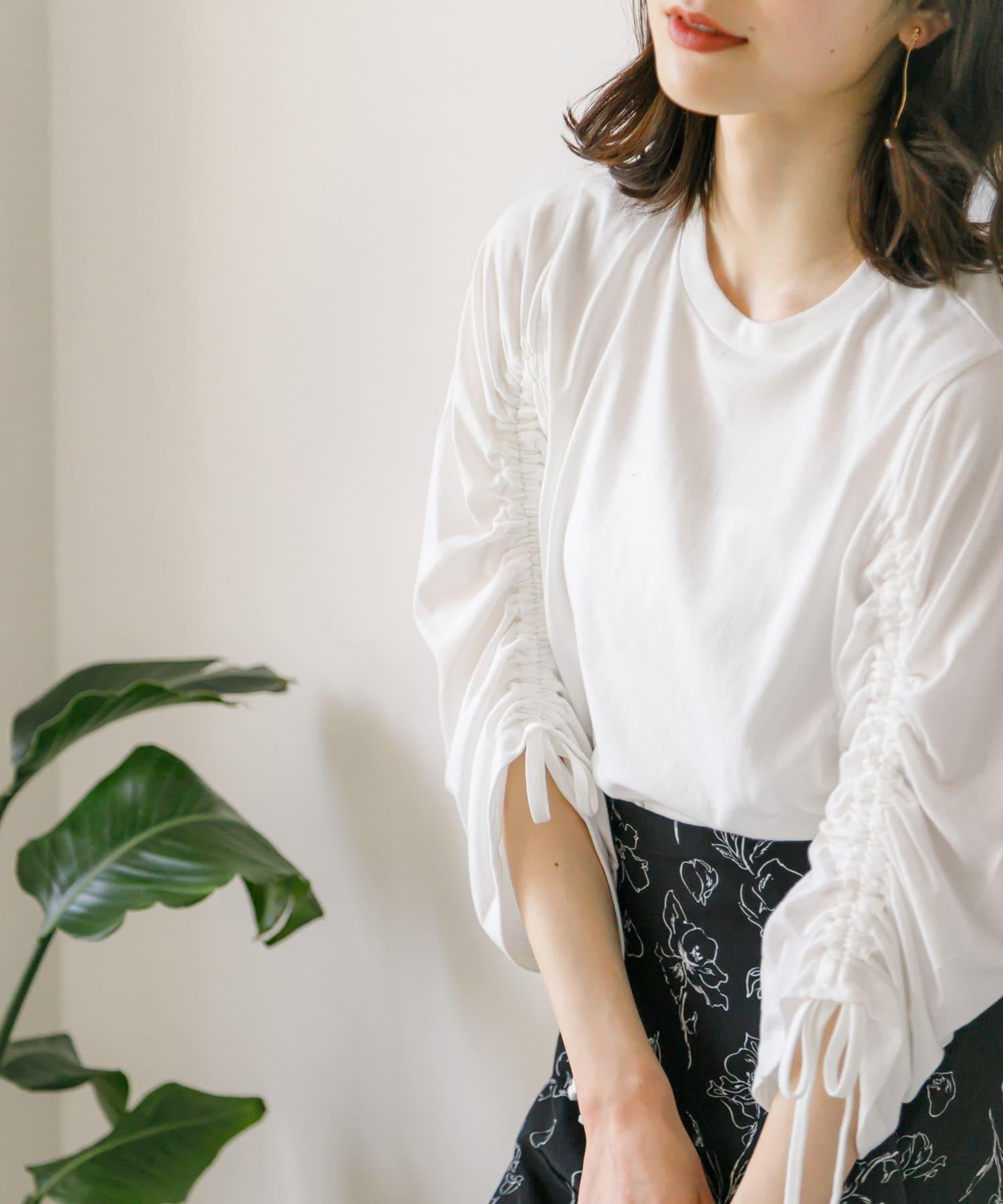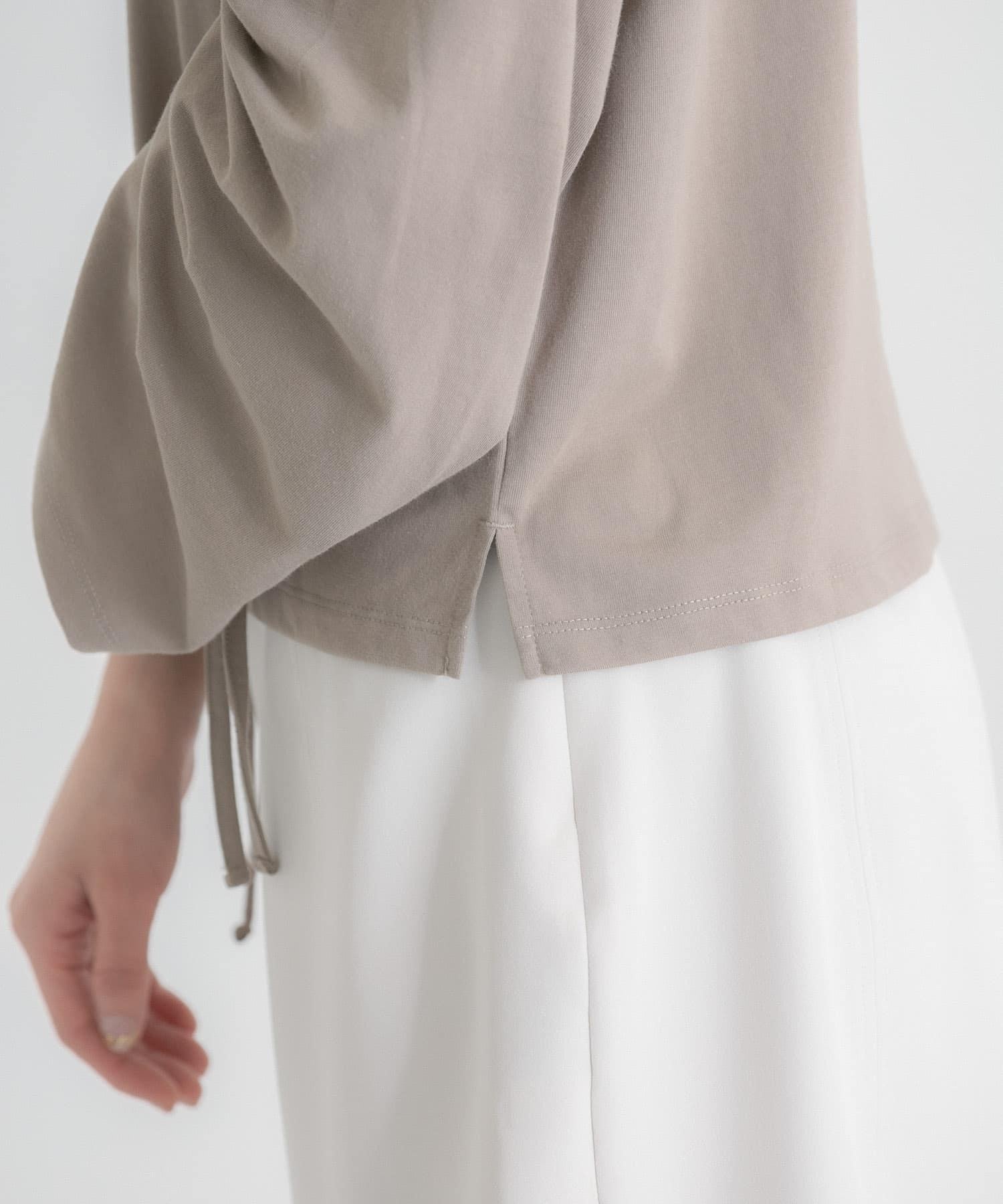 本款上衣通過將袖子拉攏,變為攏袖。這款單品本身就很好看,建議搭配乾淨的下裝。如果您想增加另一種搭配技巧,也建議您與外套疊穿。