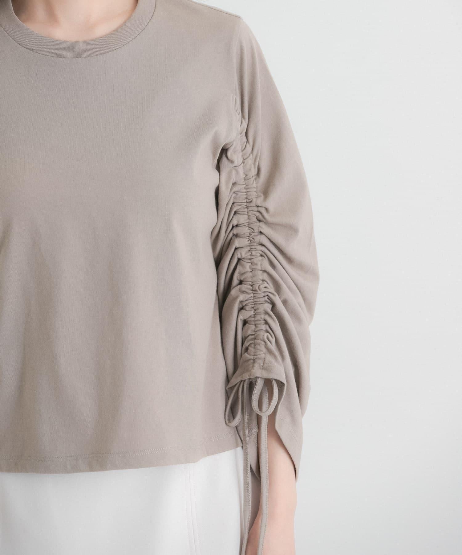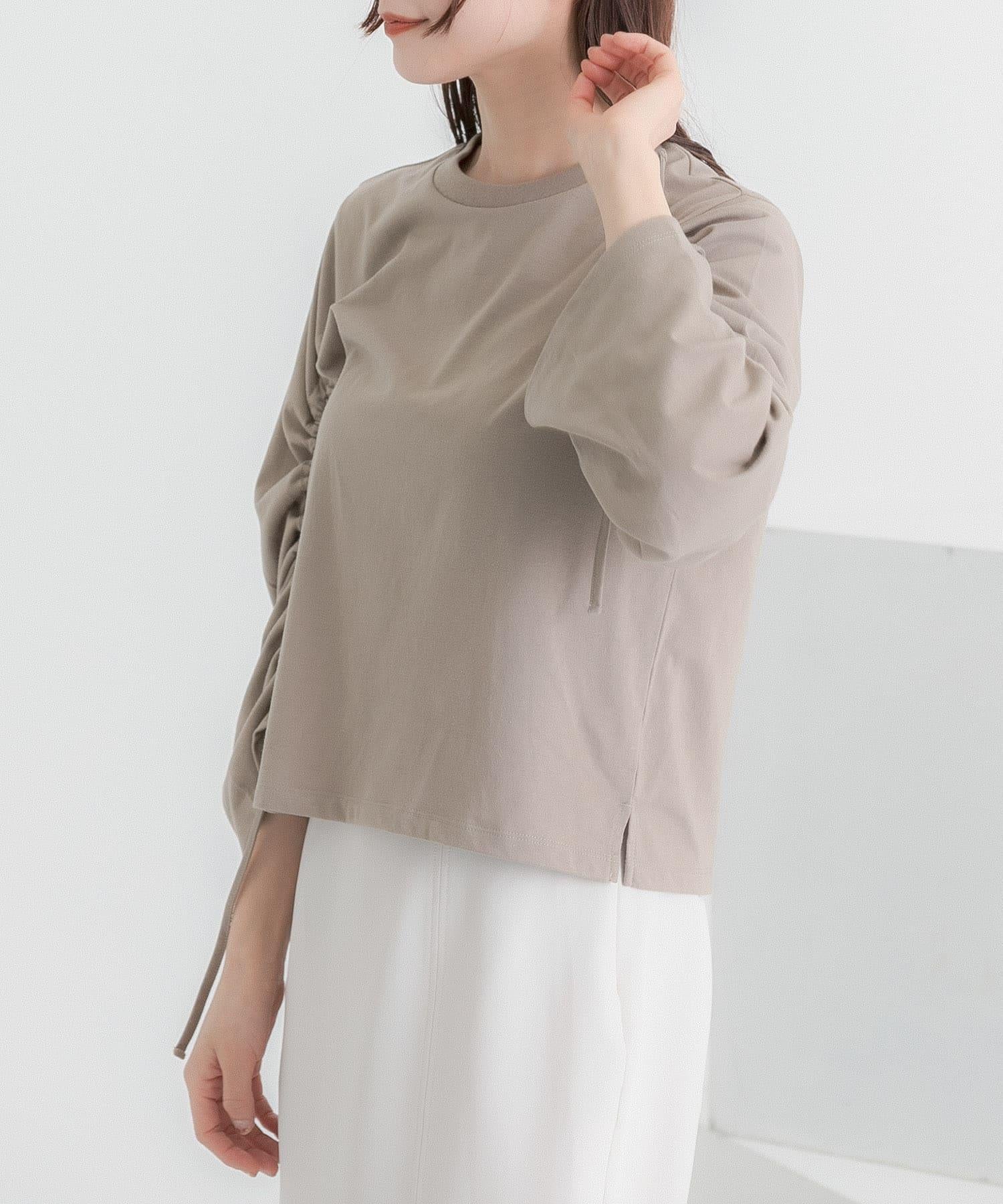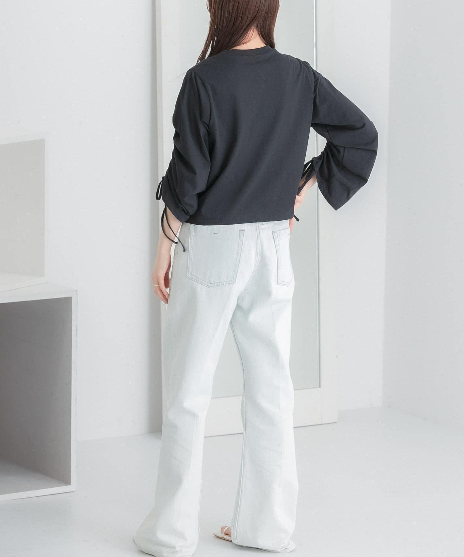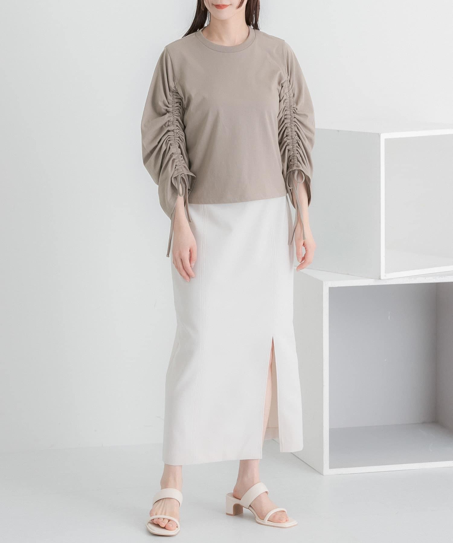 本款上衣通過將袖子拉攏,變為攏袖。這款單品本身就很好看,建議搭配乾淨的下裝。如果您想增加另一種搭配技巧,也建議您與外套疊穿。