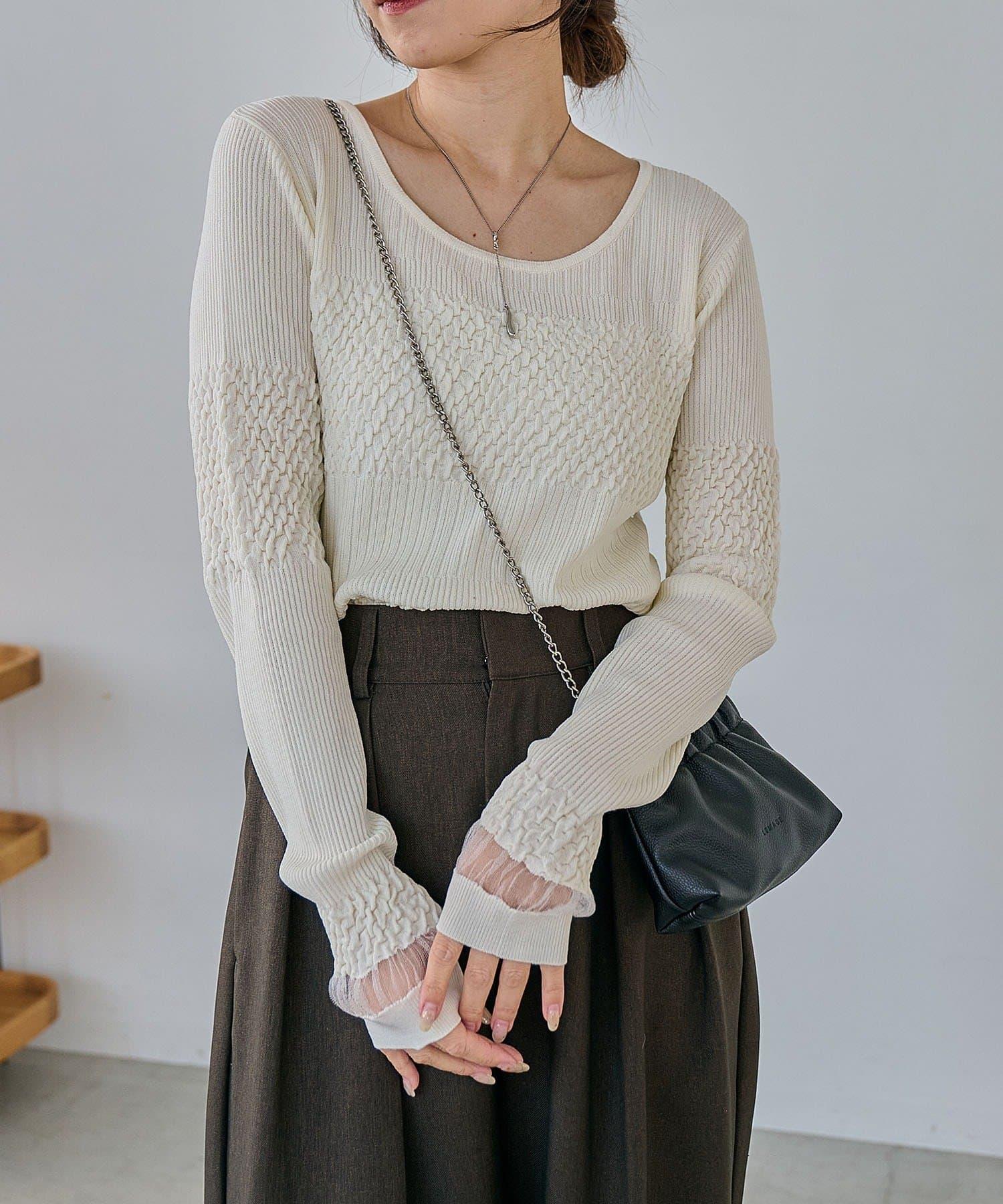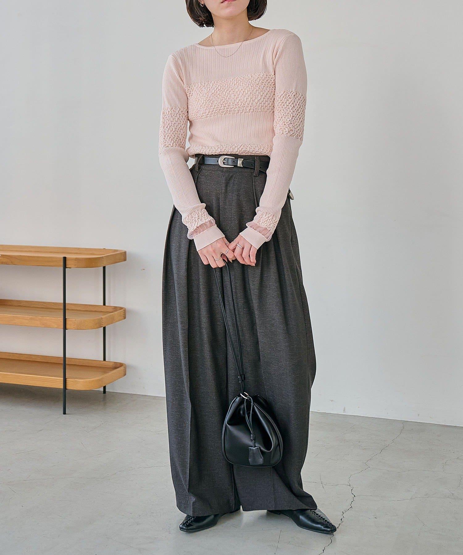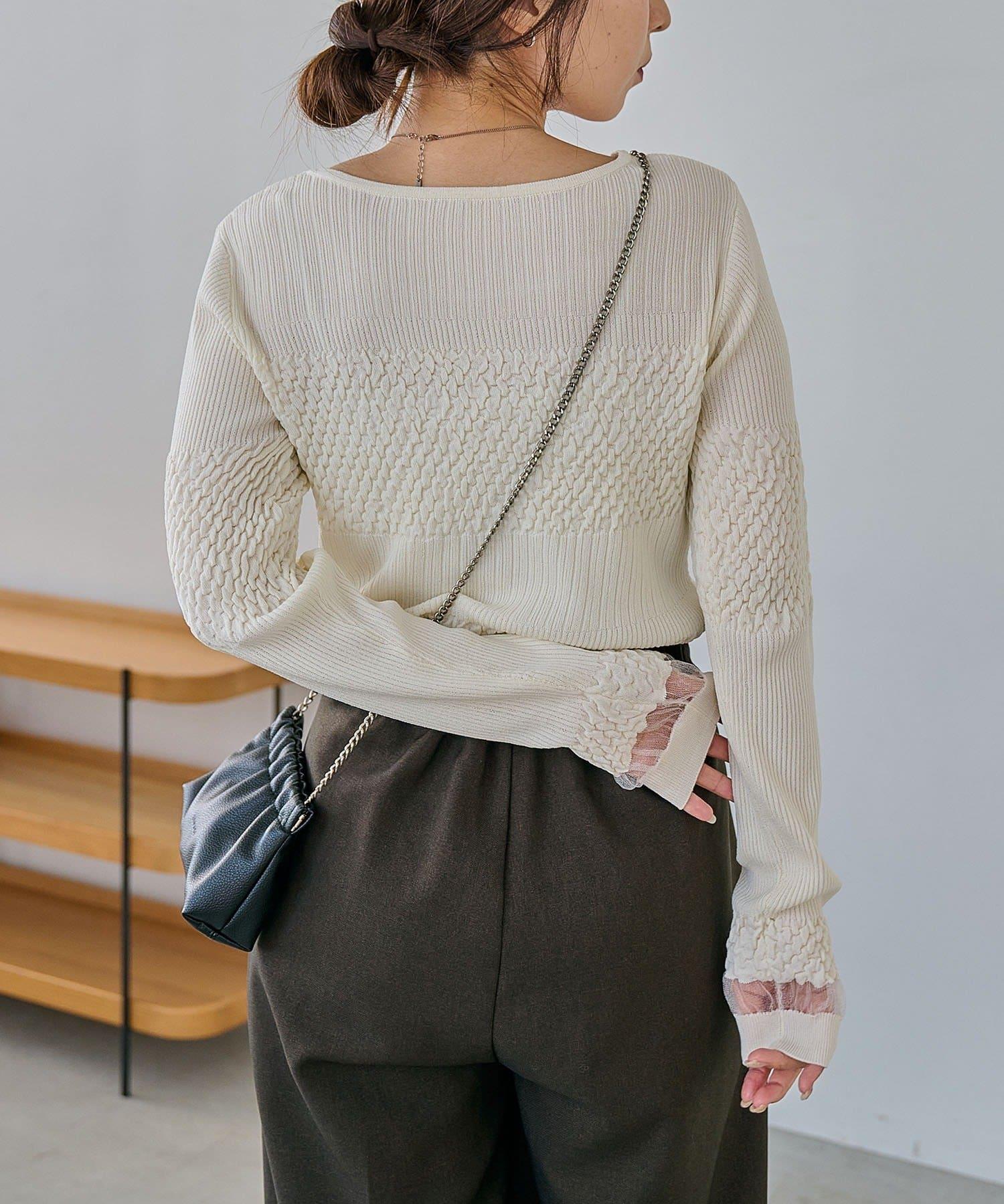針織衫上有不同層次的毛邊和肋條,增添了俏皮感。