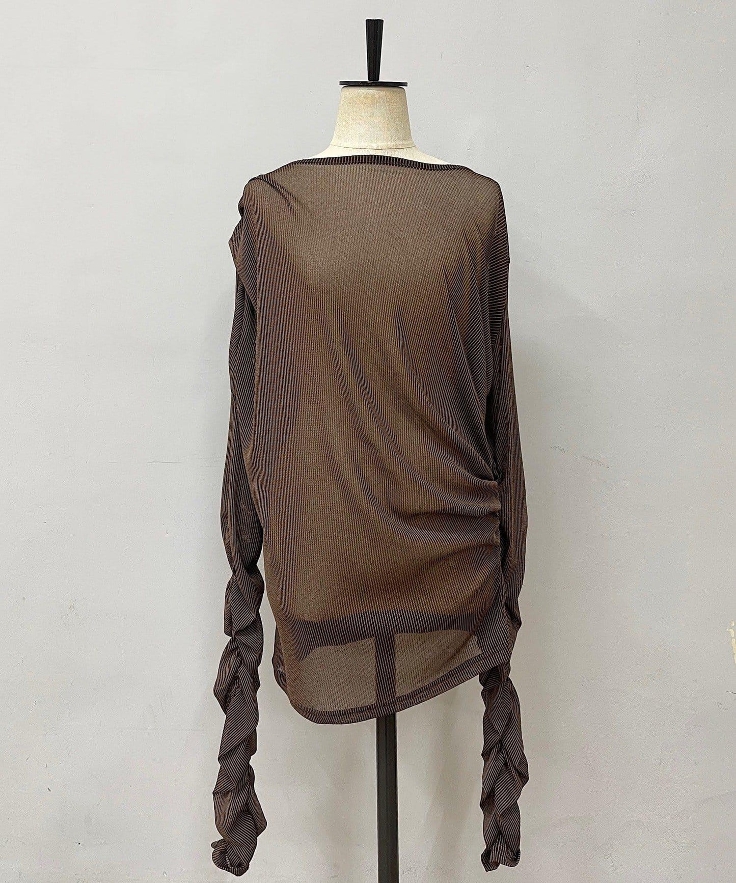 這款透視內衣具有良好的透視效果和搖粒設計,可以疊穿在針織衫或夾克上。衣身和袖口採用褶皺設計,即使單穿也能給人帶來動感。Cache-coeur 設計,前幅為圓領,後幅為深 V 領。兩側均可穿著。