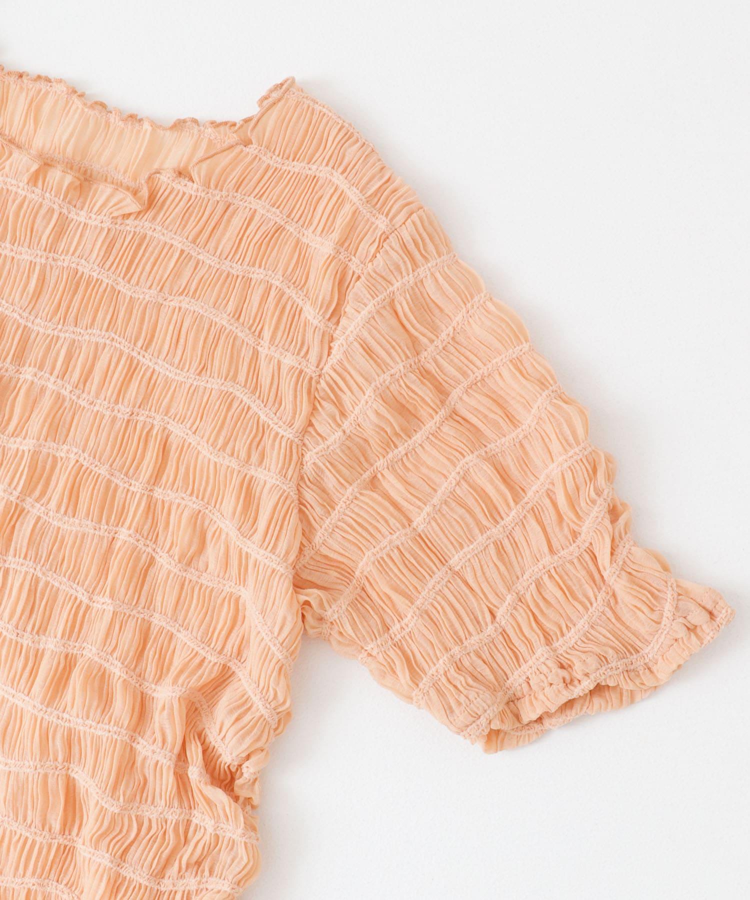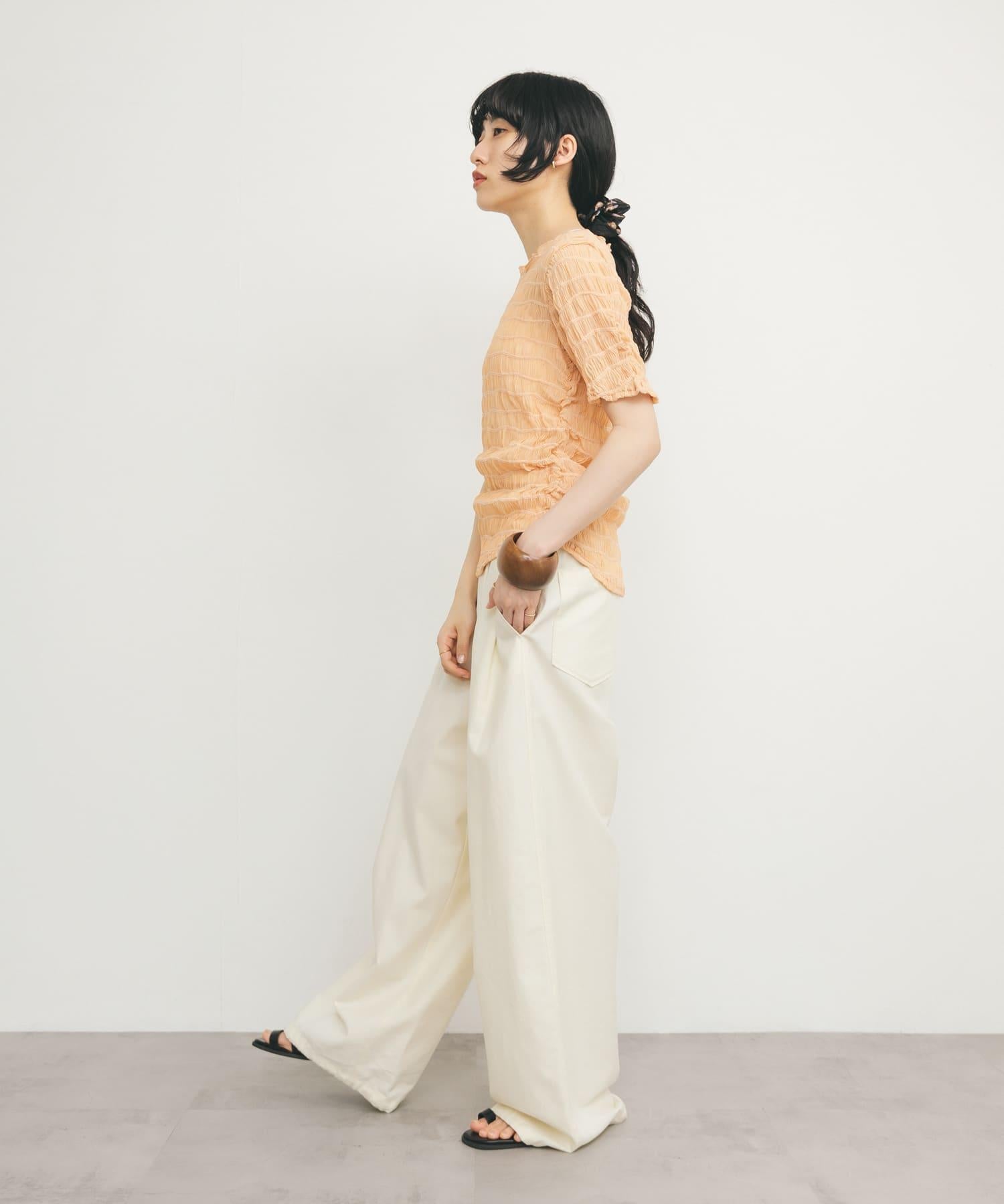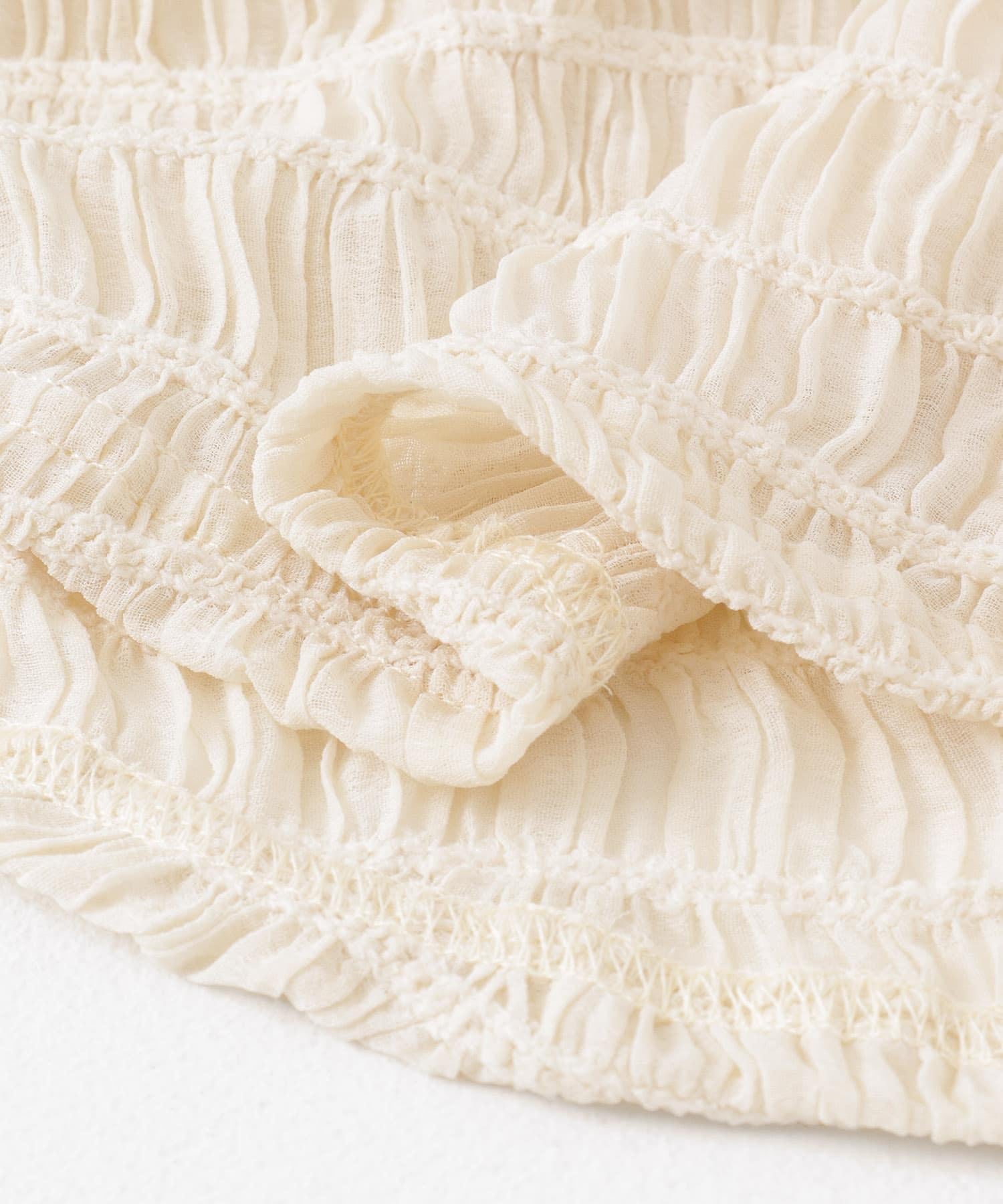 這款華麗的上衣採用透視面料,帶有波浪狀的褶皺圖案。小巧的尺碼使其不僅適合作為主衣,也適合作為內搭。袖子和兩側也有波浪紋,因此只需將其添加到基本搭配中,就會非常漂亮。有易於搭配的 IVORY、BKACK 和夏日橘色可供選擇。