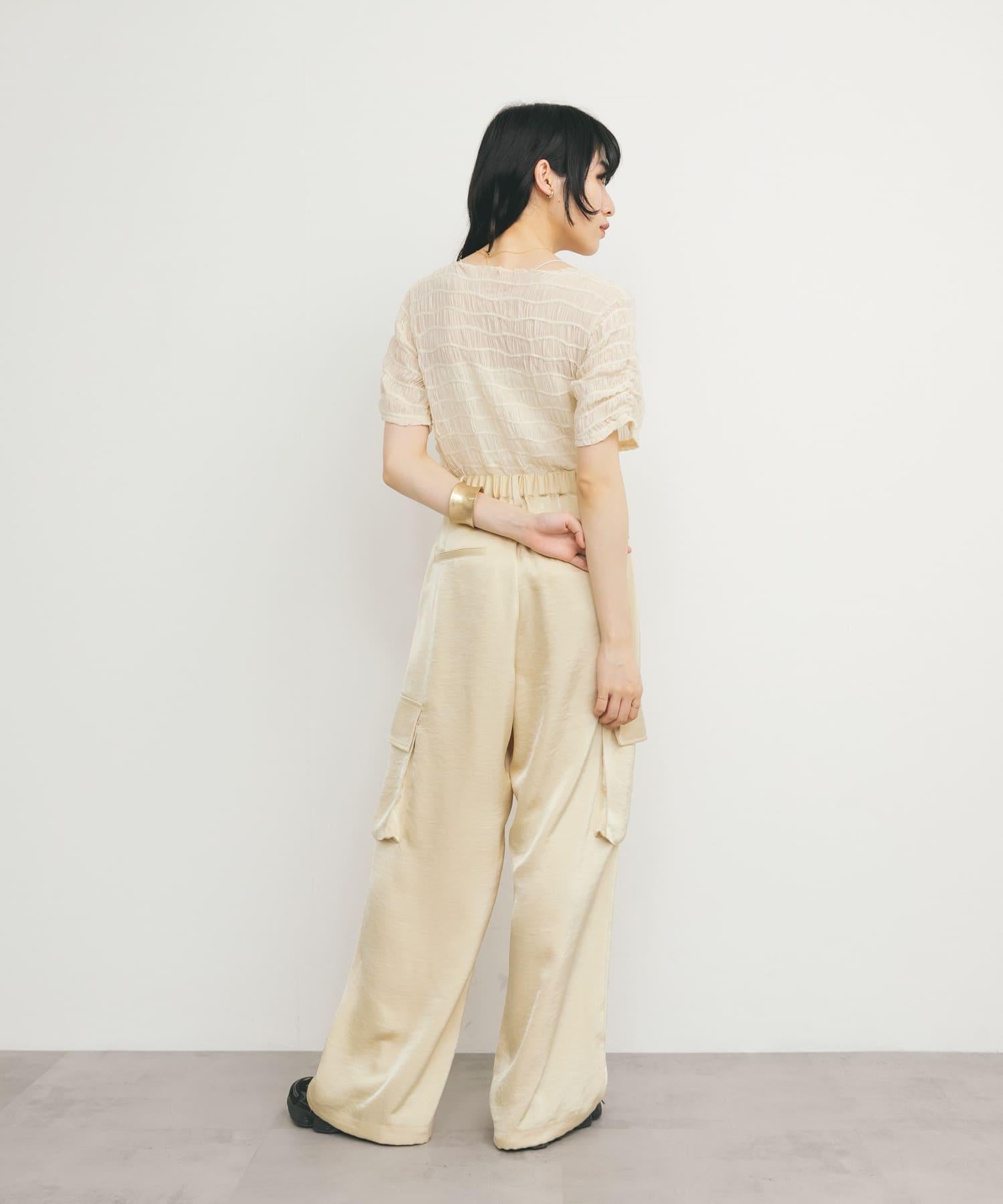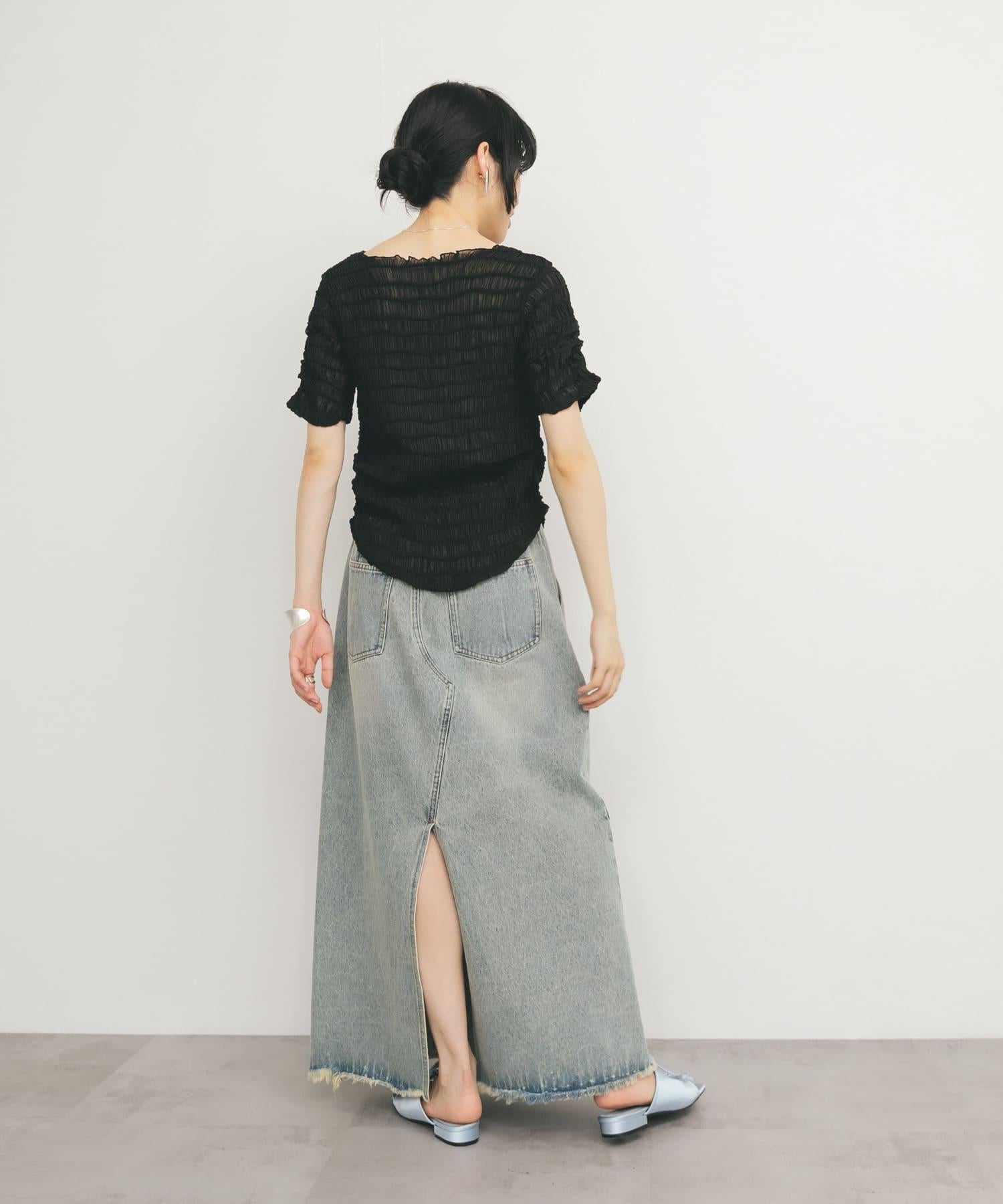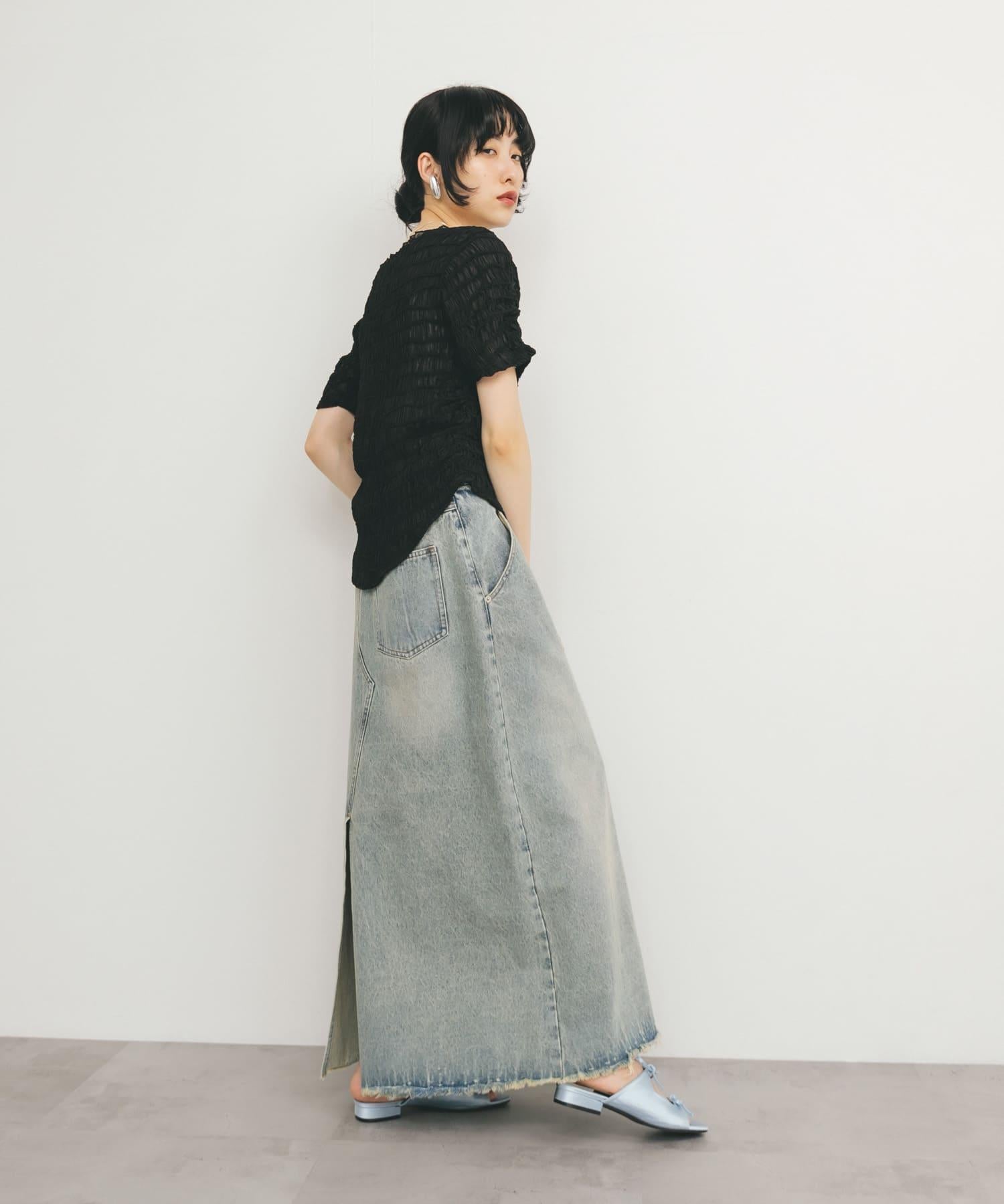這款華麗的上衣採用透視面料,帶有波浪狀的褶皺圖案。小巧的尺碼使其不僅適合作為主衣,也適合作為內搭。袖子和兩側也有波浪紋,因此只需將其添加到基本搭配中,就會非常漂亮。有易於搭配的 IVORY、BKACK 和夏日橘色可供選擇。