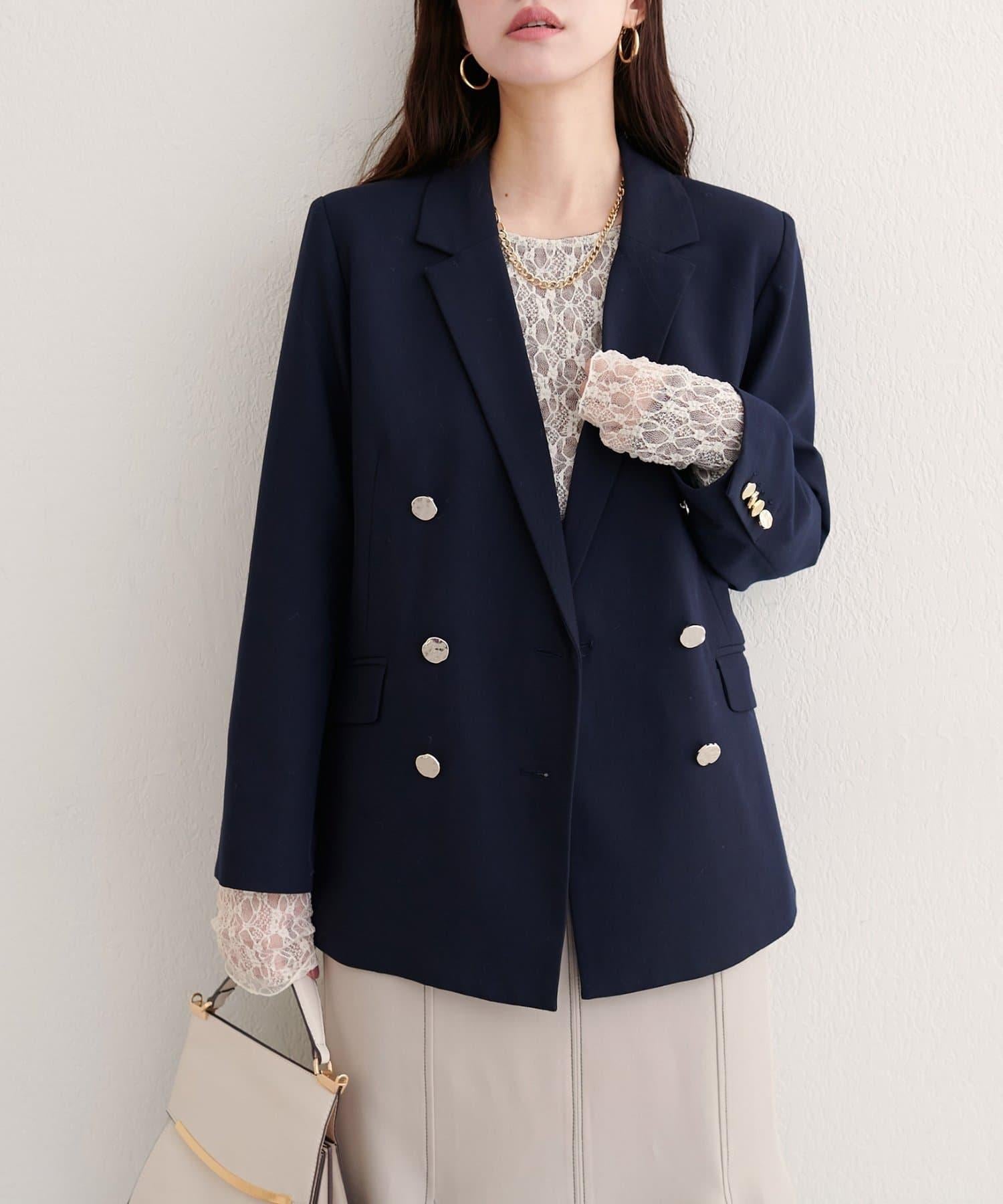 褶皺金色紐扣西裝外套