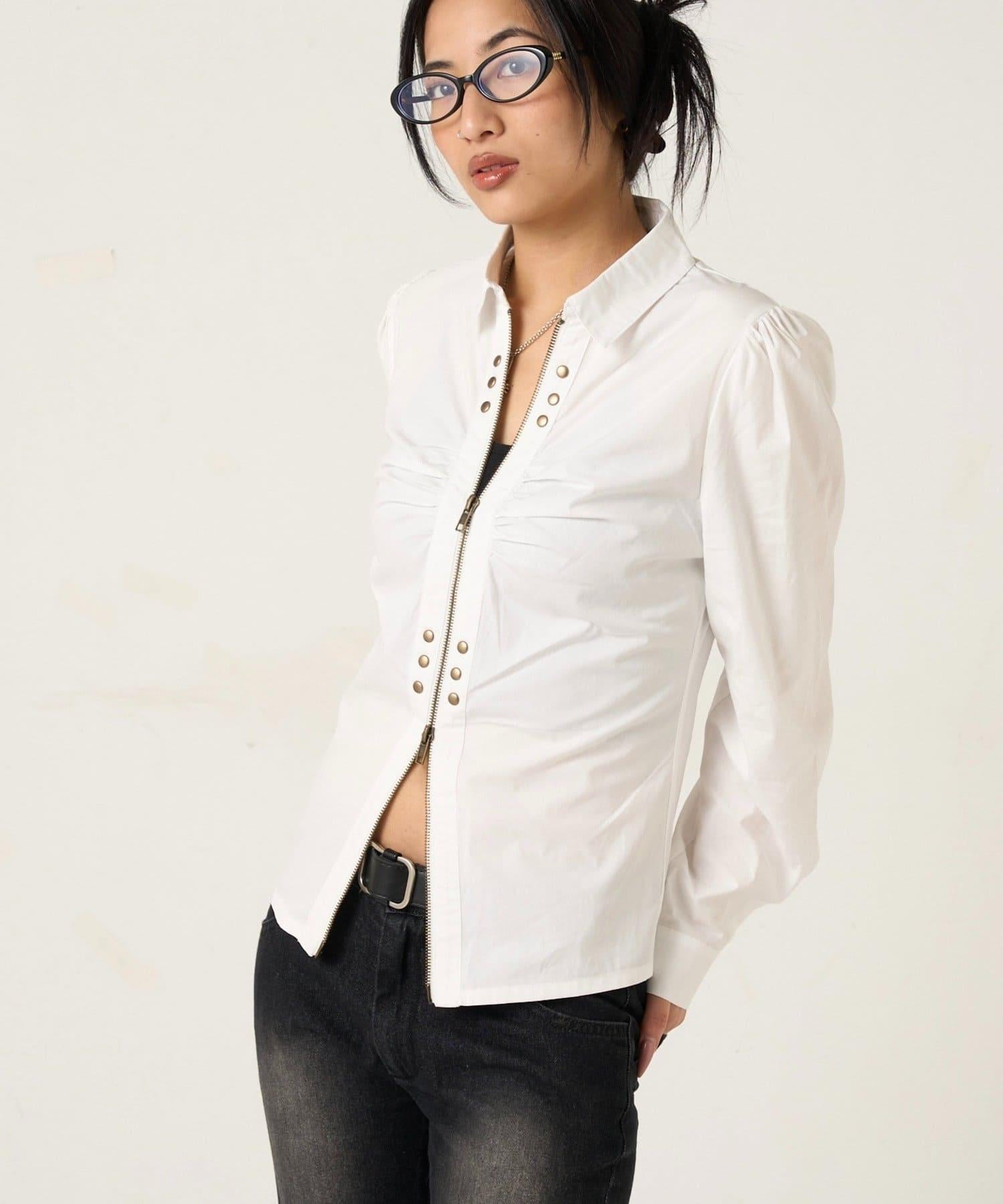 [GATHERED STUDDED COMPACT SHIRT / Gathered Studded Compact Shirt]