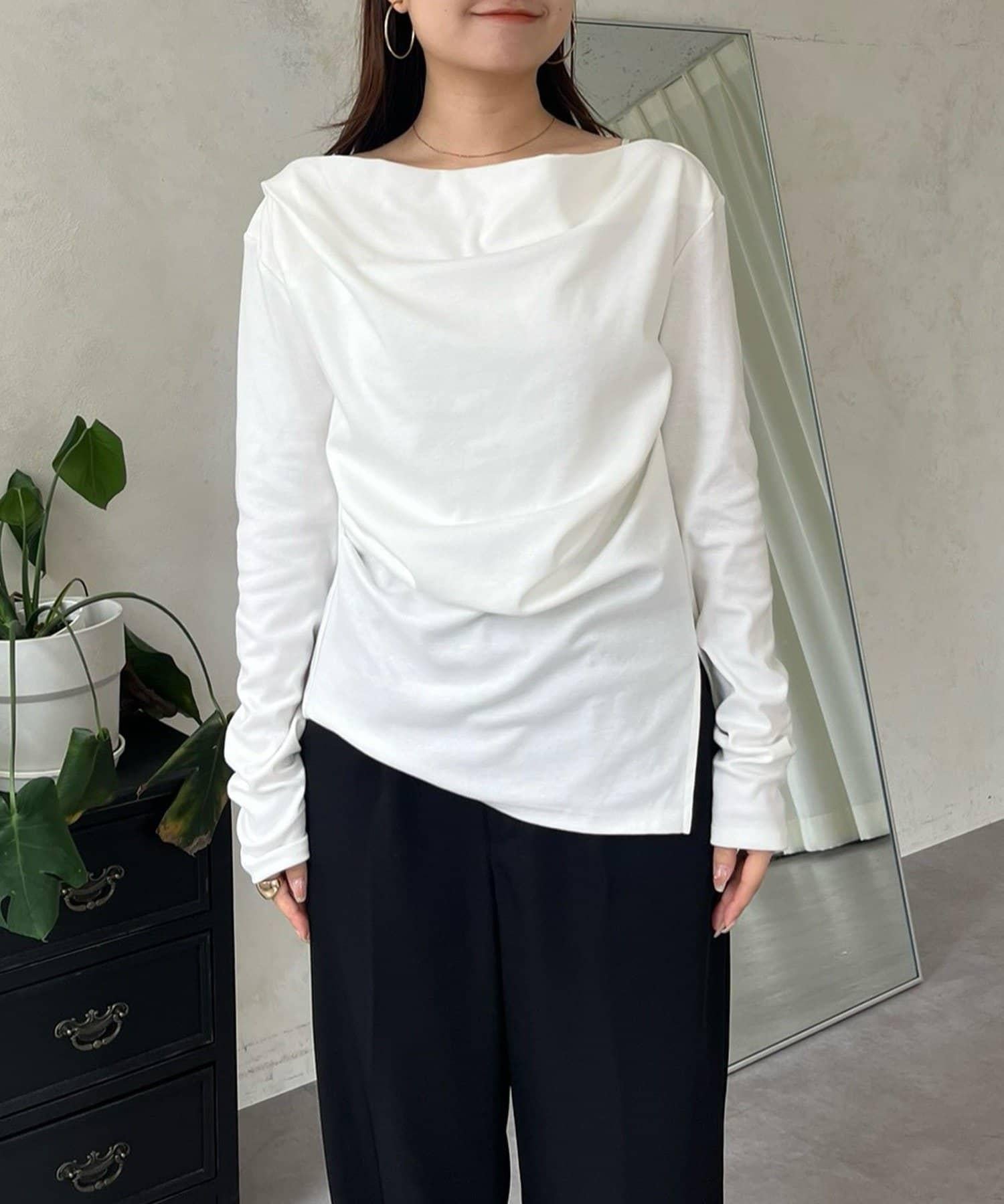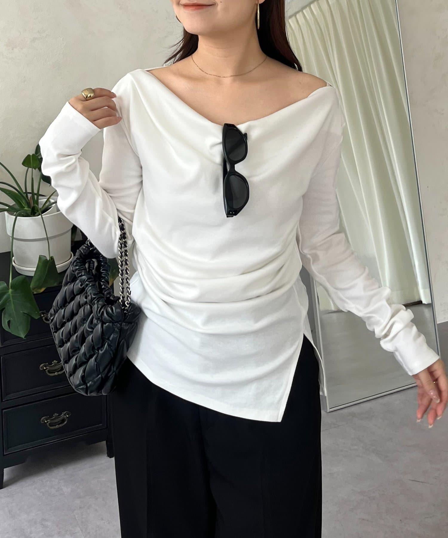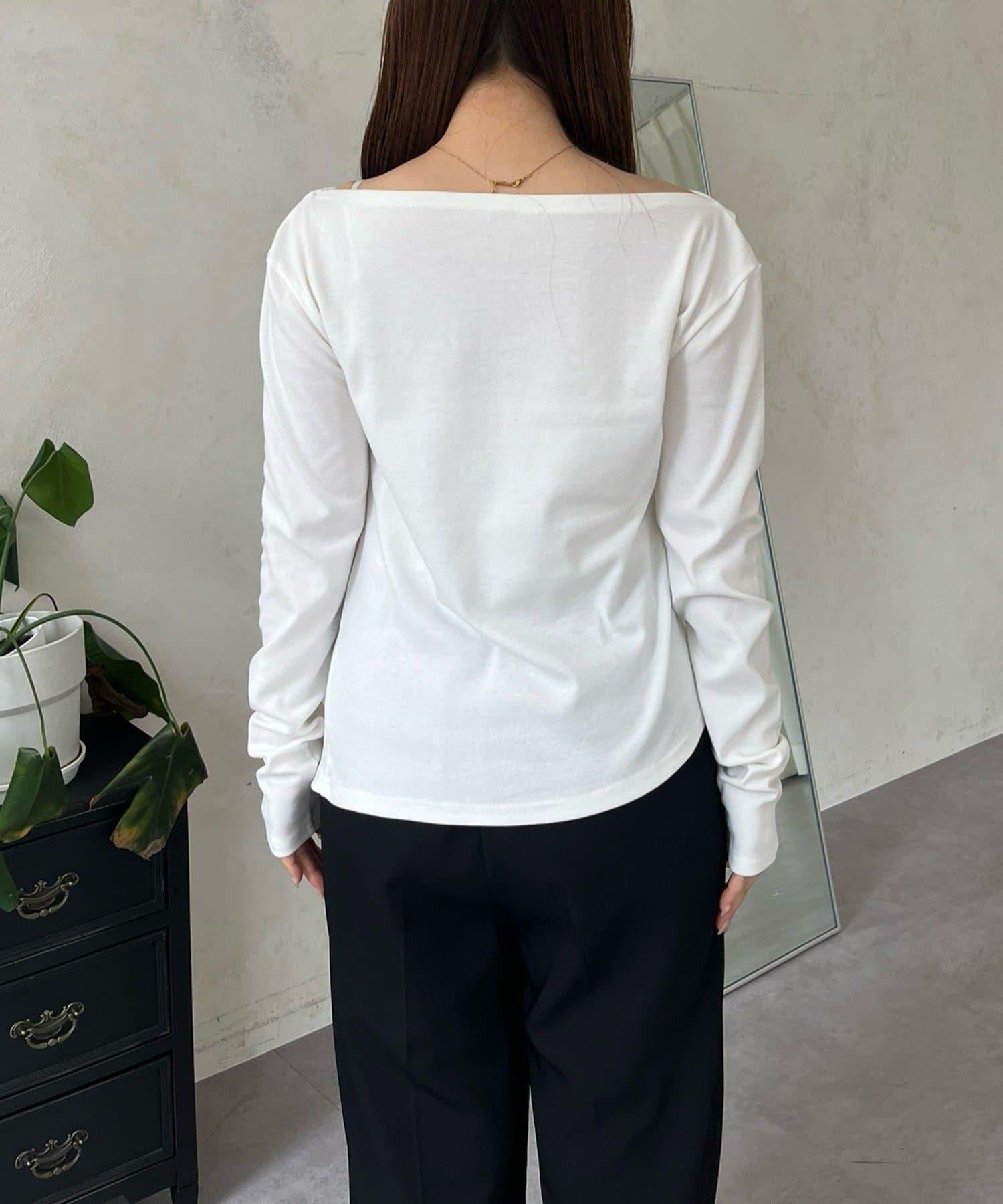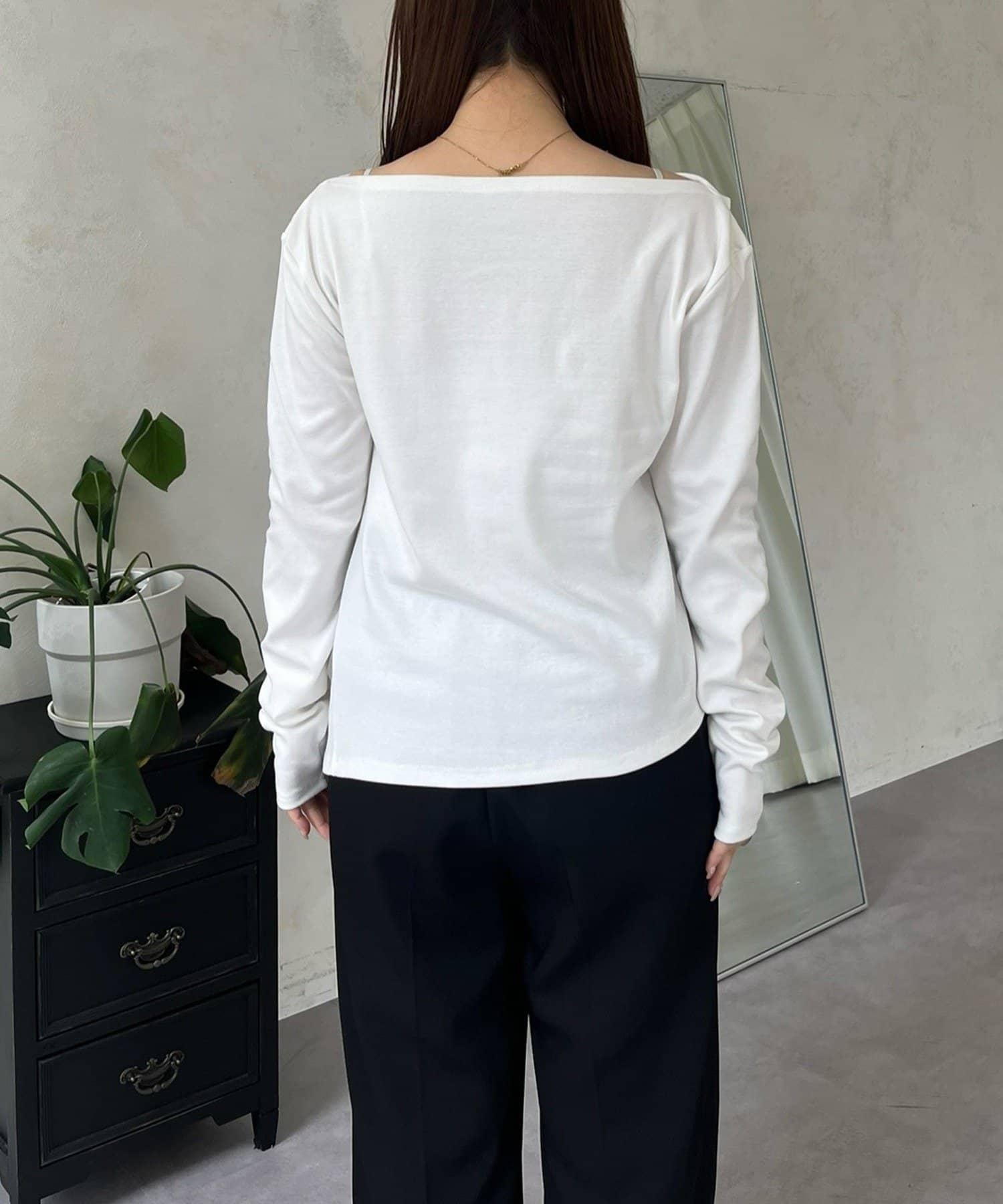 成人休閒 / 簡約 / 露肩 / 船領 / 長 T 恤