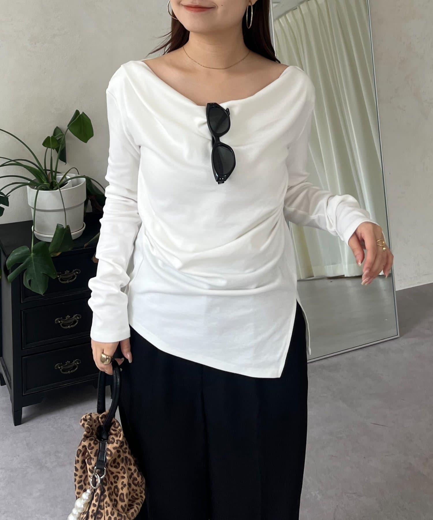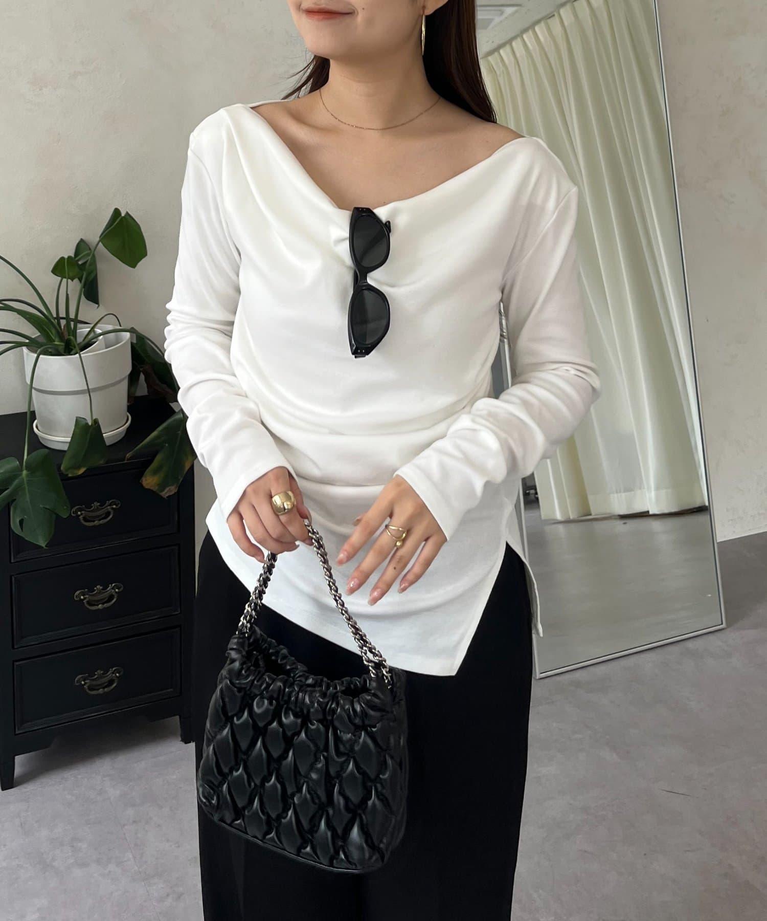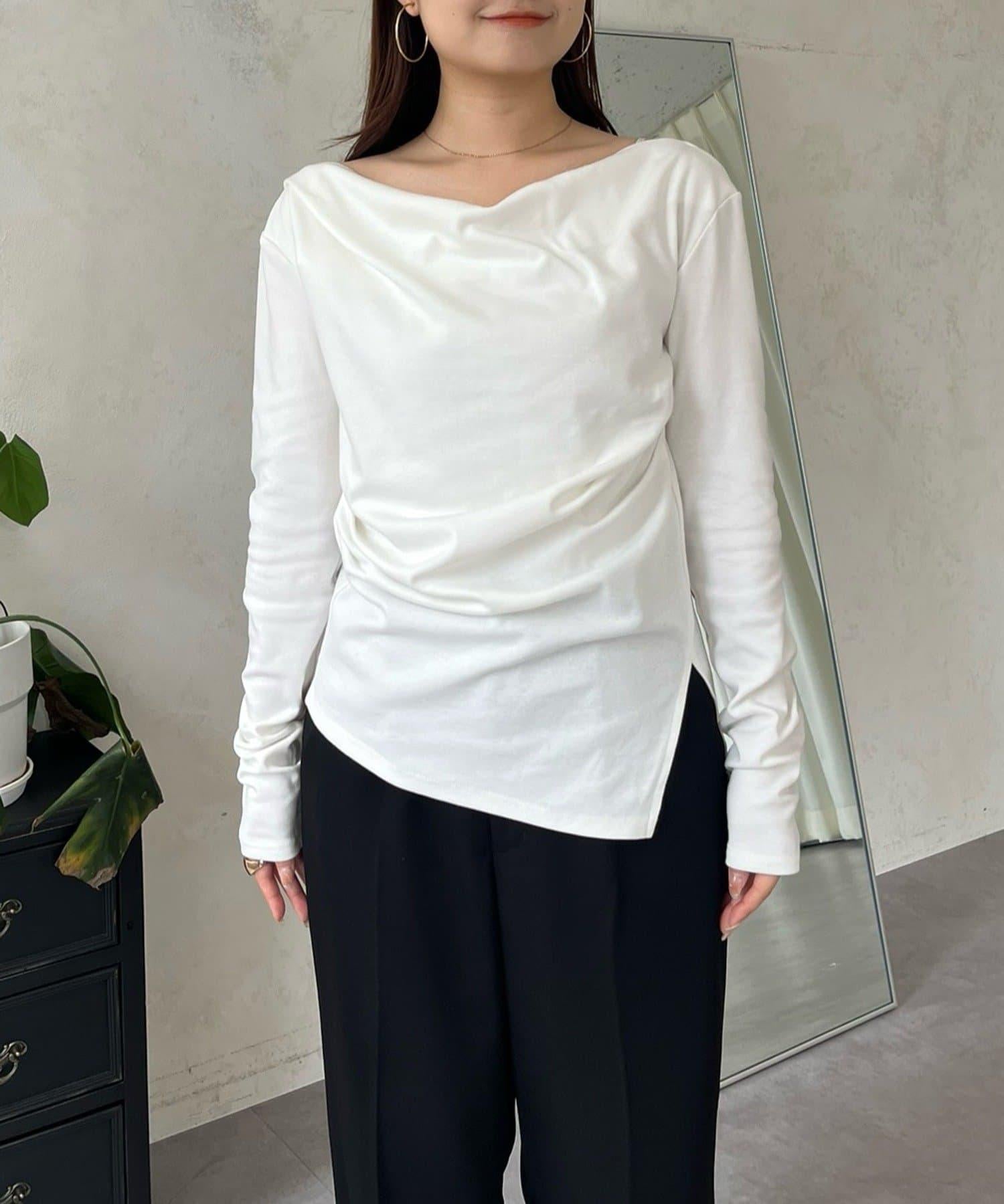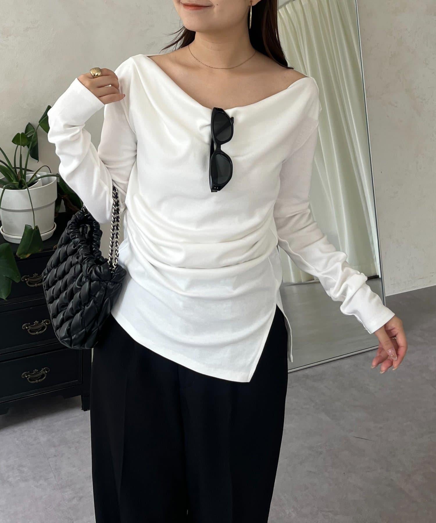 成人休閒 / 簡約 / 露肩 / 船領 / 長 T 恤