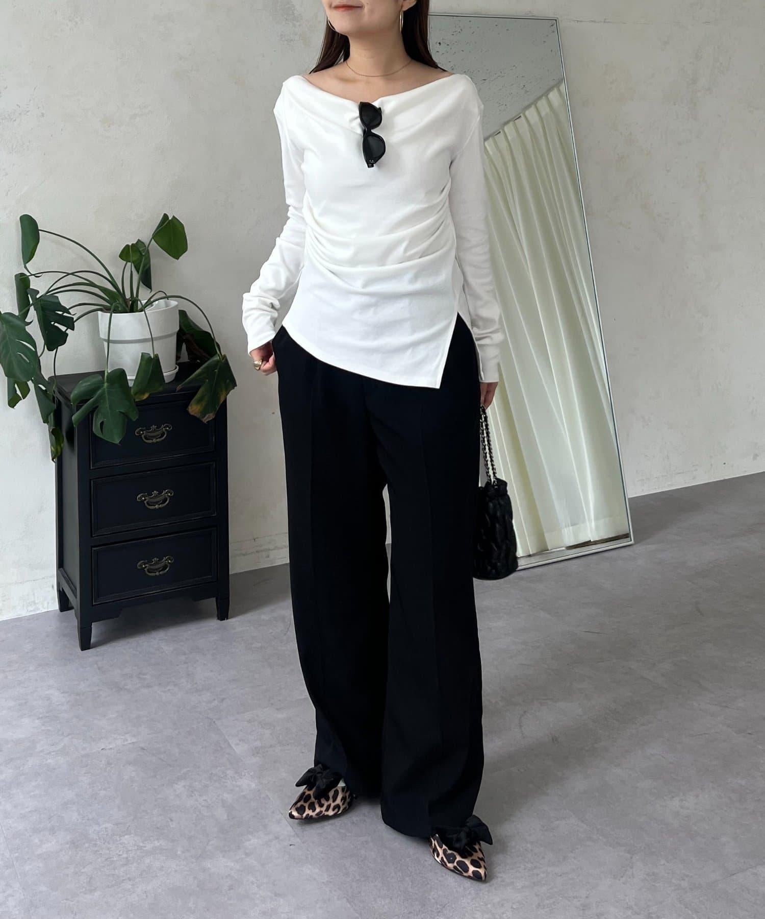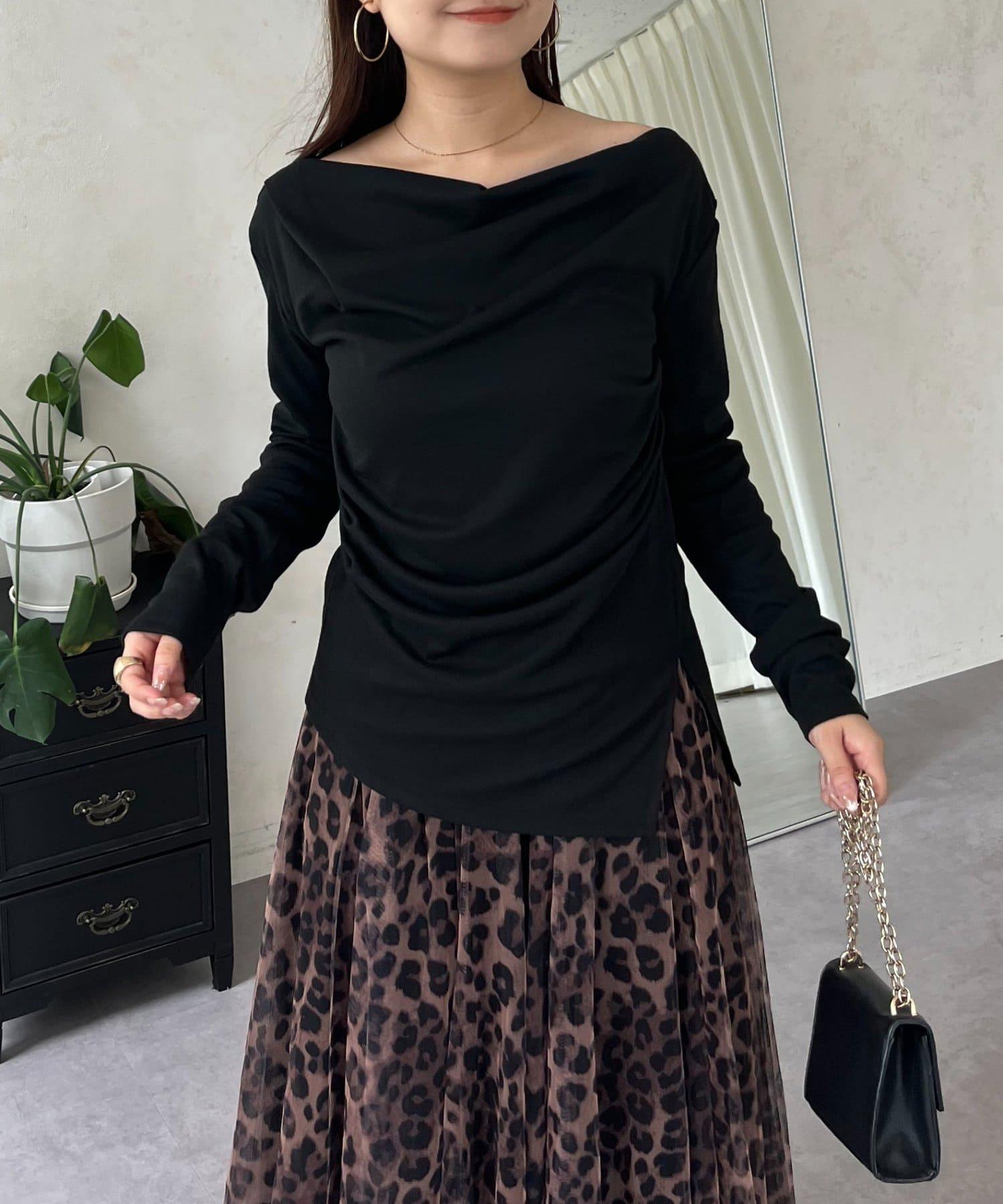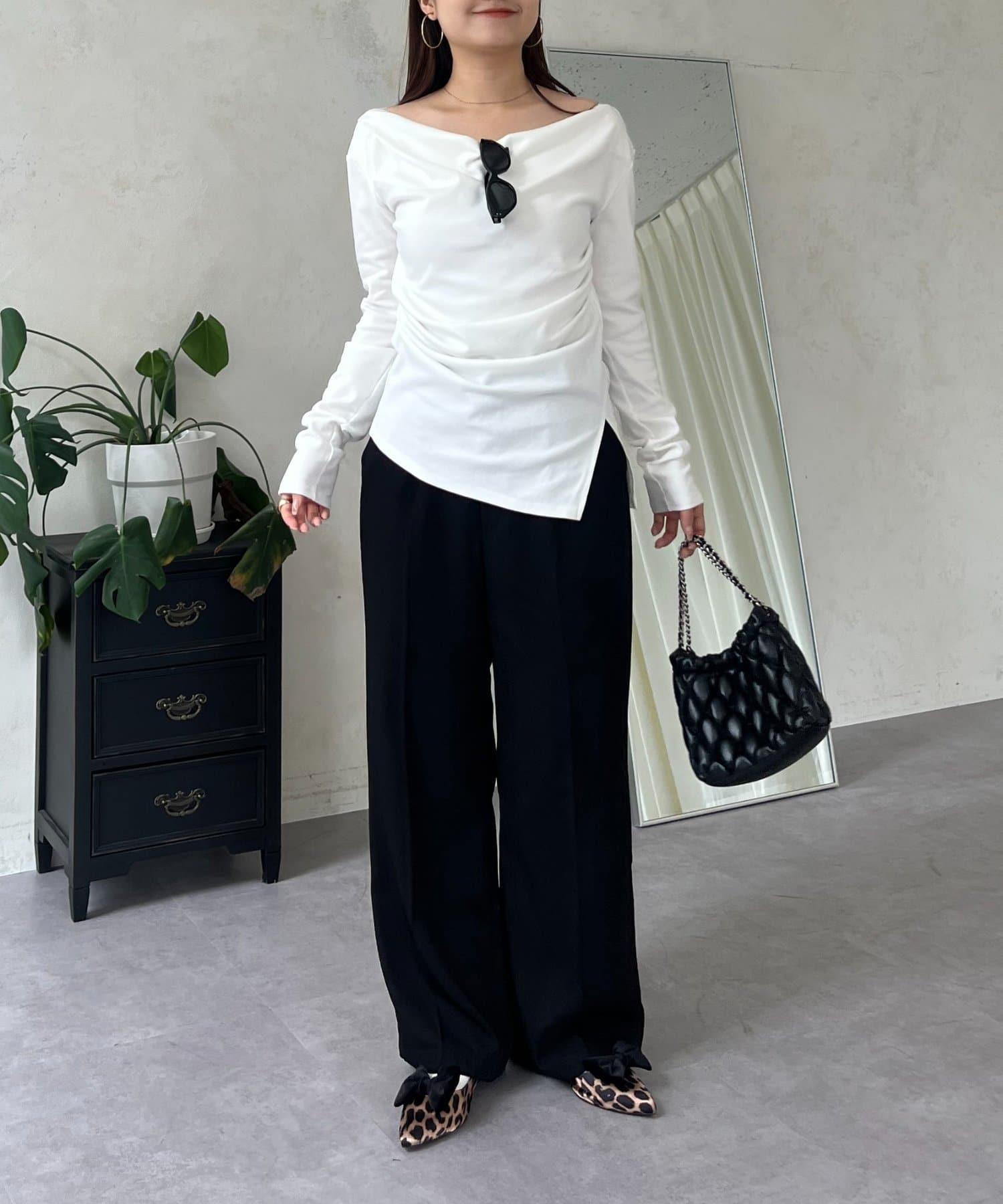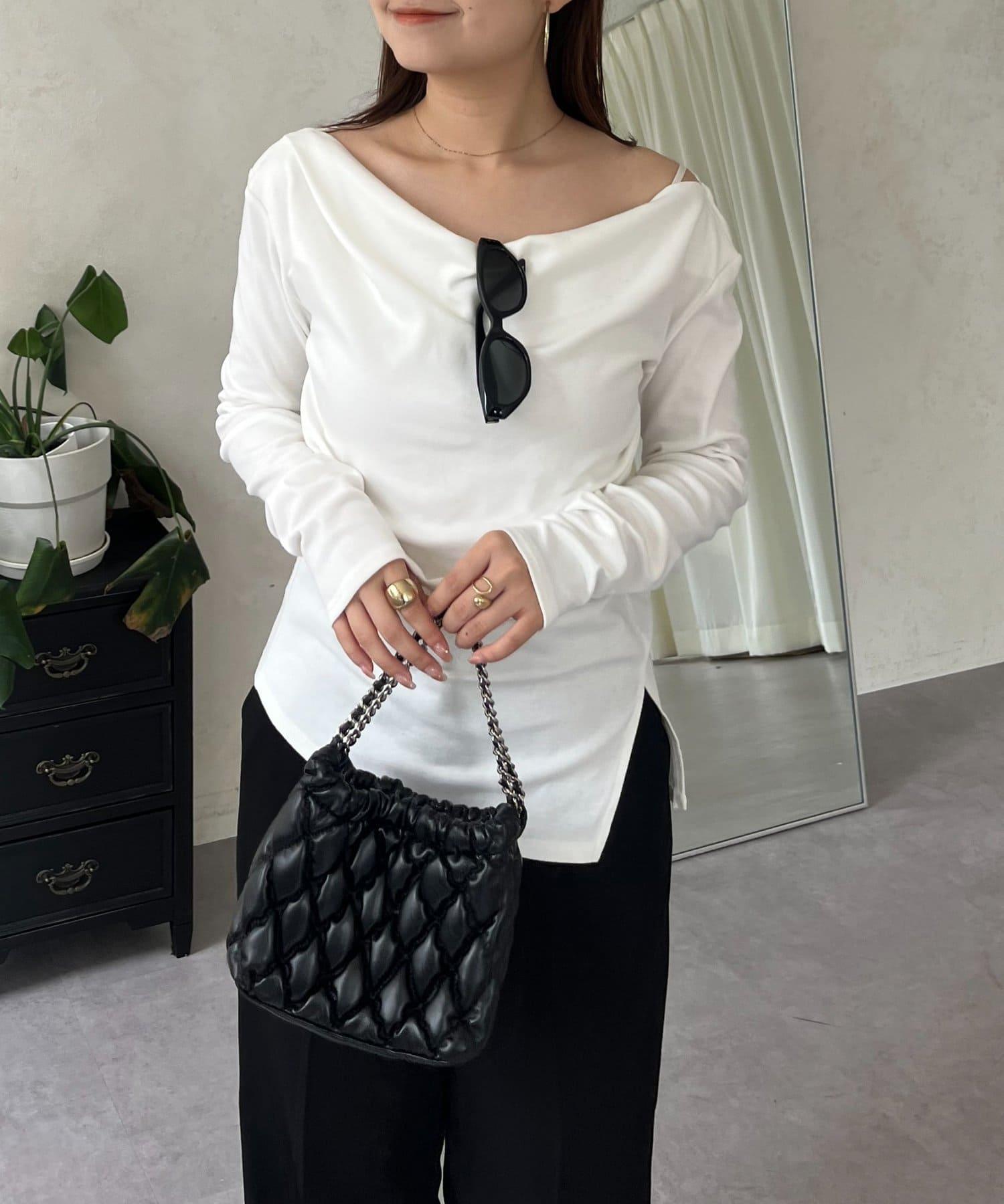 成人休閒 / 簡約 / 露肩 / 船領 / 長 T 恤