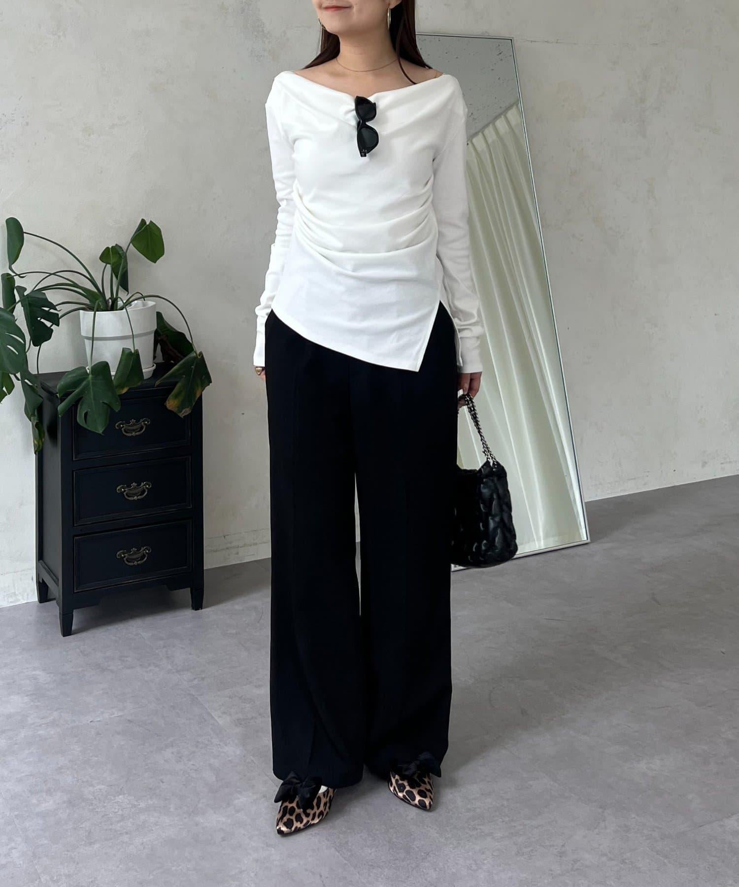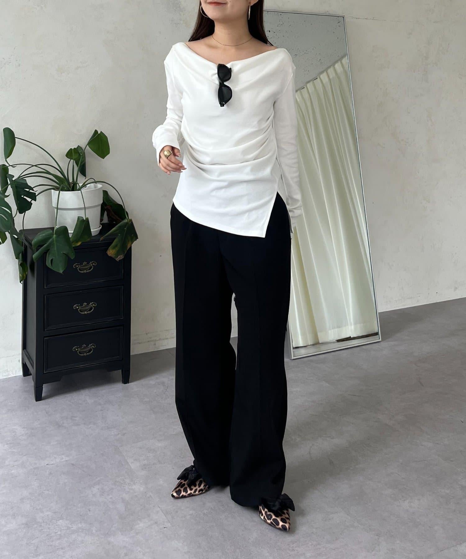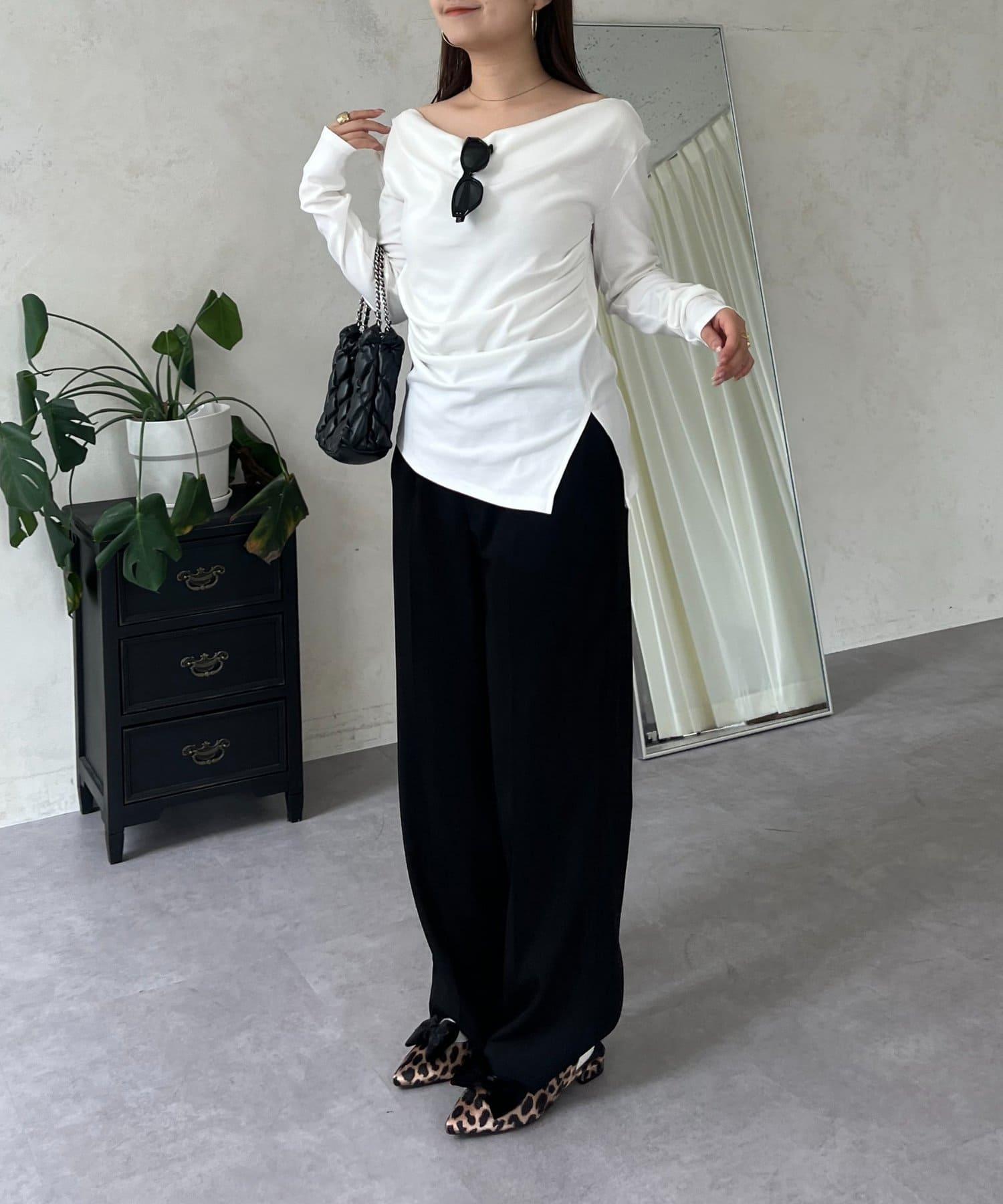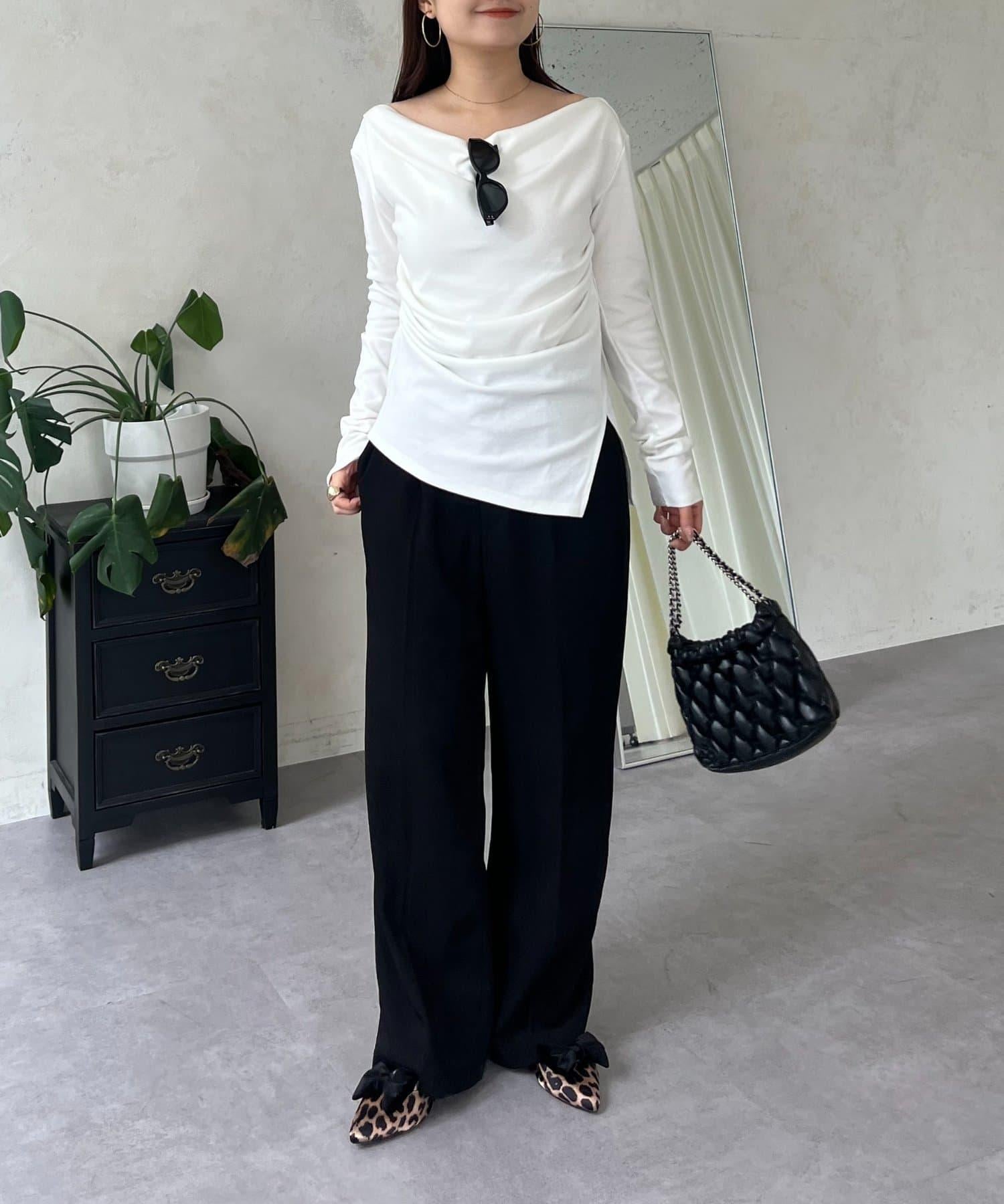成人休閒 / 簡約 / 露肩 / 船領 / 長 T 恤