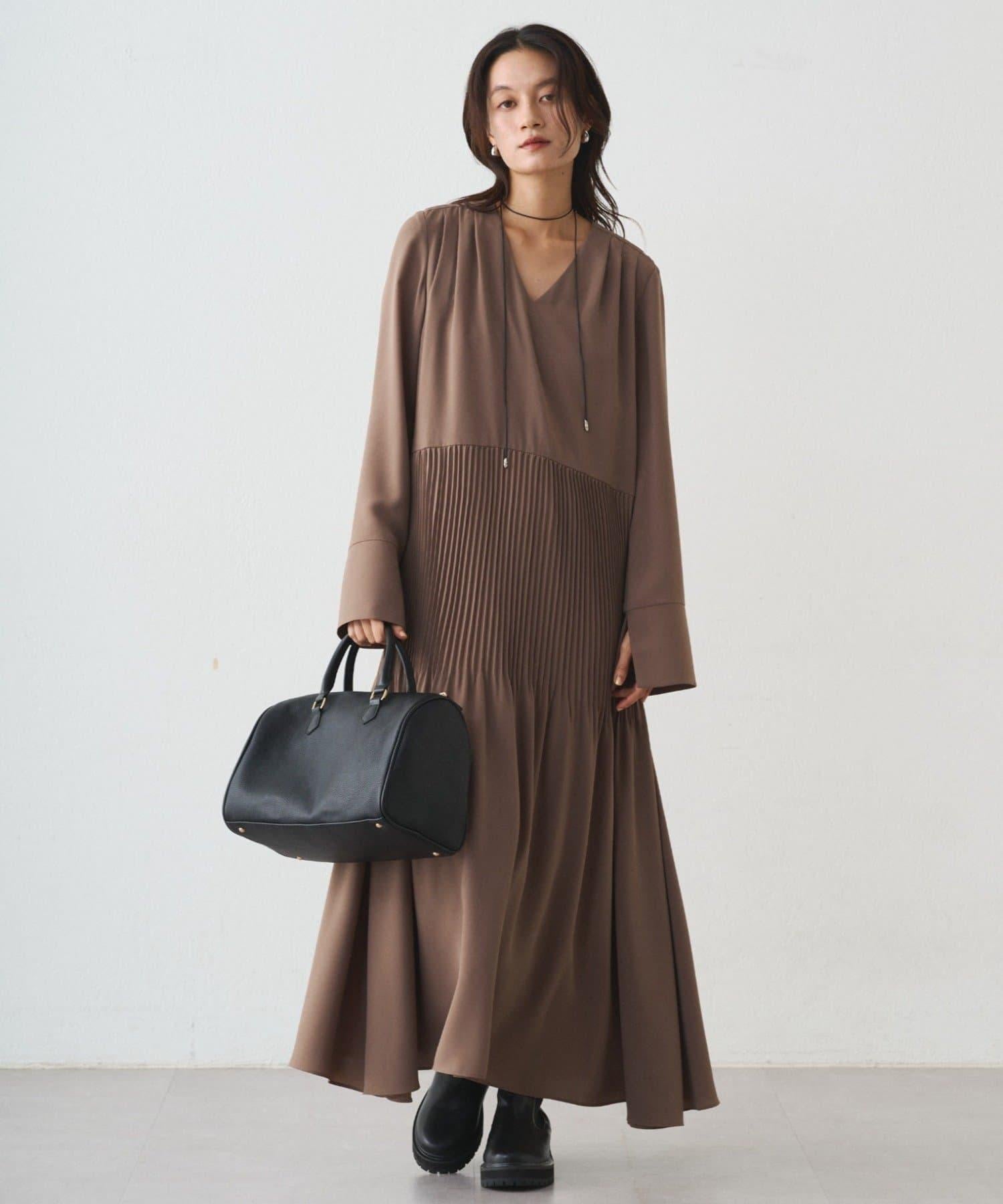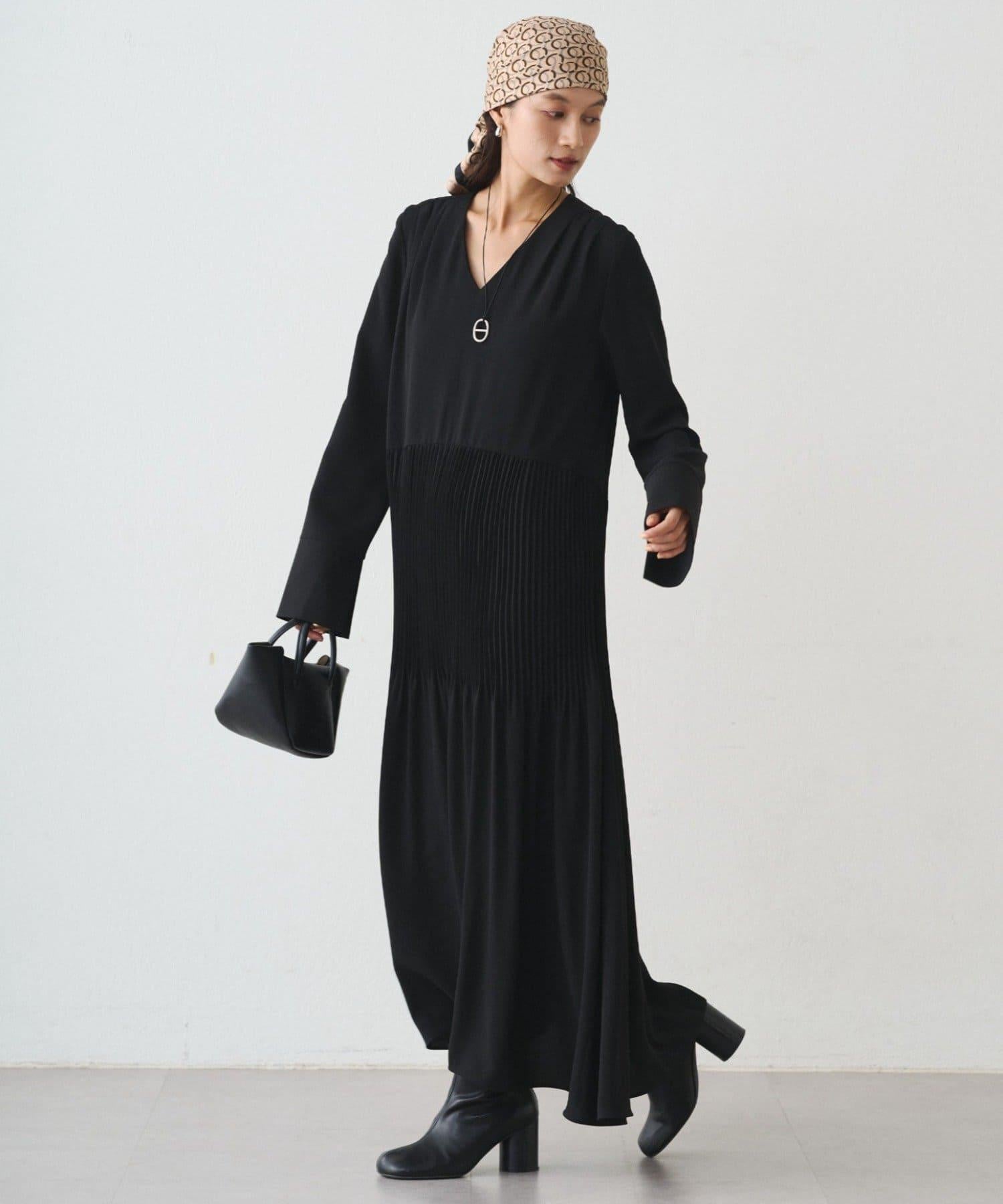 從腰部展開的褶皺為這款出色的單品增添了時尚效果。