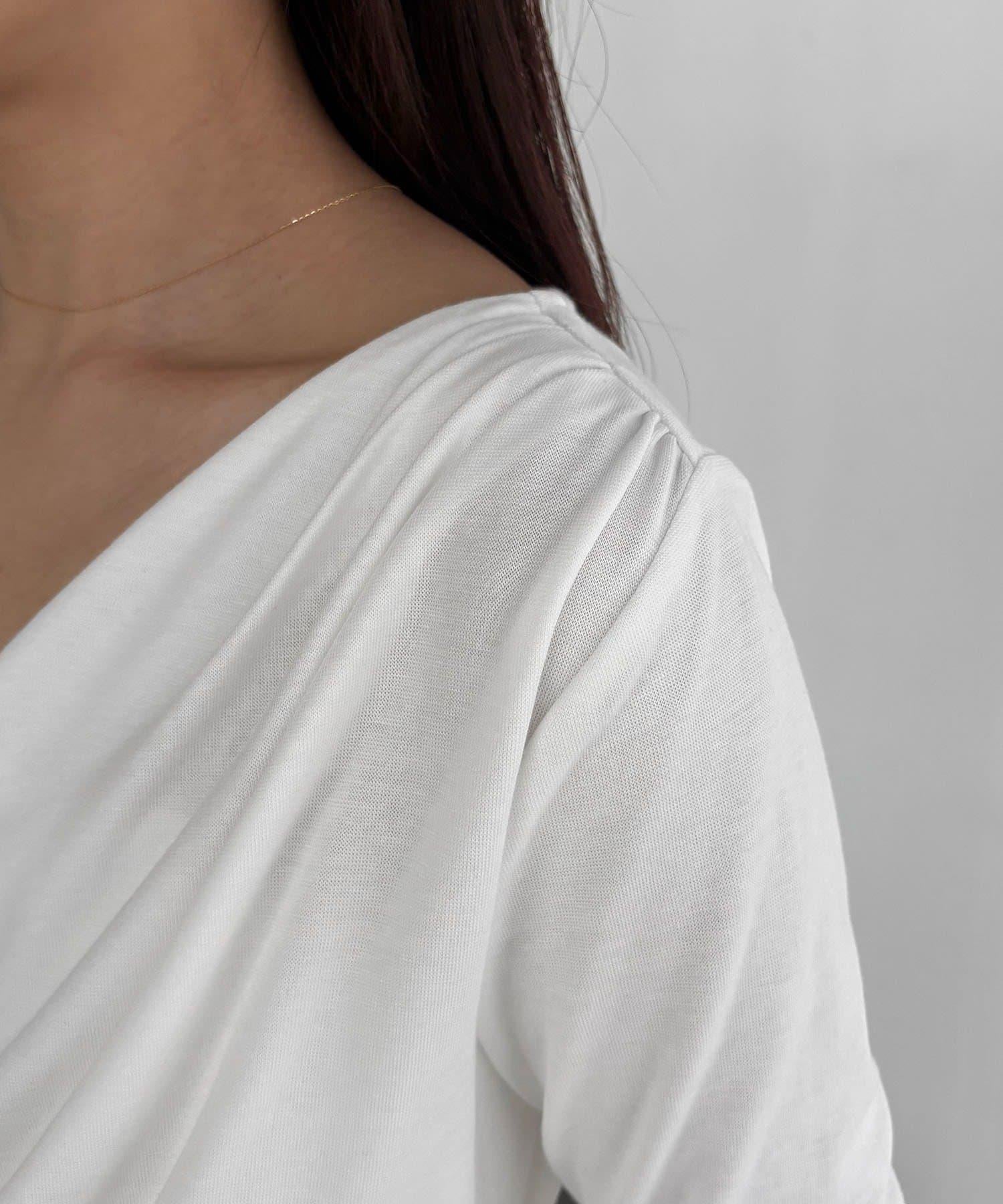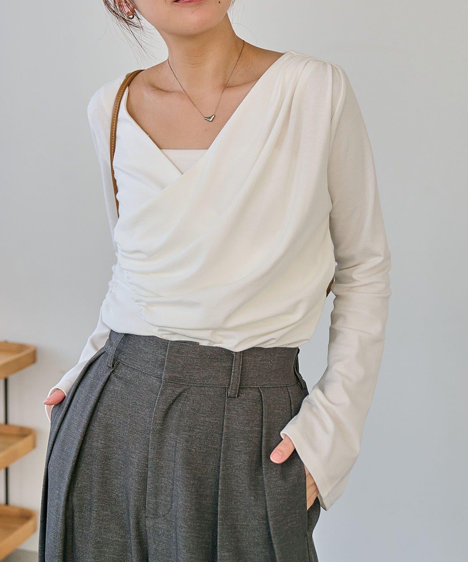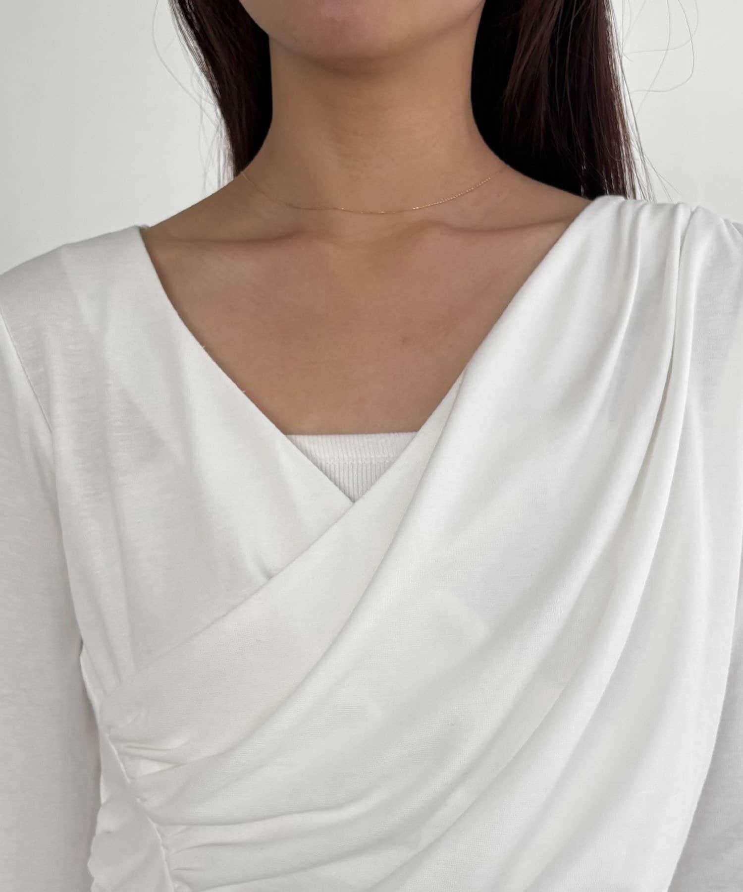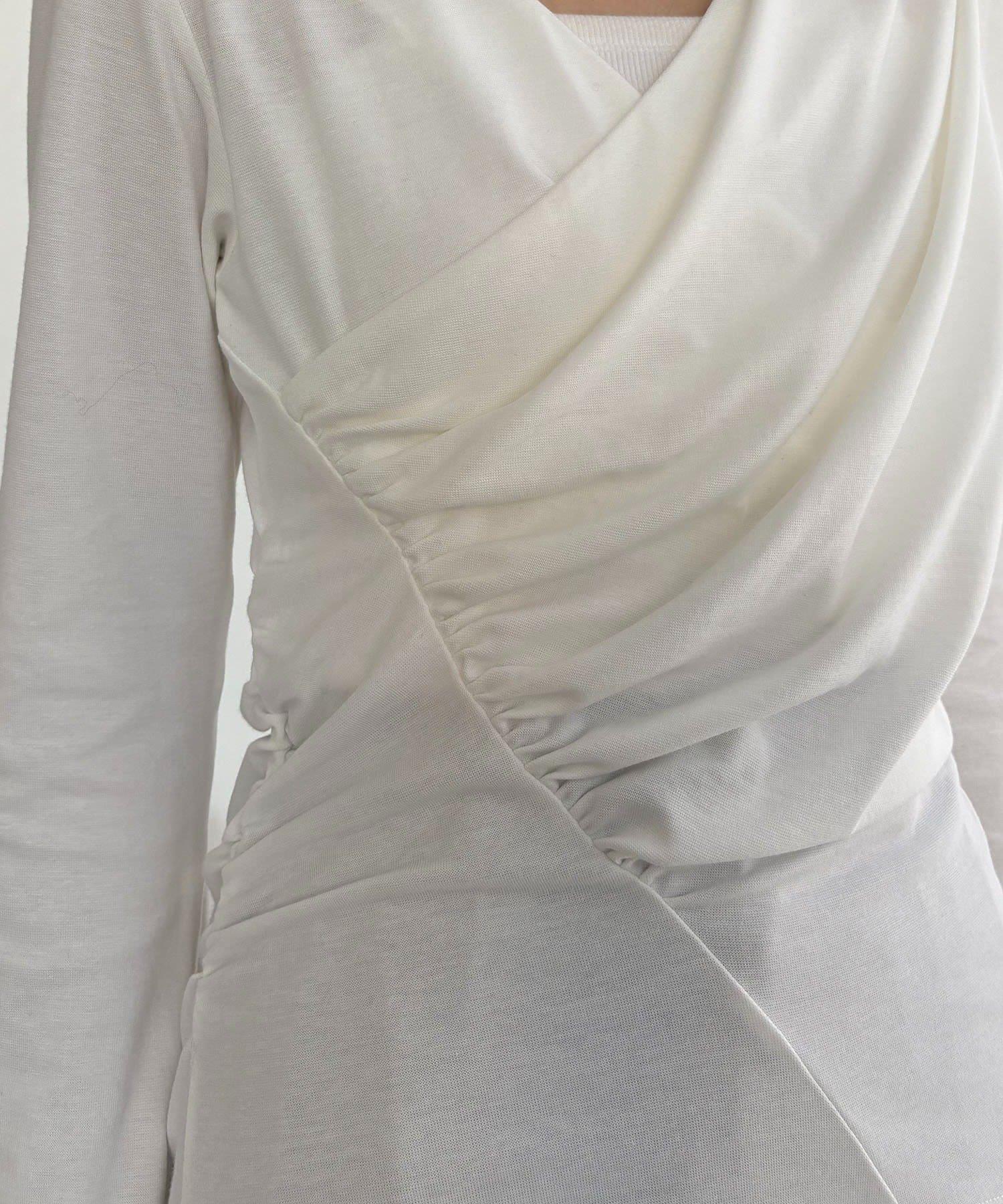 褶襉不對稱領設計T恤