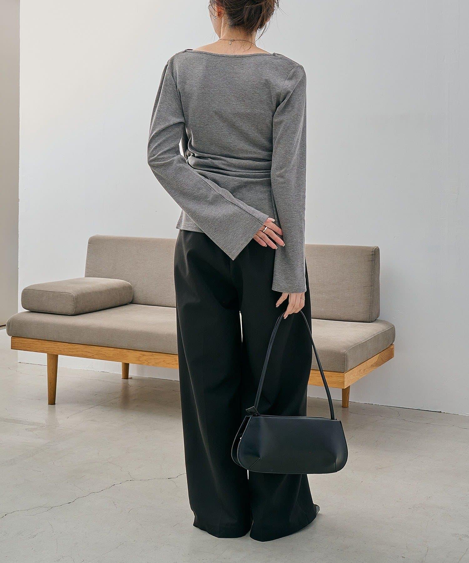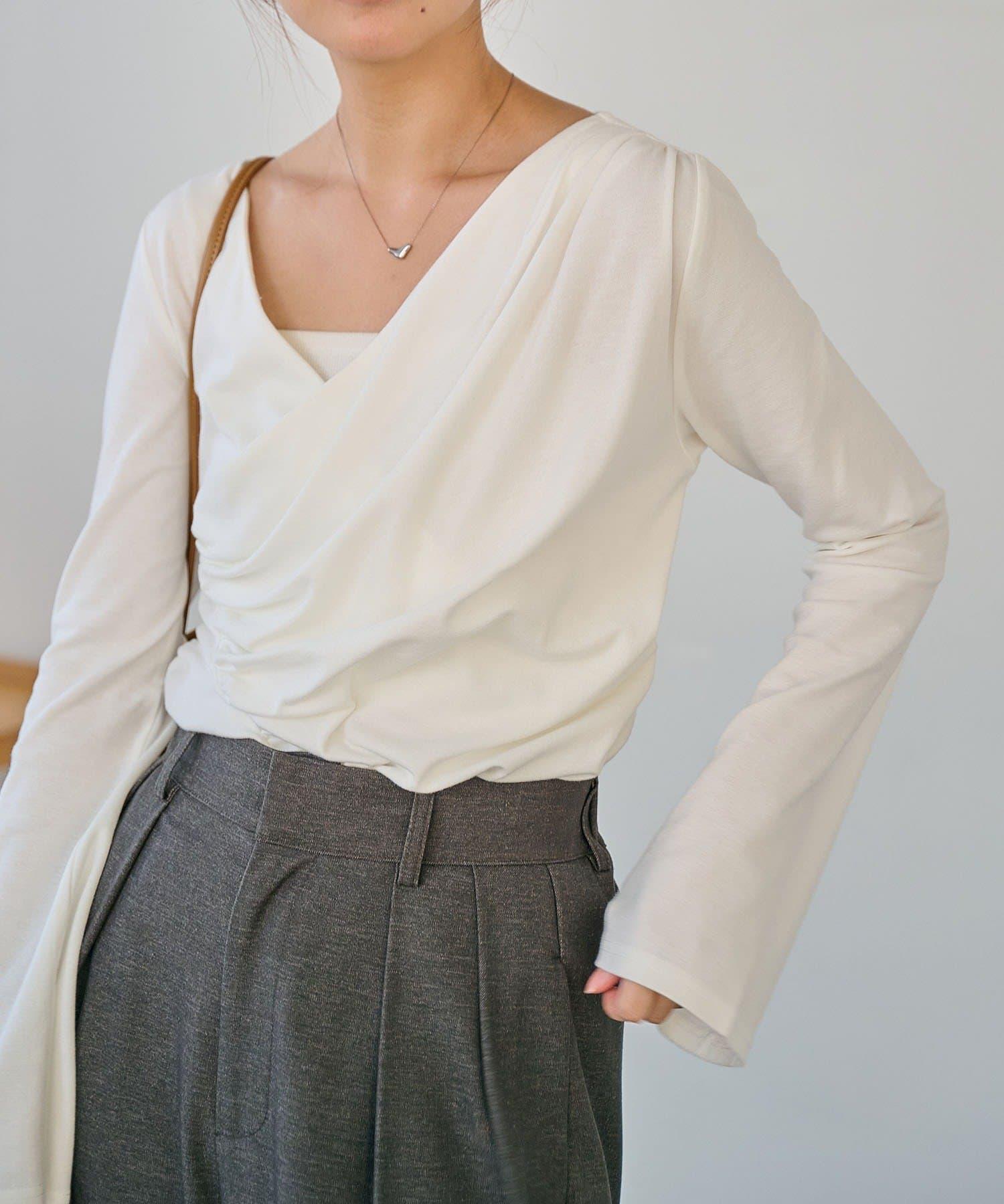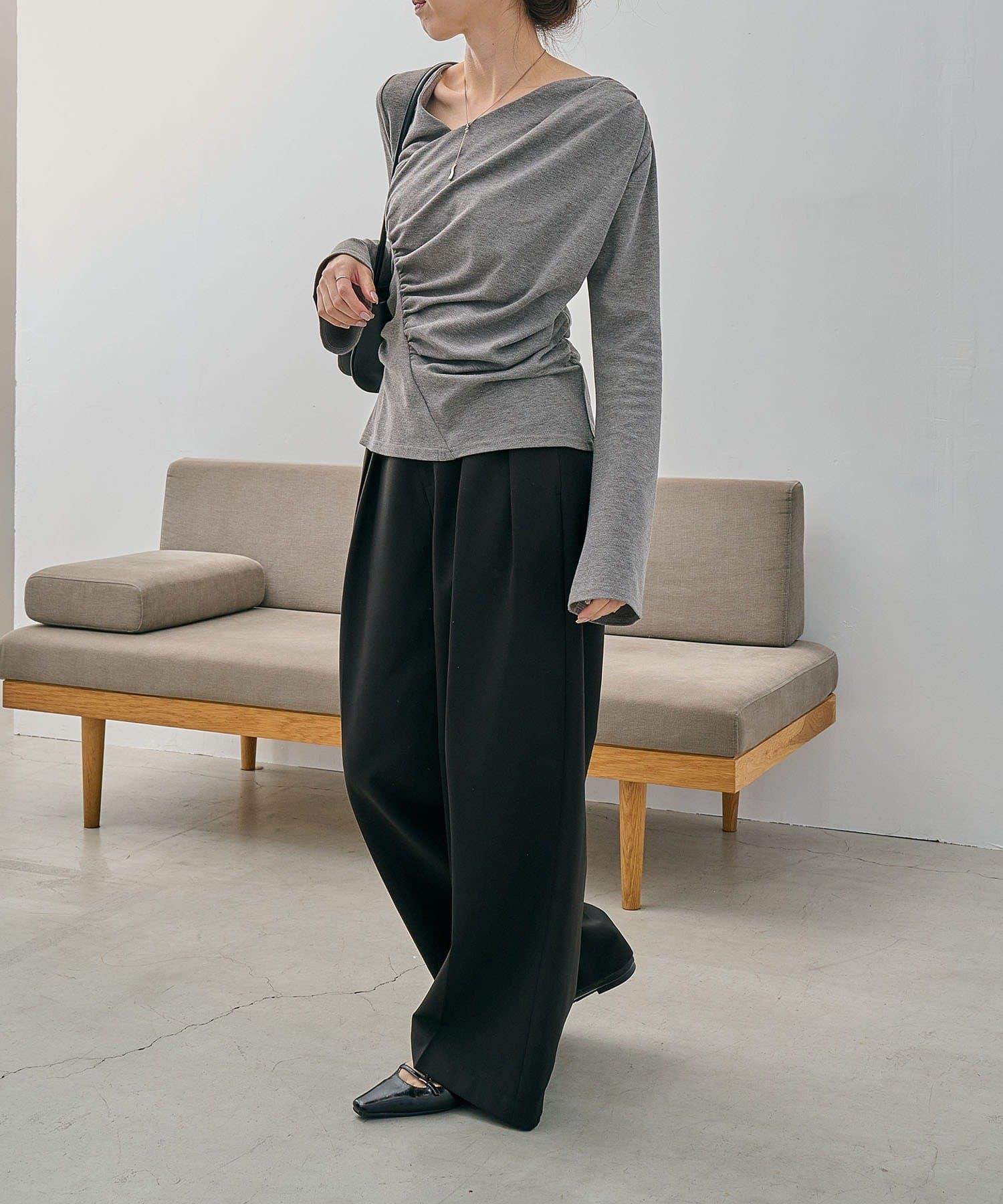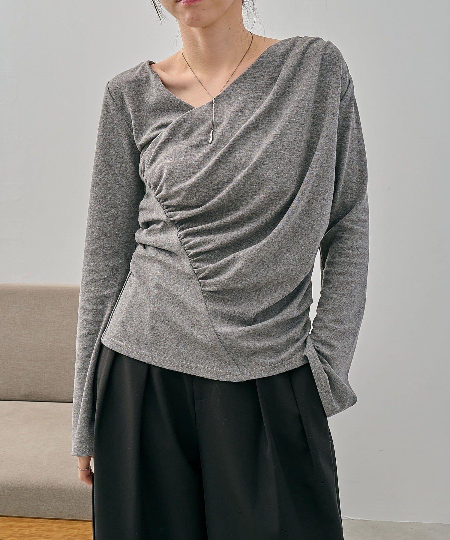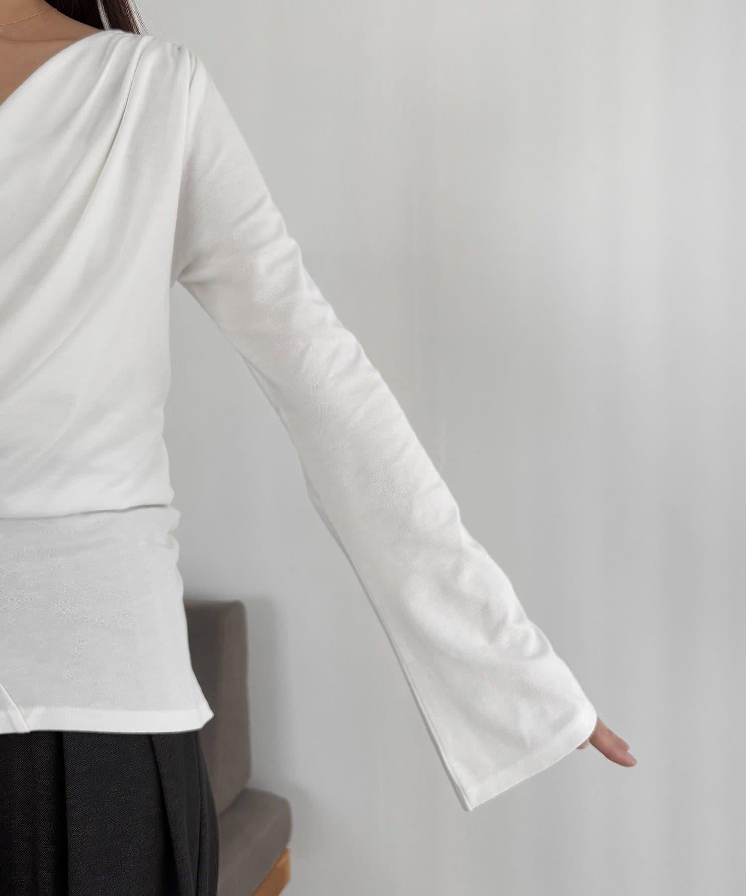 褶襉不對稱領設計T恤