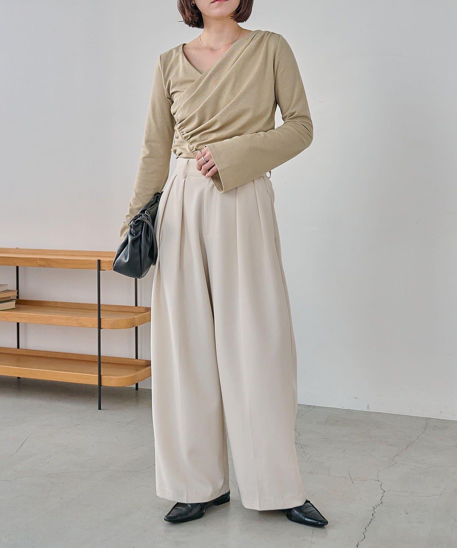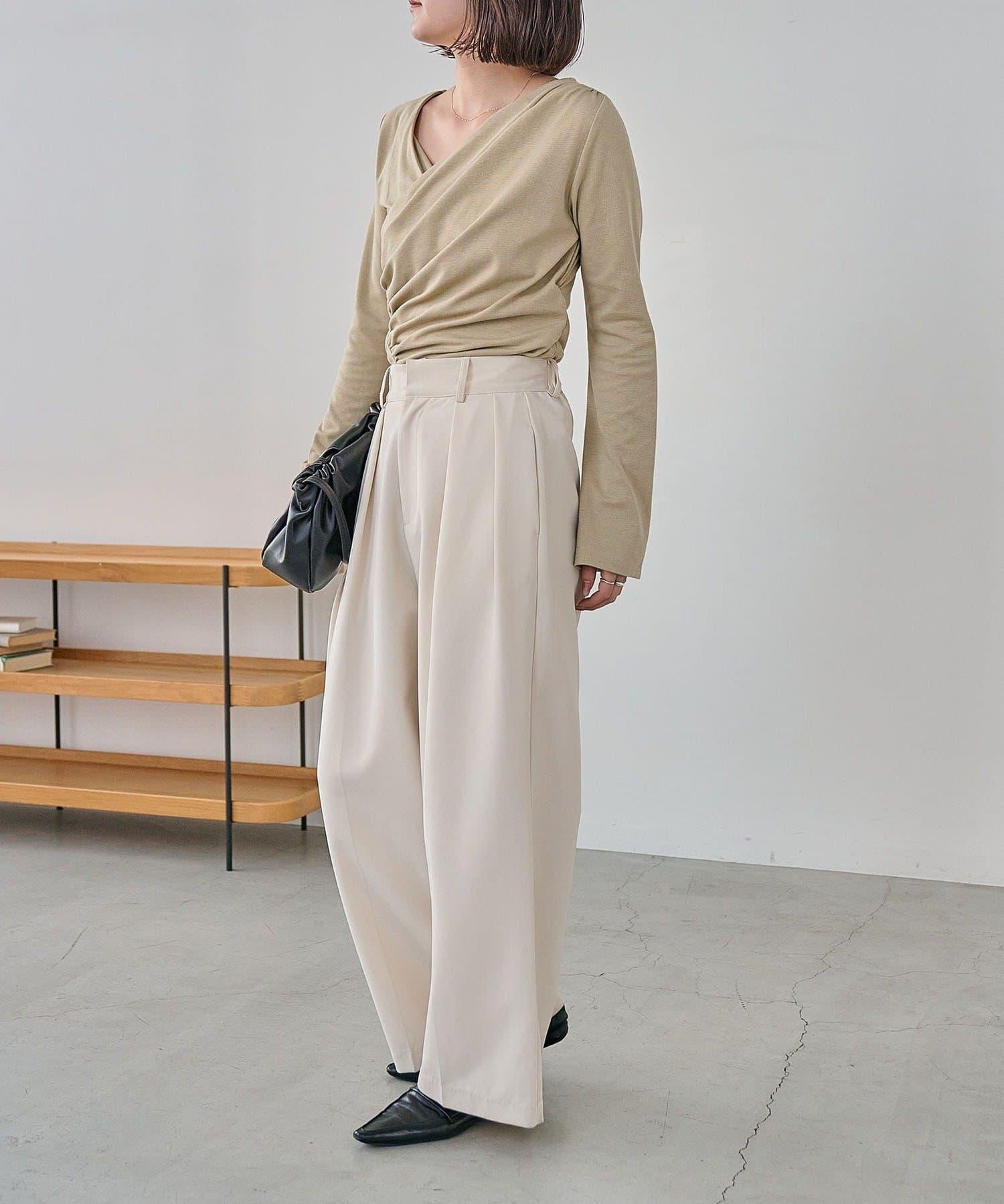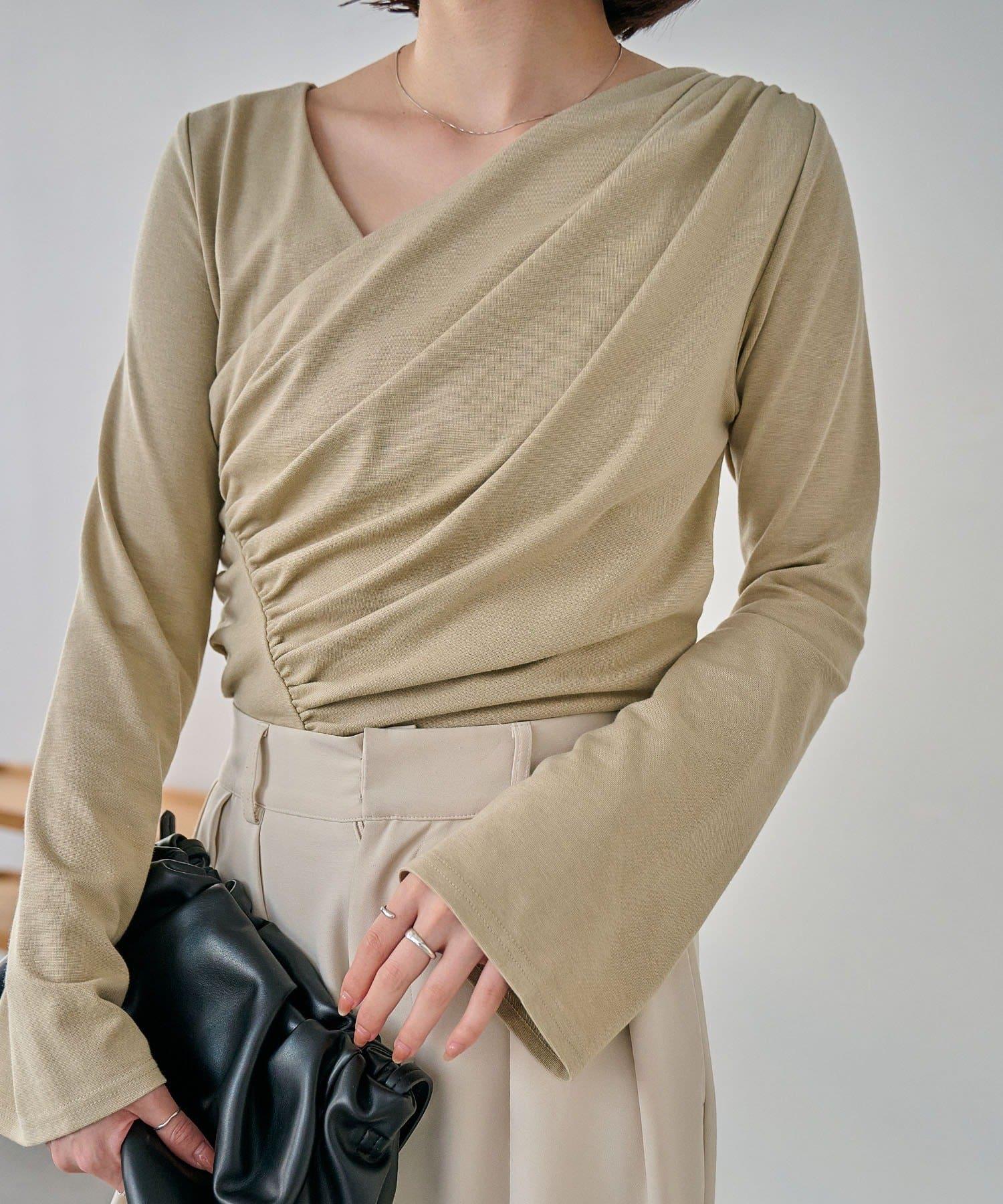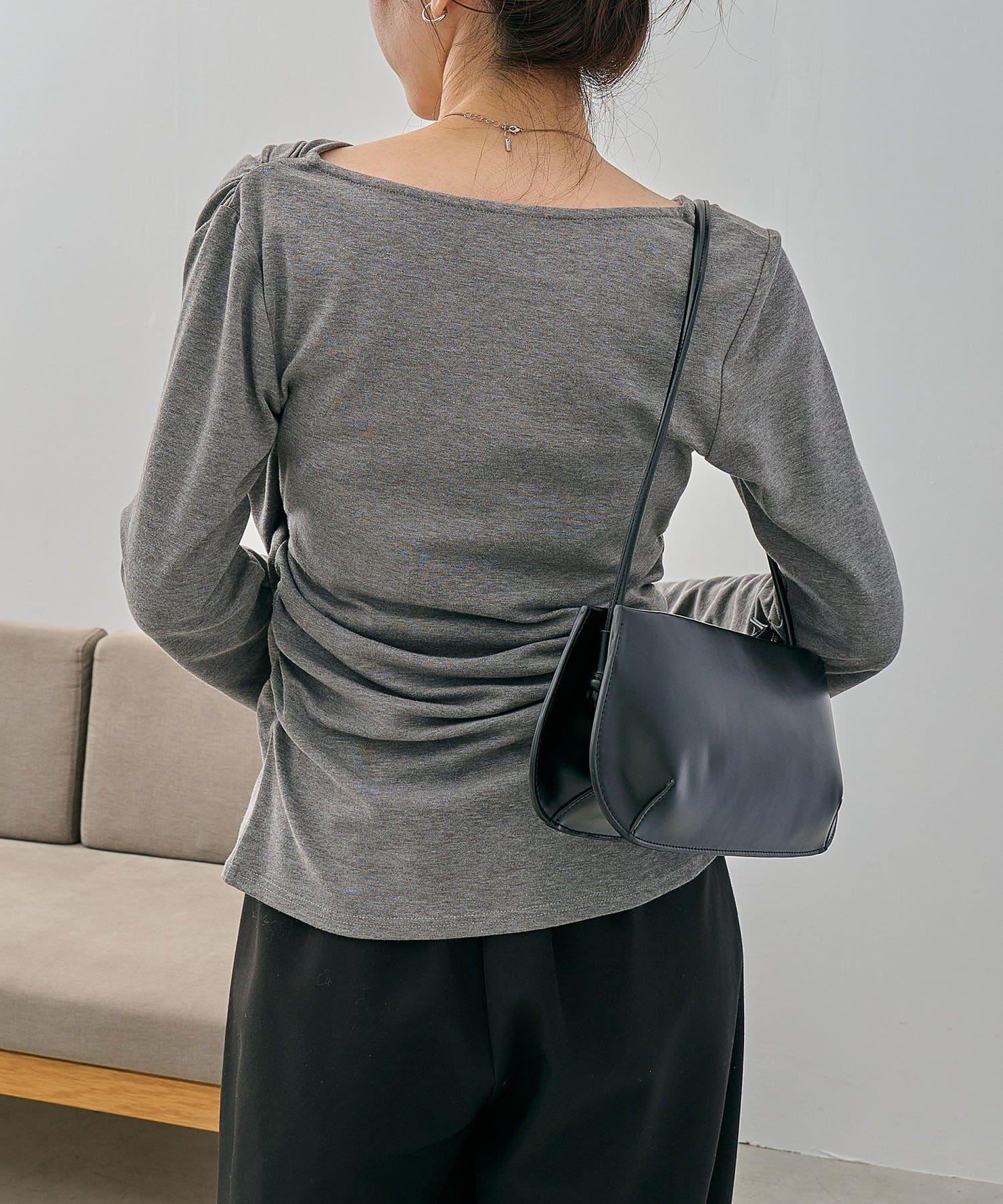 褶襉不對稱領設計T恤