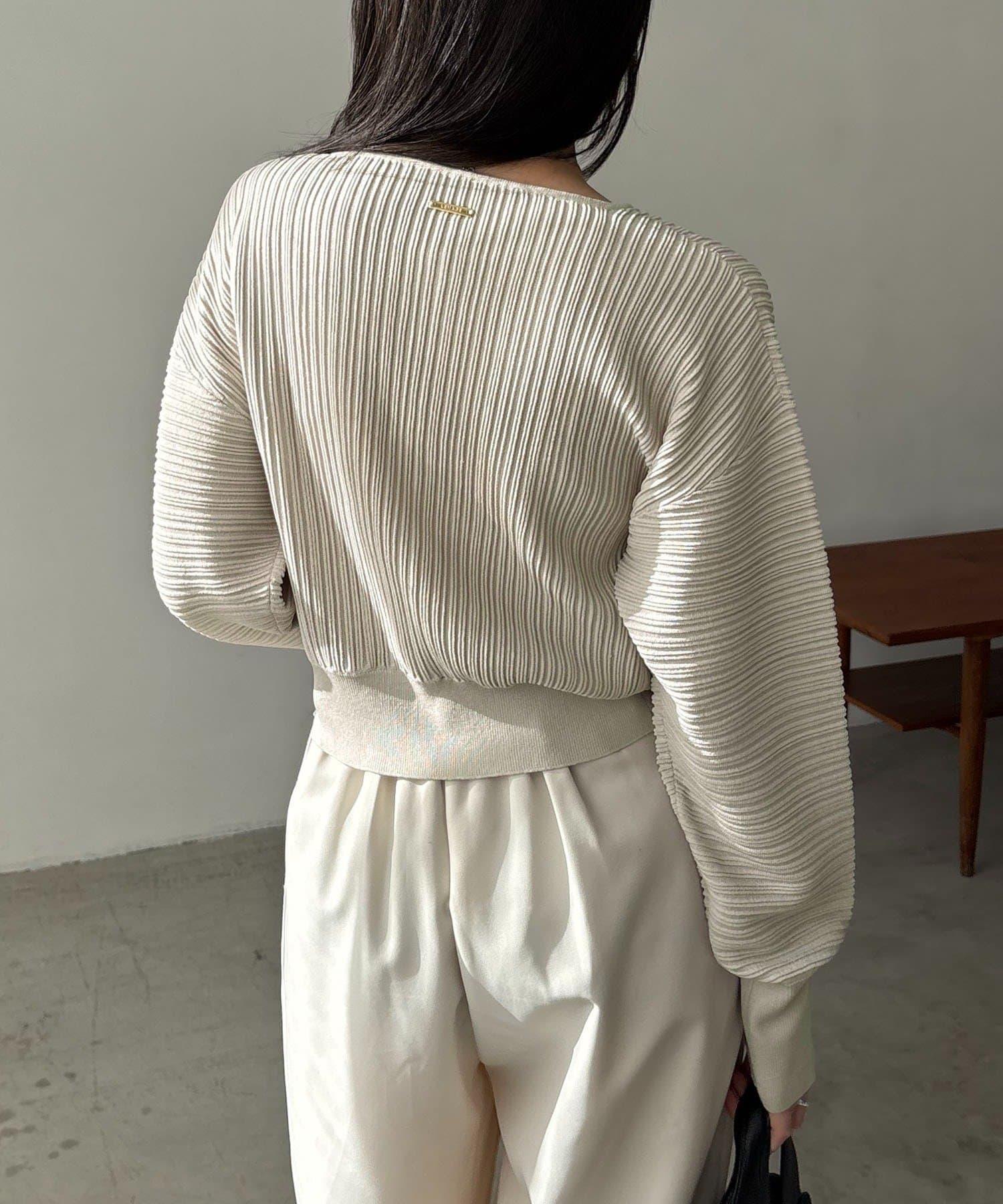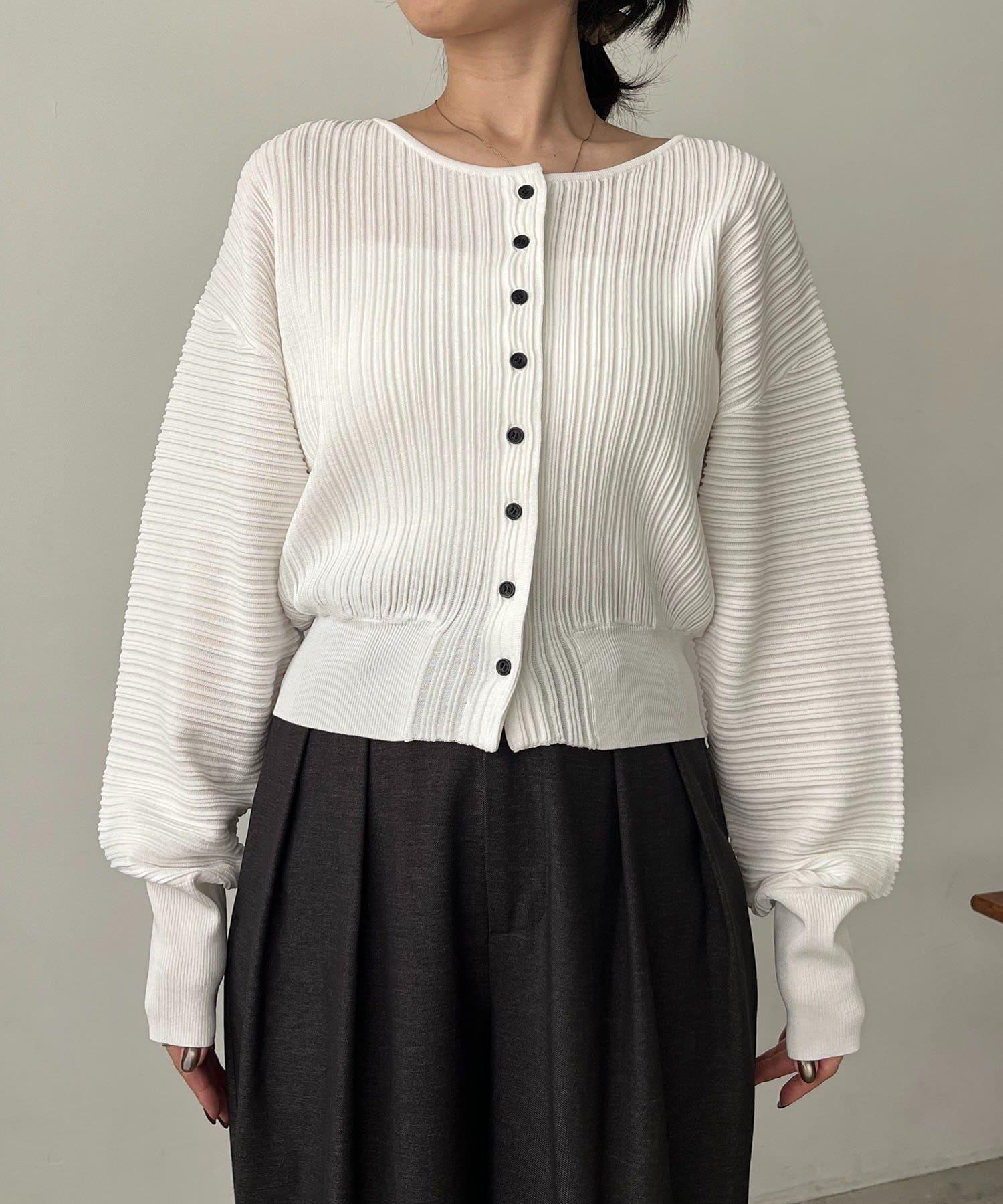褶襉泡袖 針織開衫