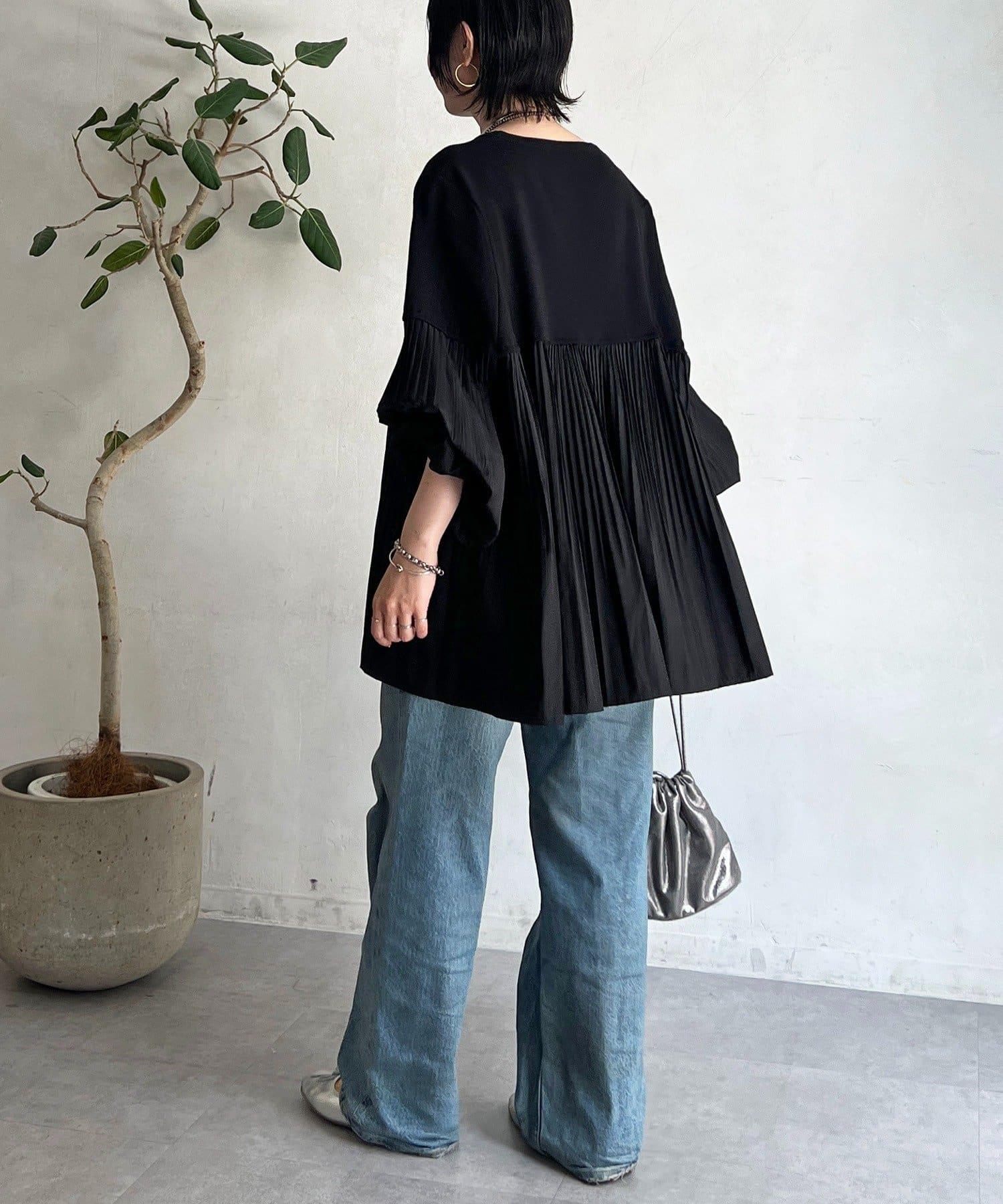剪裁縫製的針織衫具有彈性,上衣面料的褶皺對接在一起,顯得更加嫵媚動人。