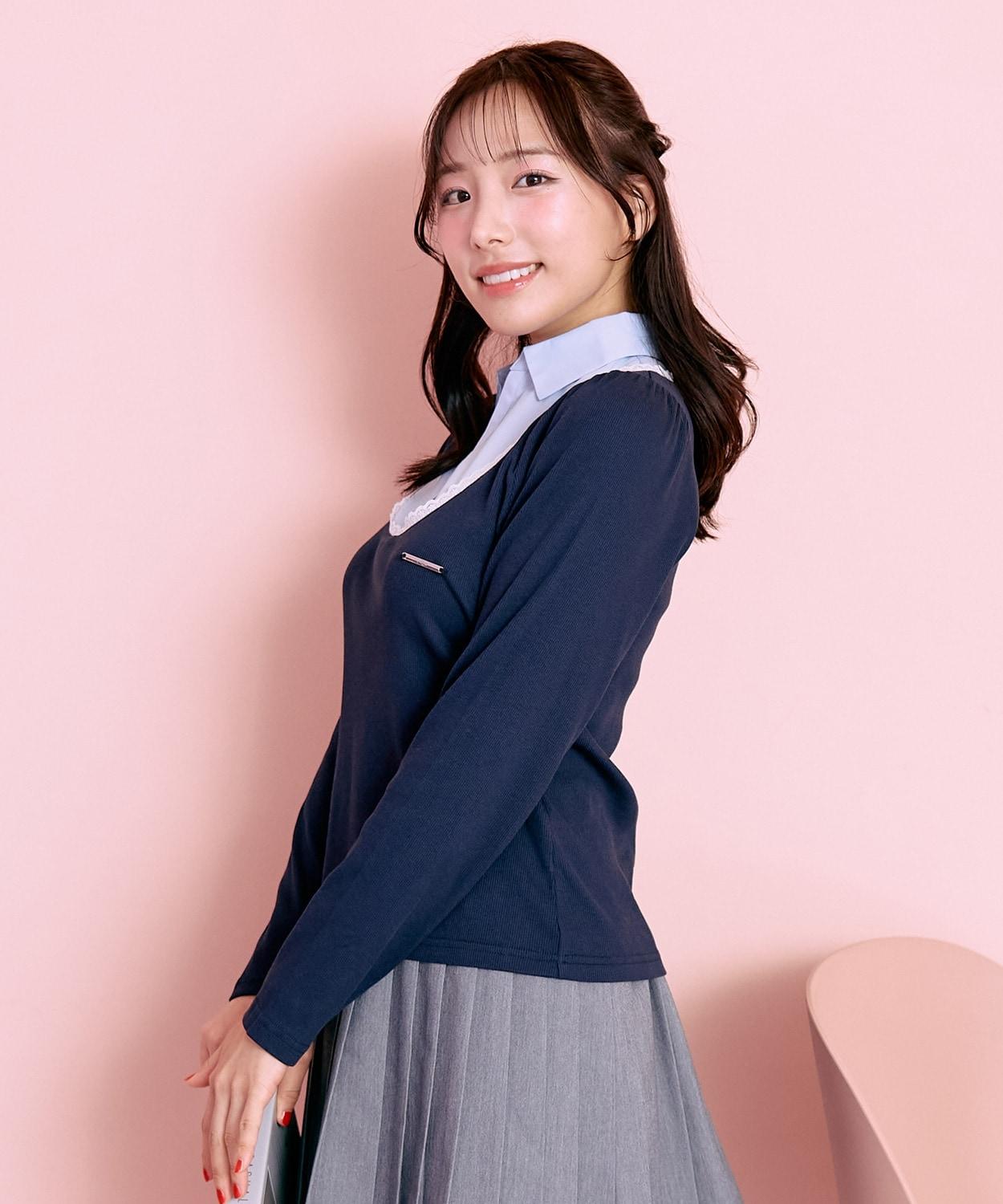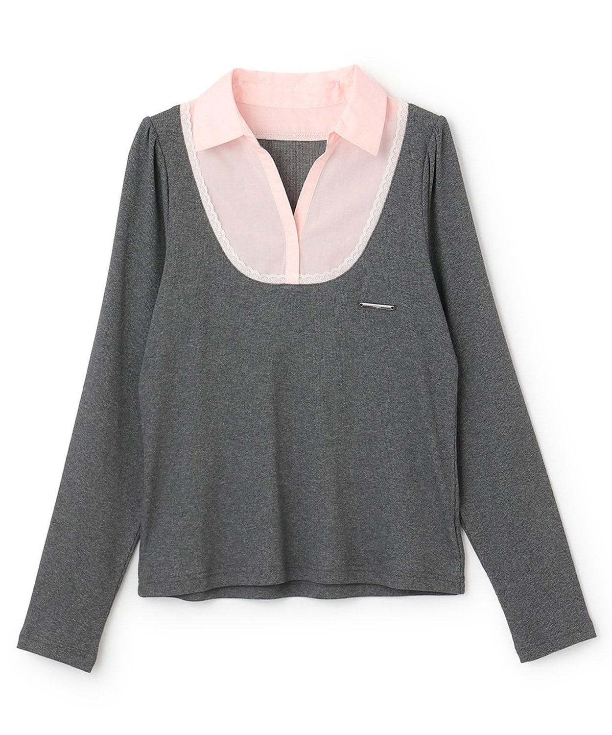 這款設計感十足的剪裁縫製 上衣 帶有精緻的蕾絲和原創設計圖版! 這款假分層單品由彈力剪接材料和編織物製成! 蕾絲夾在剪裁的身體部分和襯衫的接縫之間,增加了甜美感。建議搭配百褶裙或帶有流蘇設計的迷你下裝!